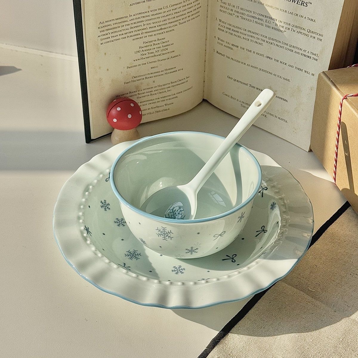 [첫눈] 새로운 고온 유약 컬러 세라믹 식기 세트 스타일 밀크 블루 간단한 가정용 그릇