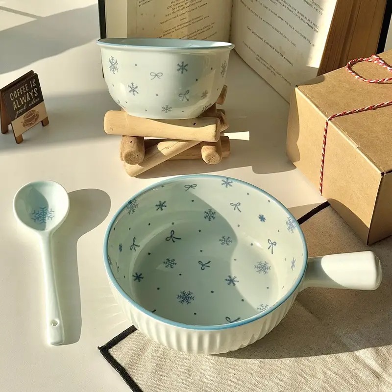 • Chuxue [3종 세트] 란란 6inch 손잡이 접시 + 밥그릇 + 스푼
