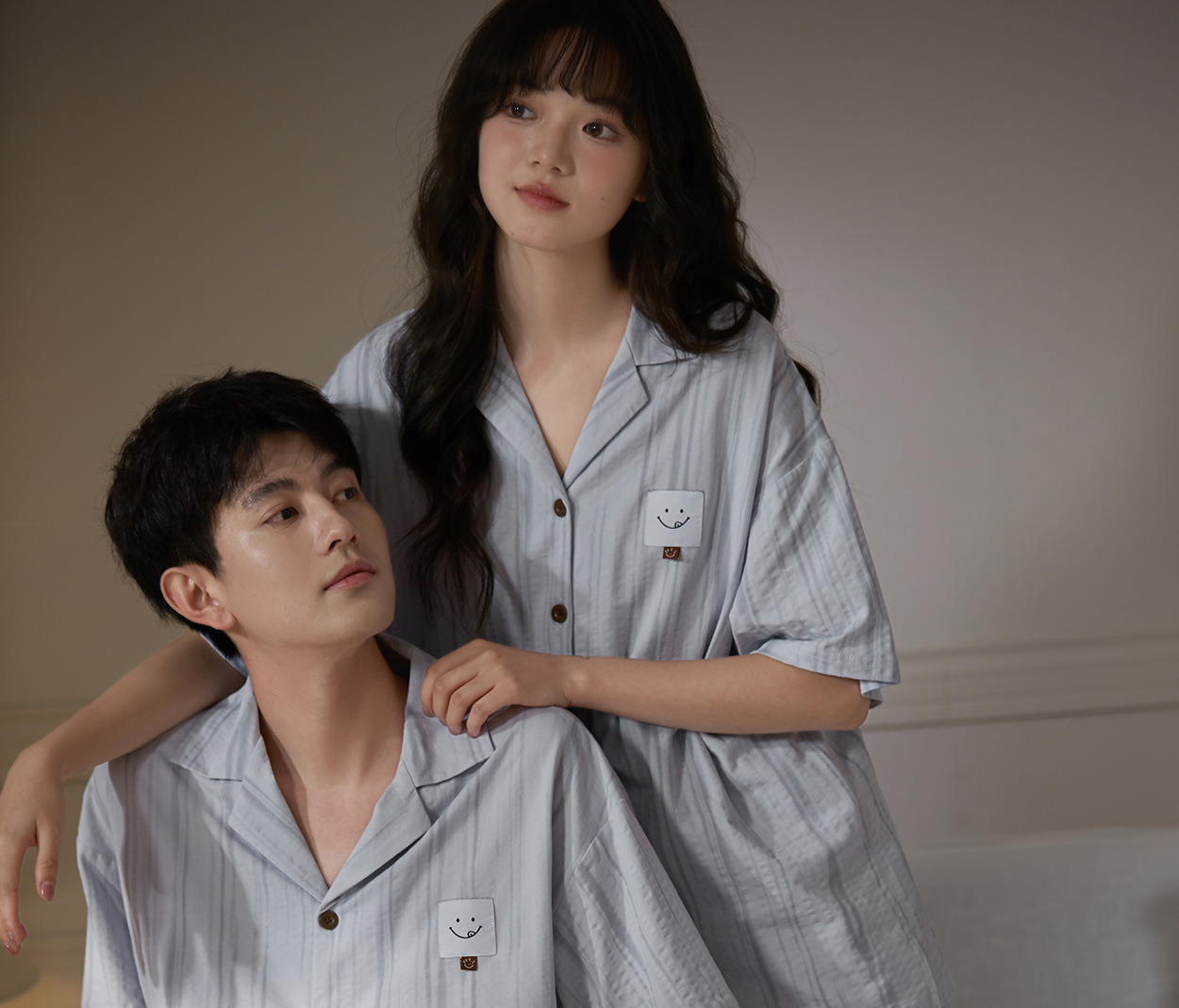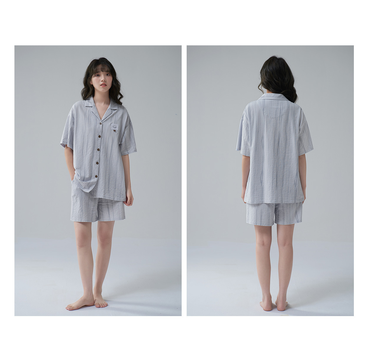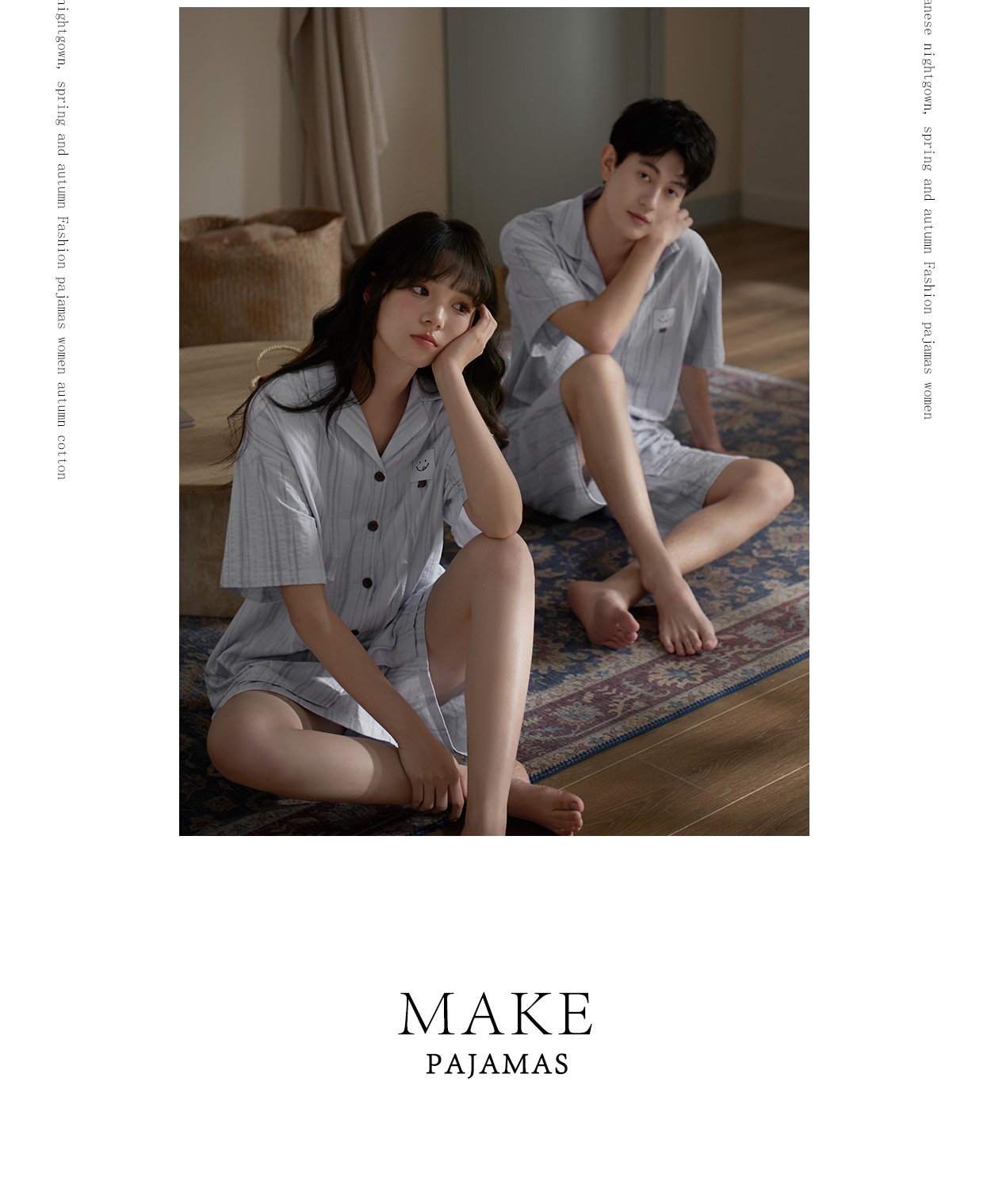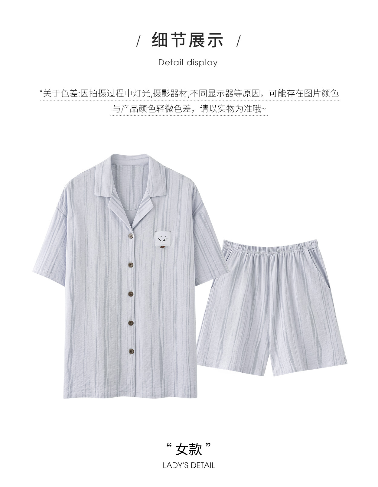 커플 잠옷 여성 여름 새 일본식 순면 남자의 짧은 소매 스트라이프 소프트 아웃웨어 홈 의류스토어 가기