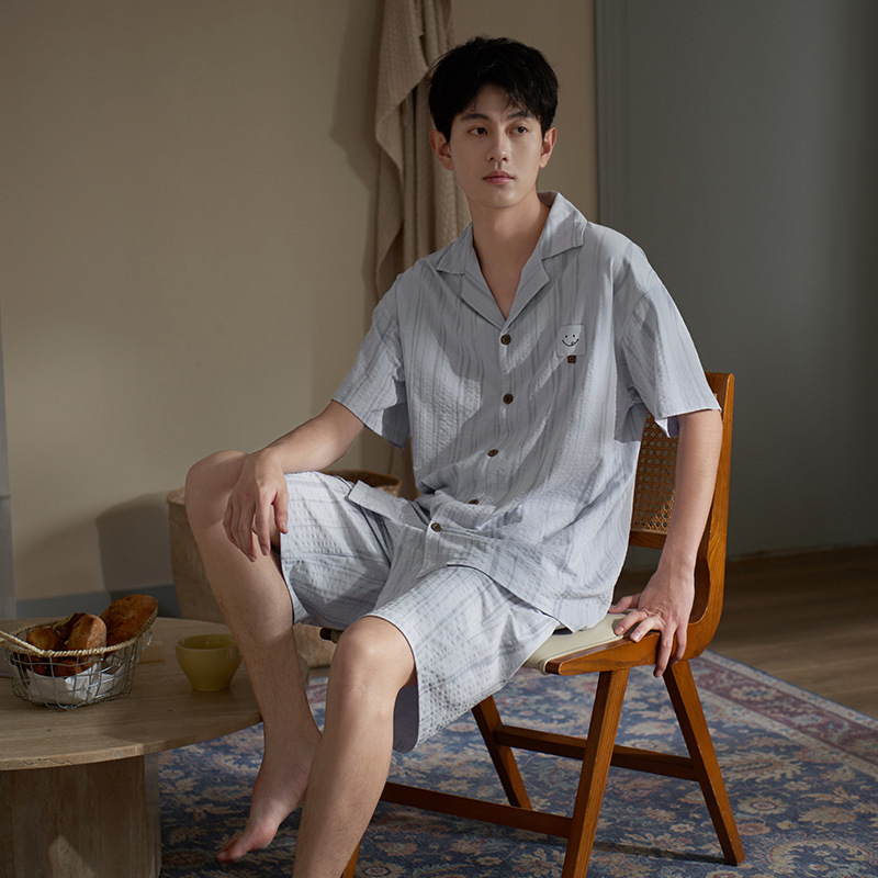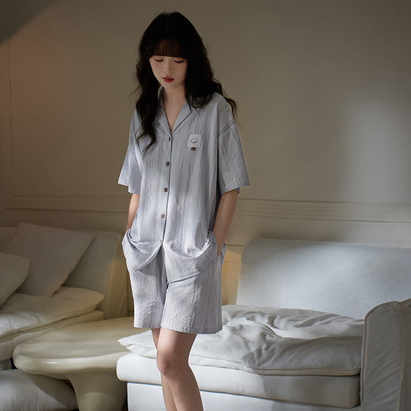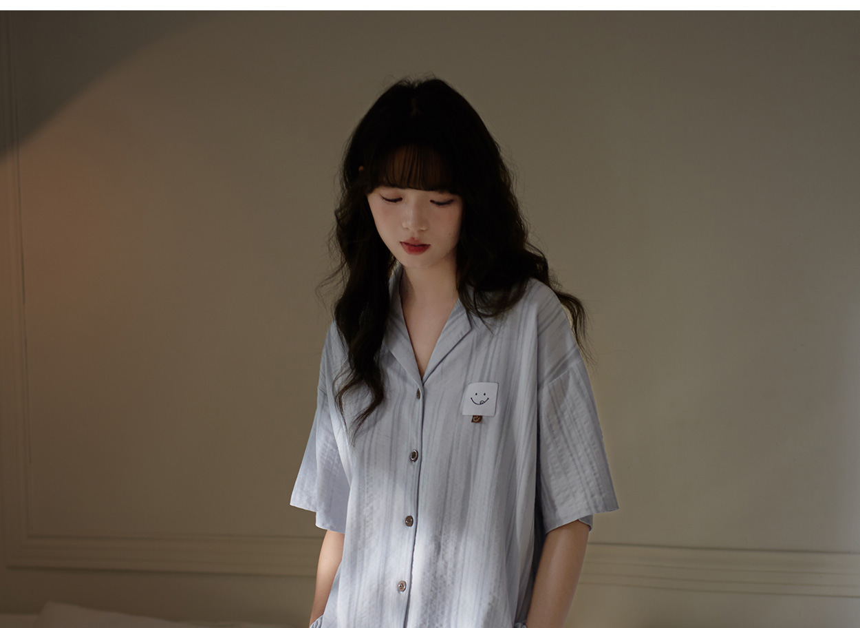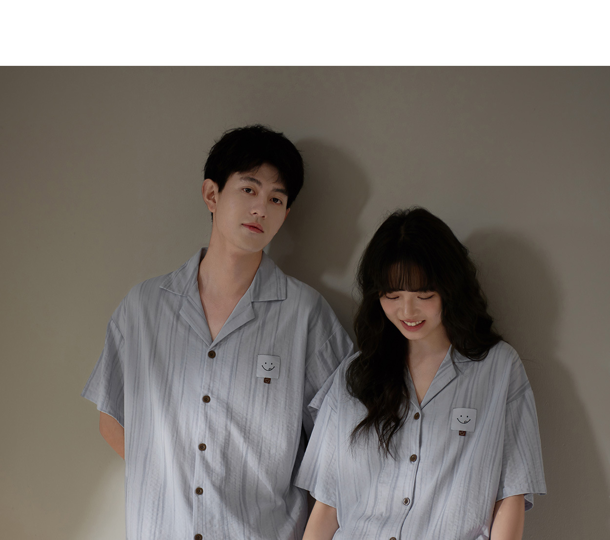 커플 잠옷 여성 여름 새 일본식 순면 남자의 짧은 소매 스트라이프 소프트 아웃웨어 홈 의류스토어 가기