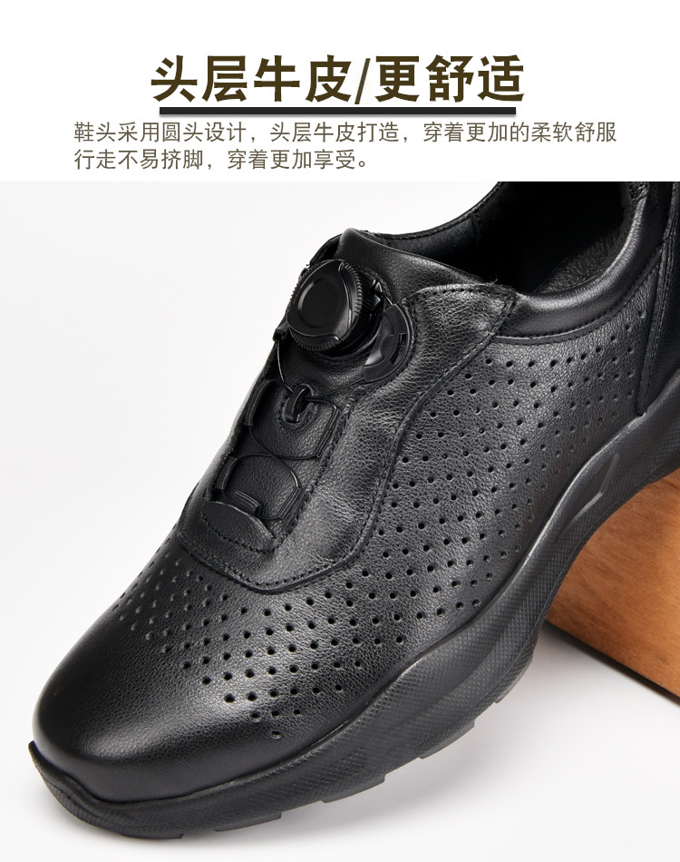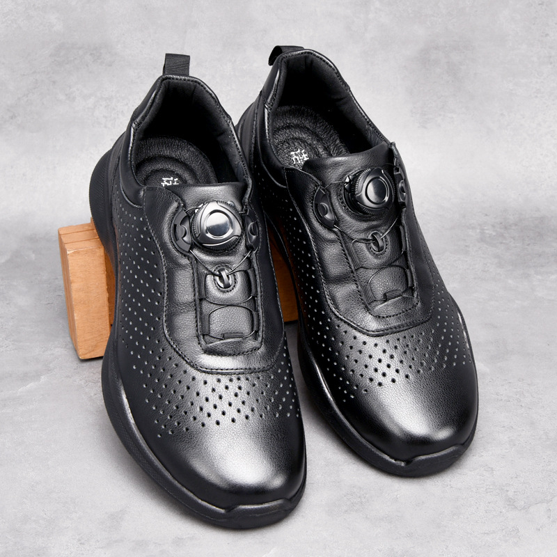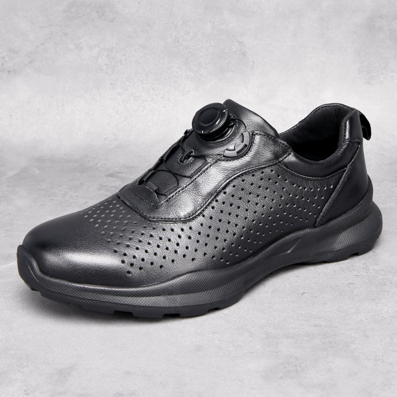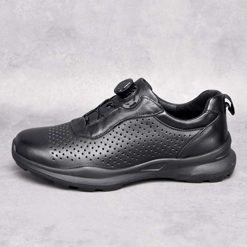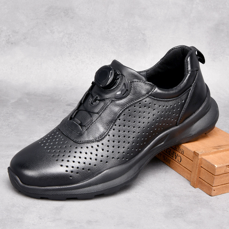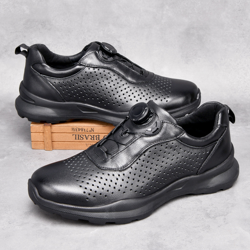 봄 2025 새로운 정품 가죽 통기성 중공 층 Cowhide 스위블 버클 부드러운 가죽 부드러운 바닥 발 커버 스포츠 가죽 신발 남성용