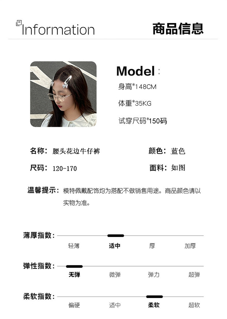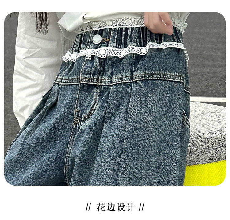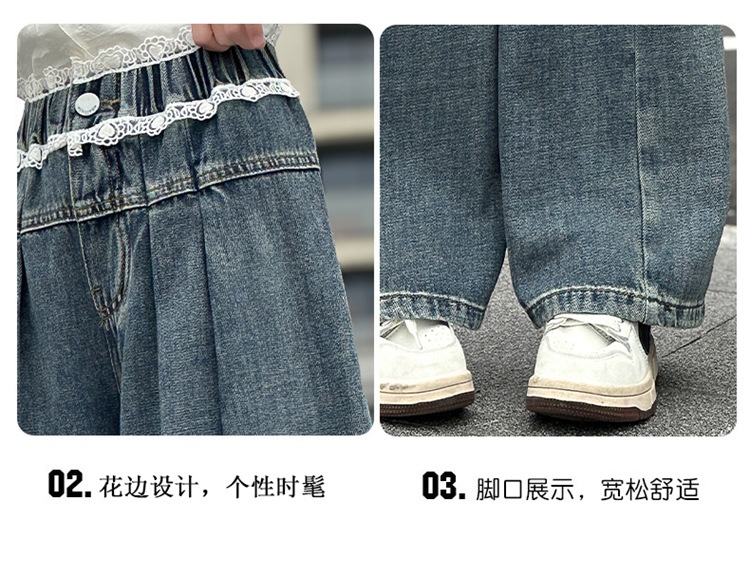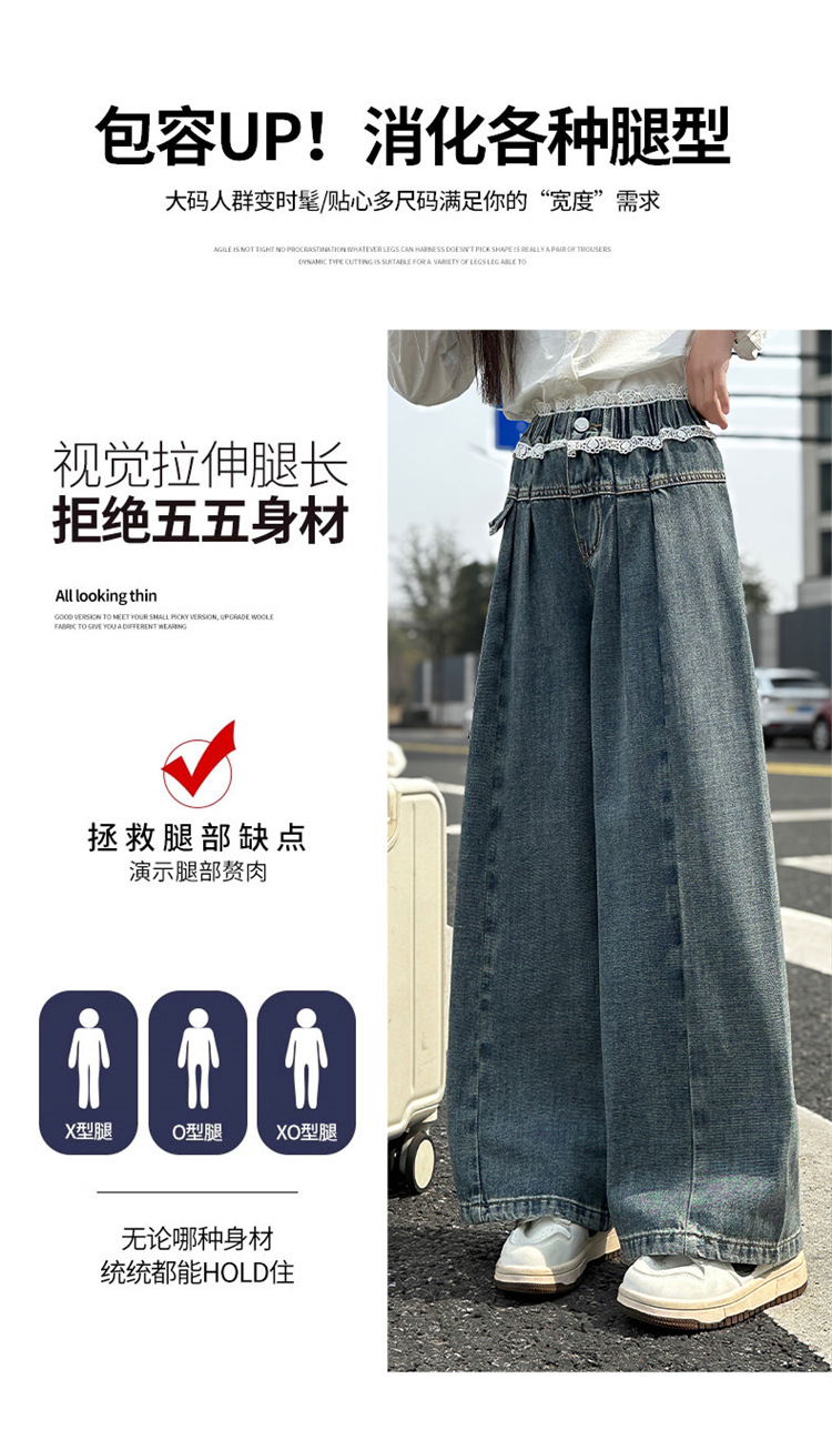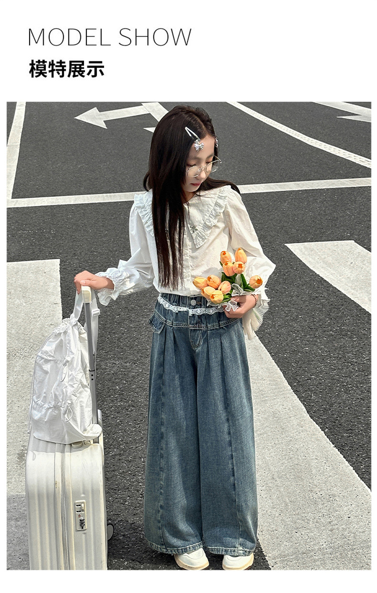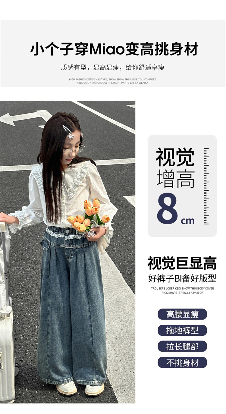 소녀 데님 바지 봄 레트로 중학교 소녀 서양식 와이드 레그 스트레이트 바지 Huzhou Zhili