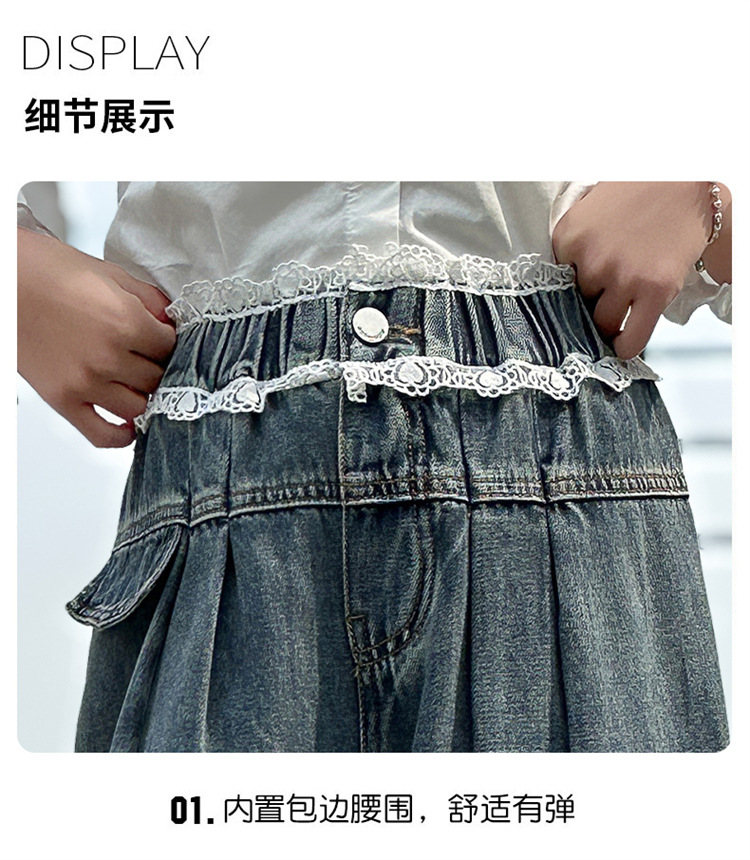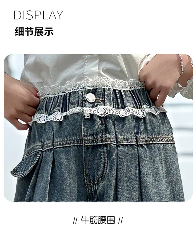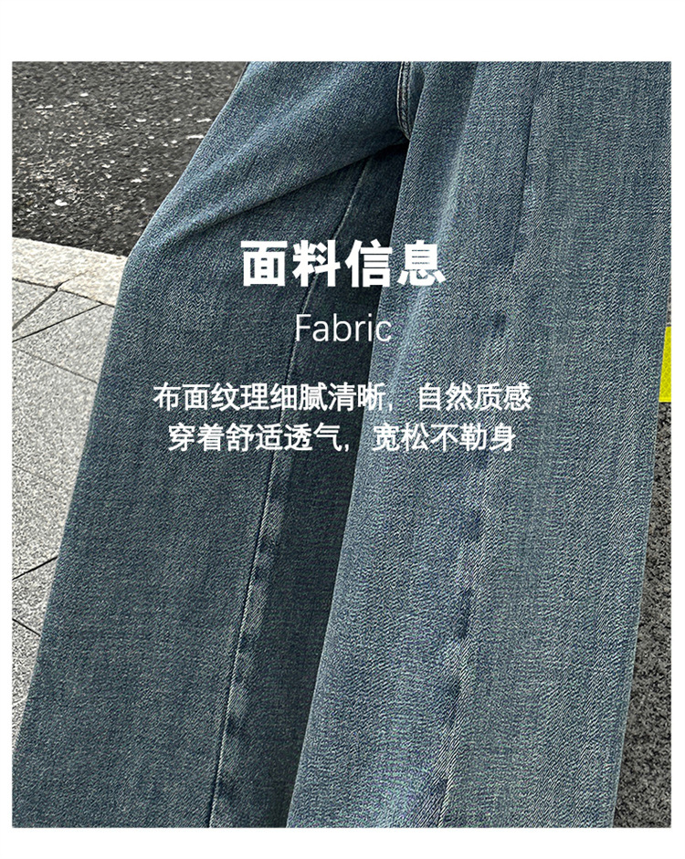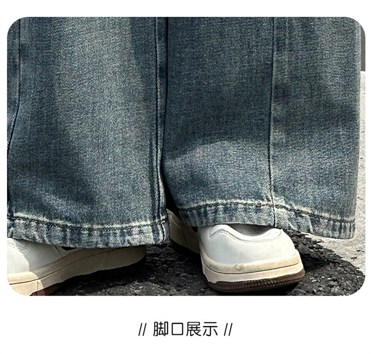 소녀 데님 바지 봄 레트로 중학교 소녀 서양식 와이드 레그 스트레이트 바지 Huzhou Zhili스토어 가기