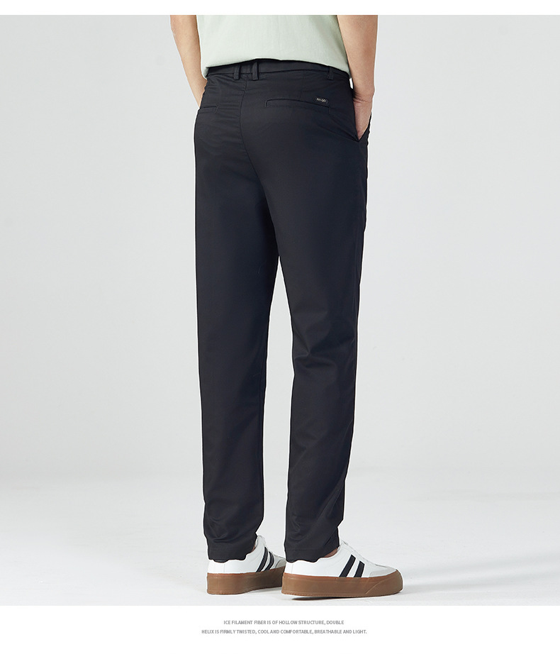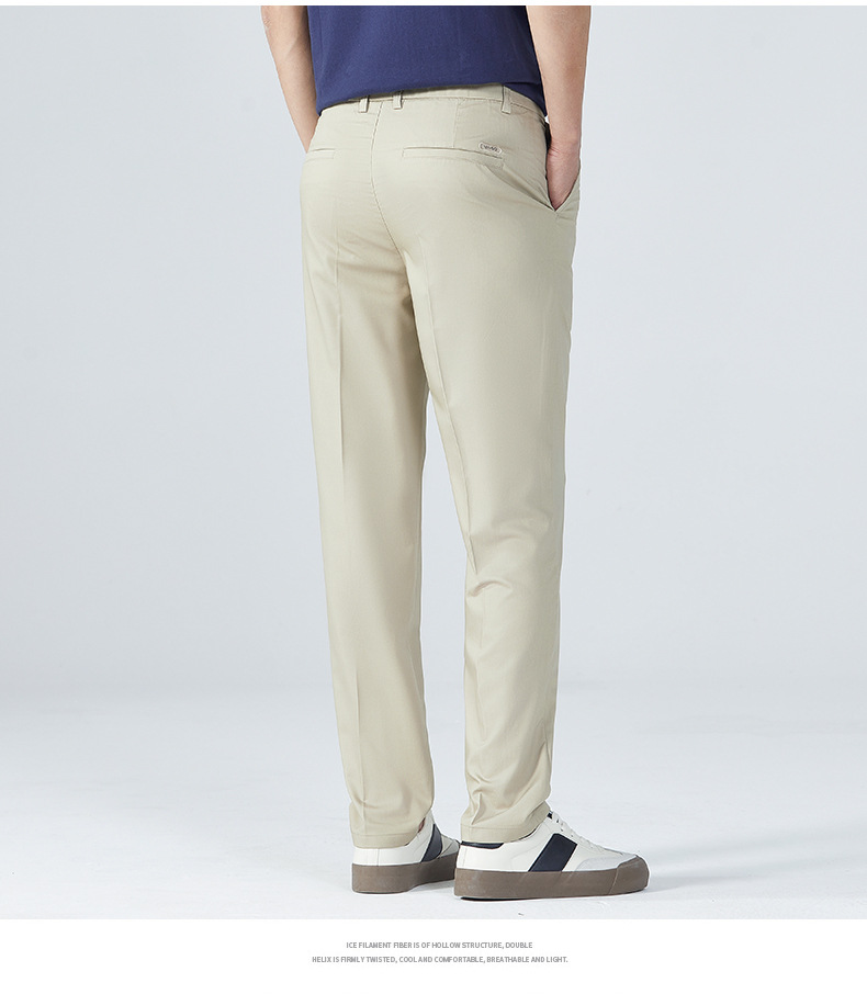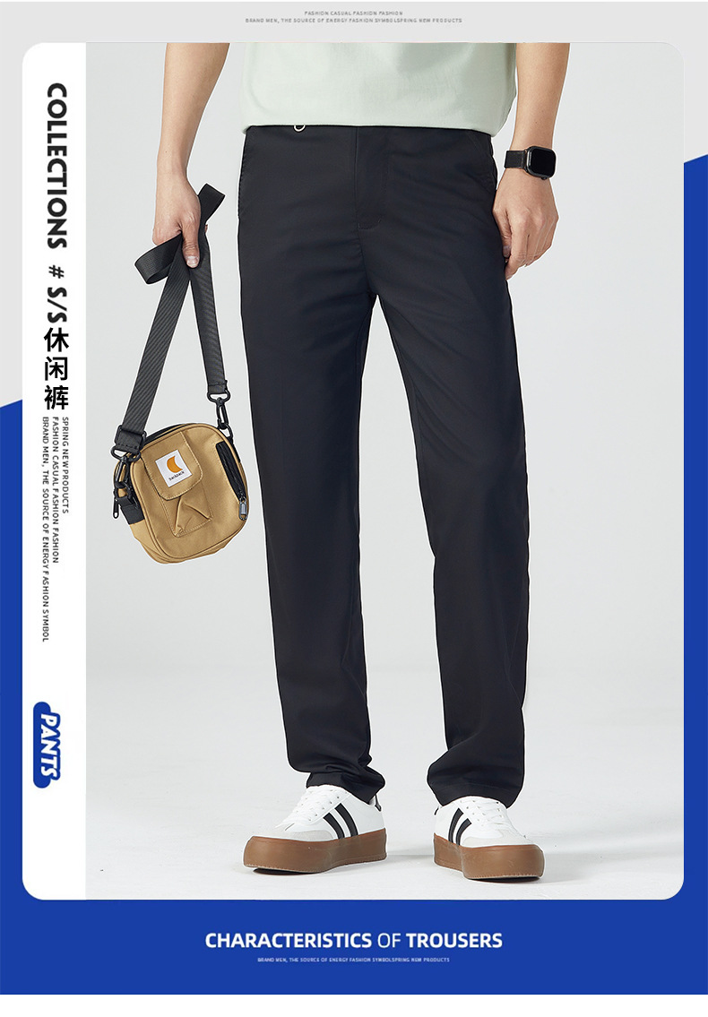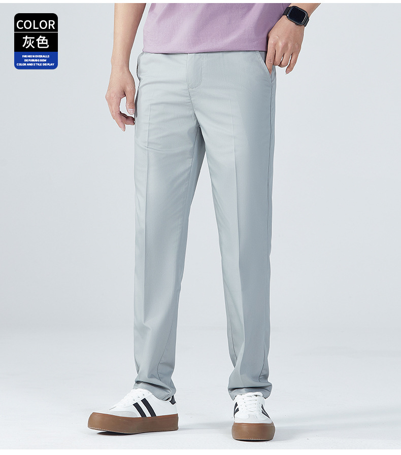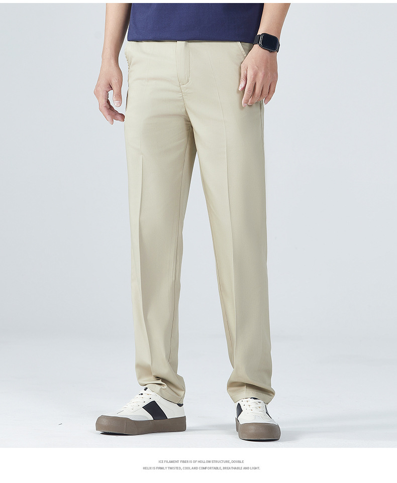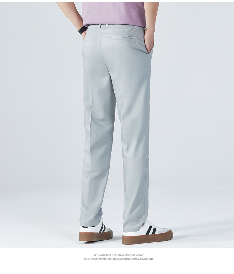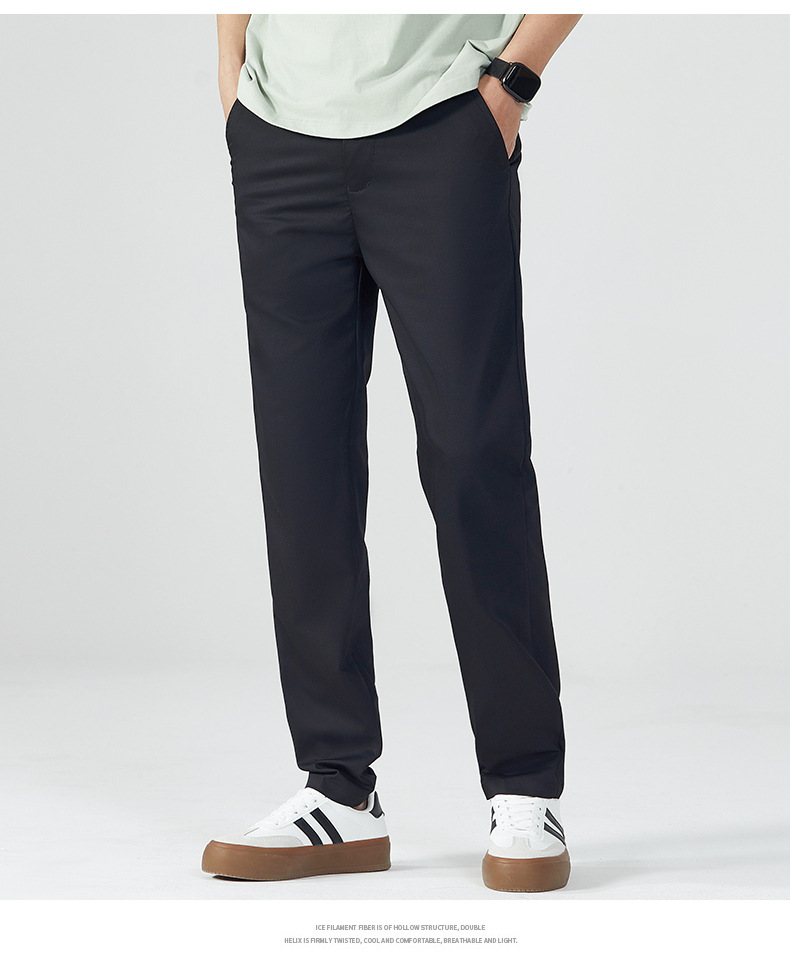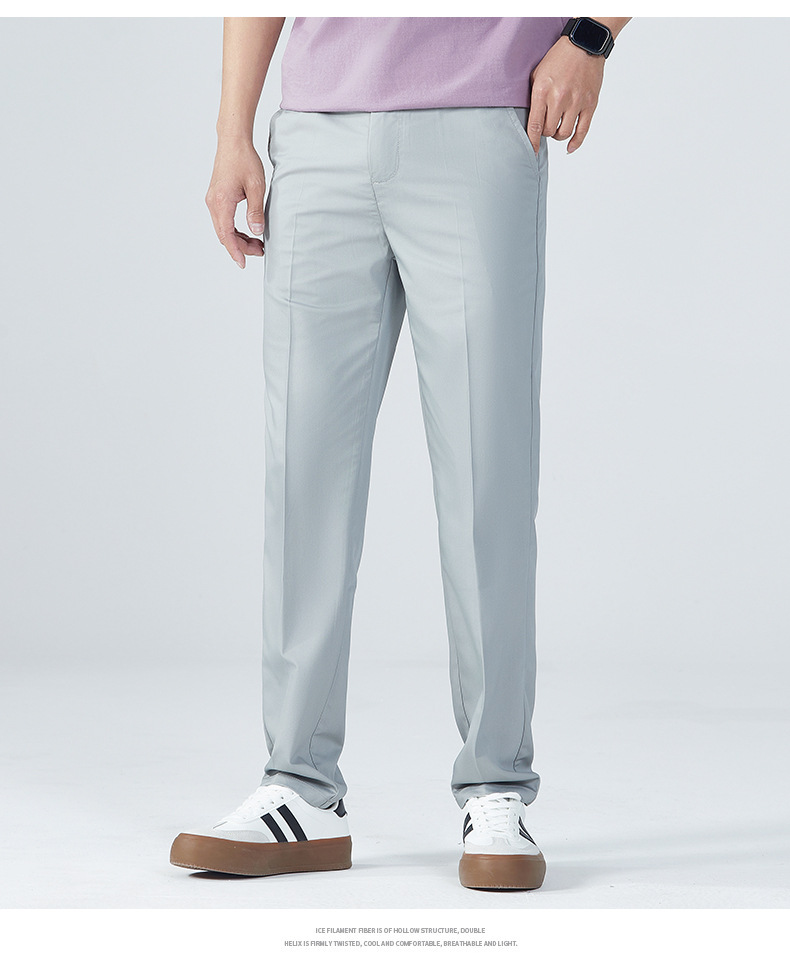여름 얇은 얼음 실크 캐주얼 바지 남자 2025 새로운 스트레이트 남자 바지 스트레치 비즈니스 바지 하이 엔드 바지