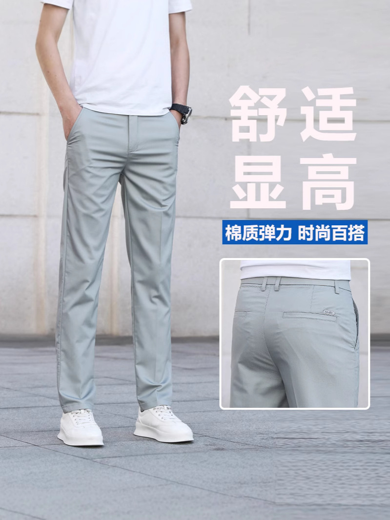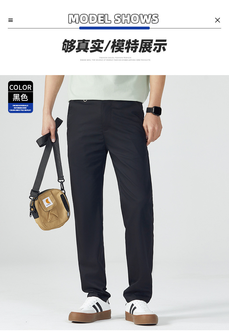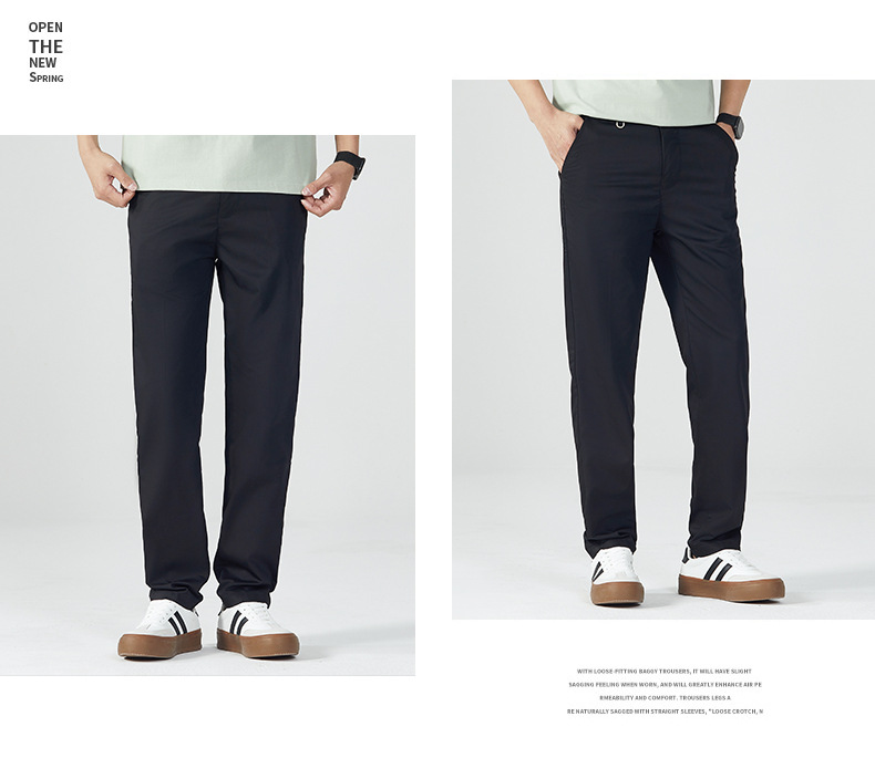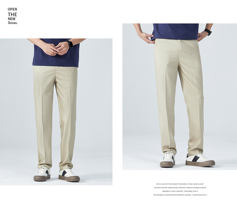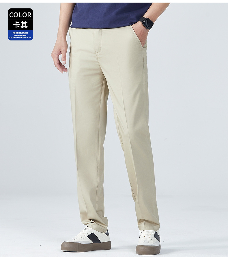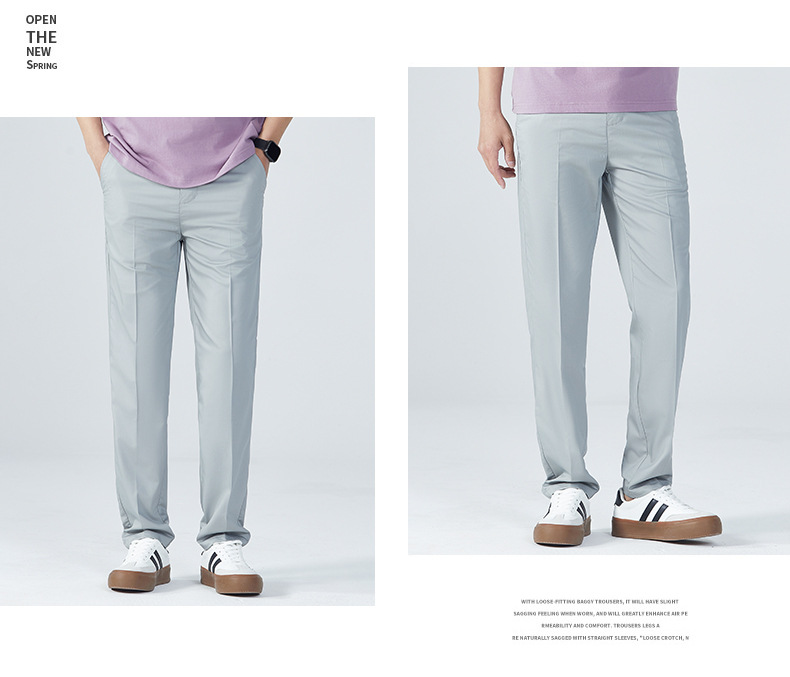 여름 얇은 얼음 실크 캐주얼 바지 남자 2025 새로운 스트레이트 남자 바지 스트레치 비즈니스 바지 하이 엔드 바지스토어 가기