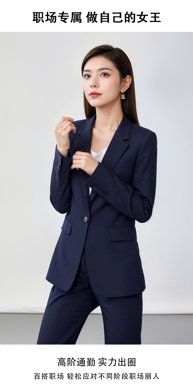 네이비 새로운 원 버튼 우아한 전문 세트 세트 여성 원피스 인터뷰 통근 작업 세트스토어 가기