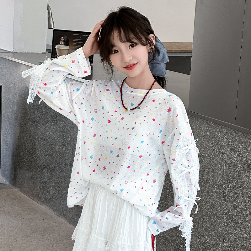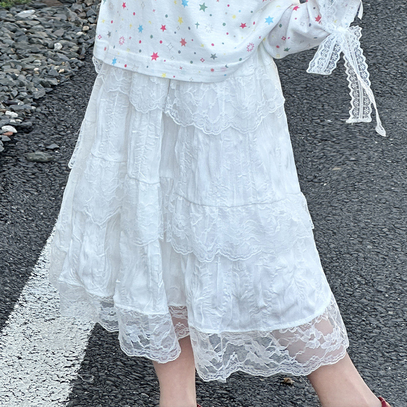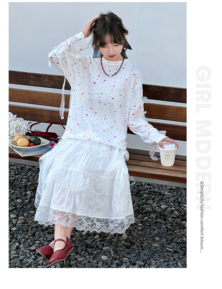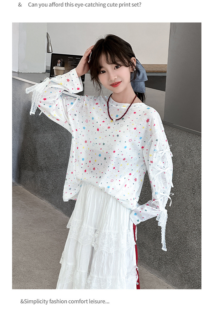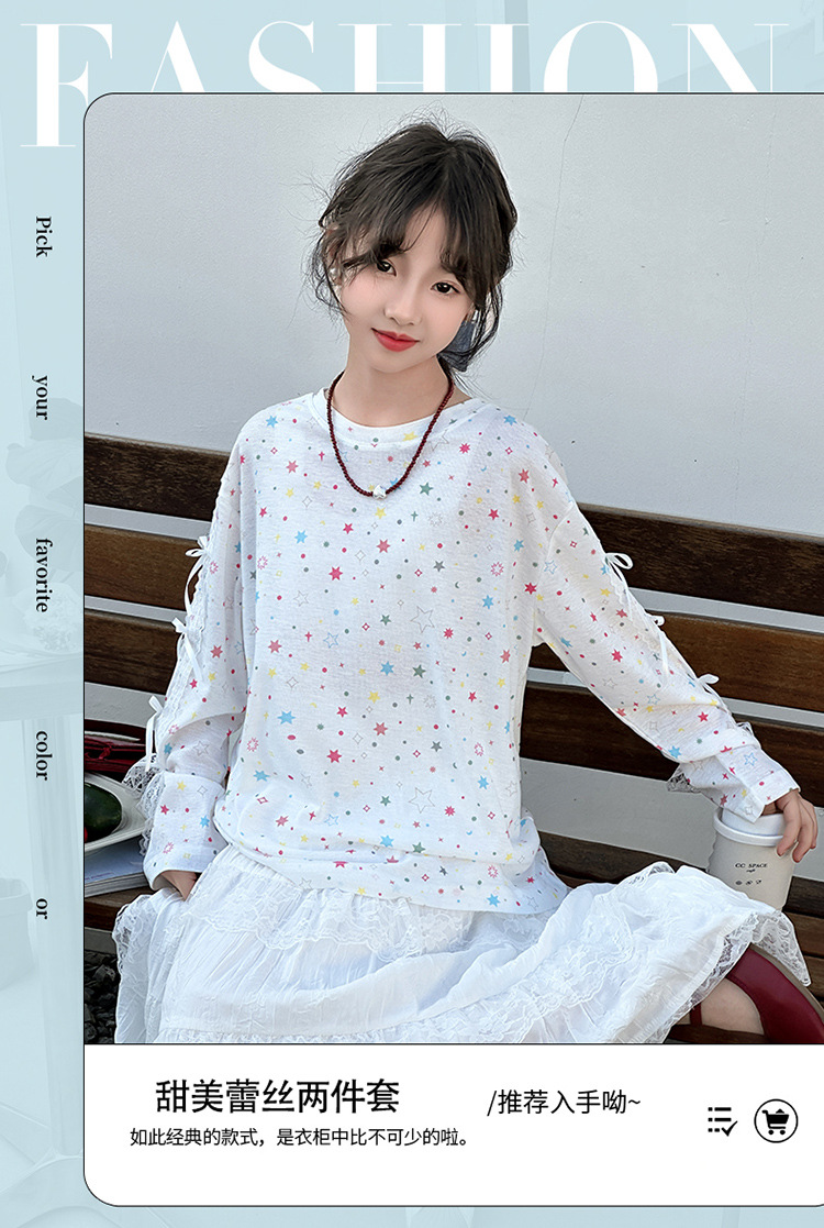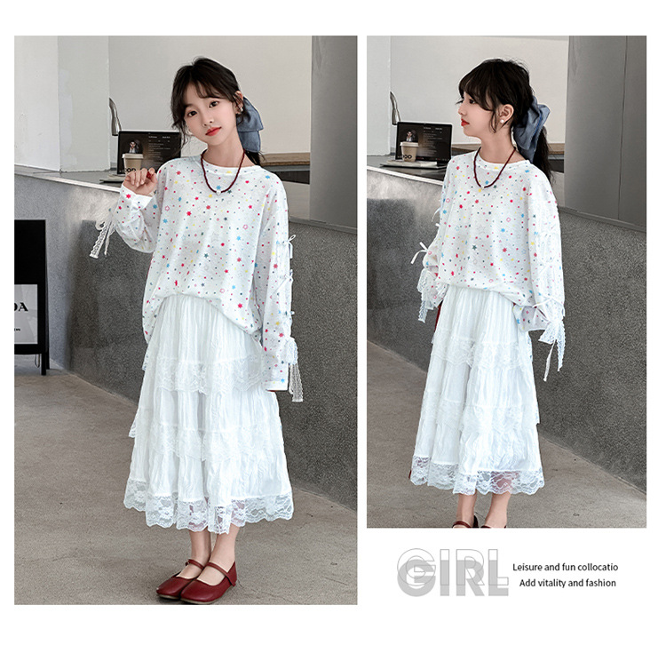 여아 리본 레이스 스커트 세트, 중대형 아동용 2025 가을 신상 패셔너블 캐주얼 투피스 세트스토어 가기