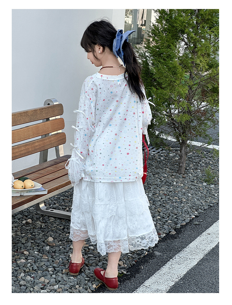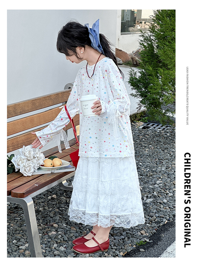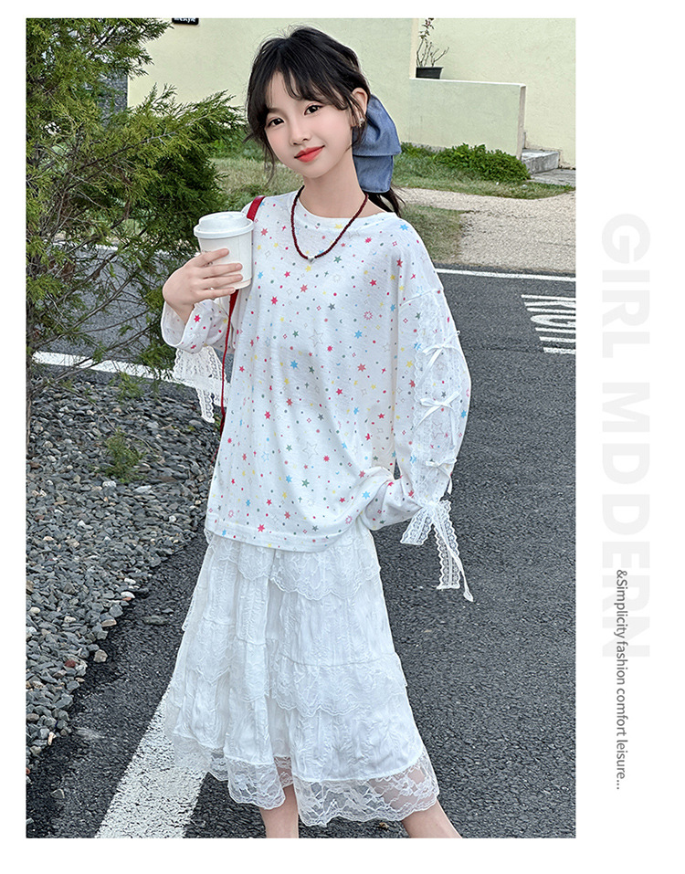 여아 리본 레이스 스커트 세트, 중대형 아동용 2025 가을 신상 패셔너블 캐주얼 투피스 세트