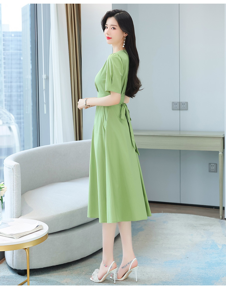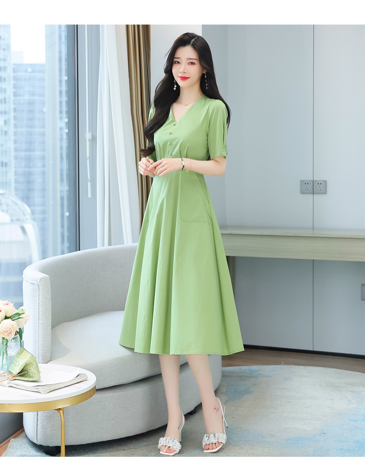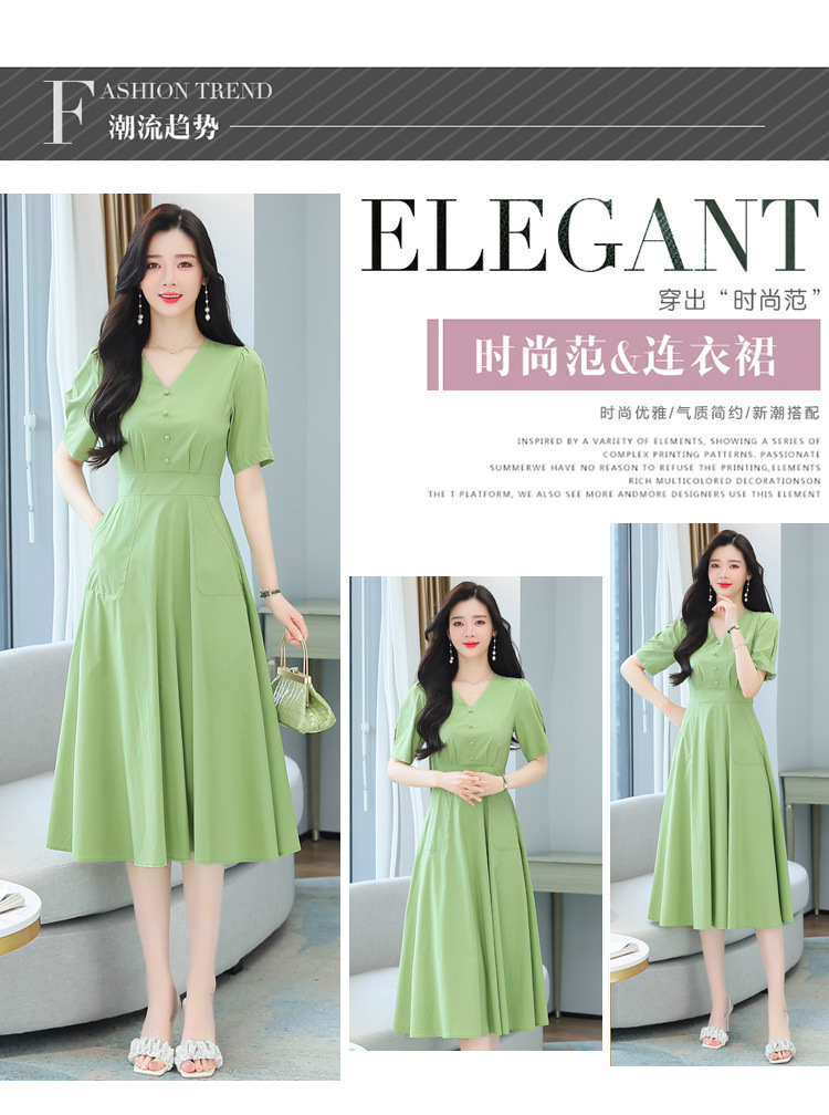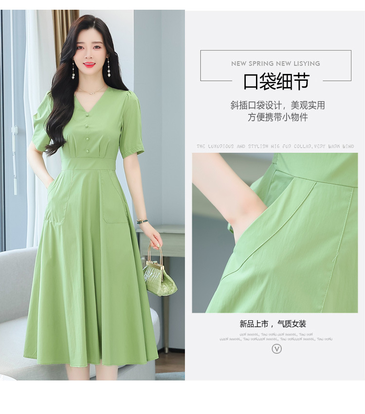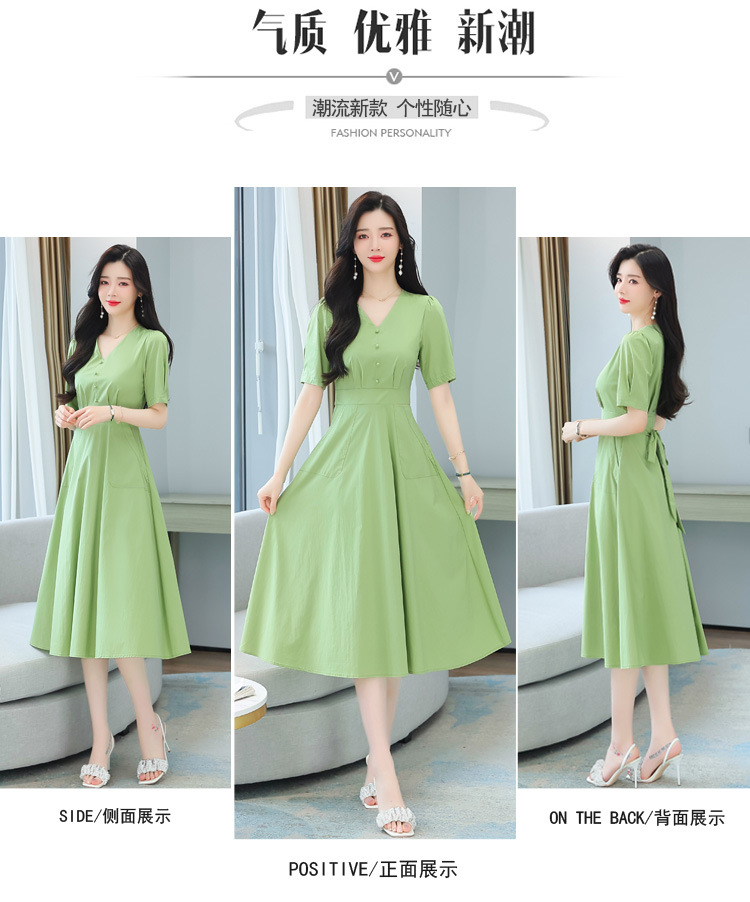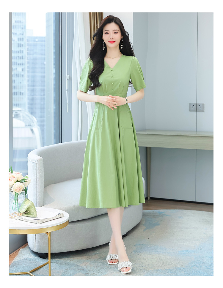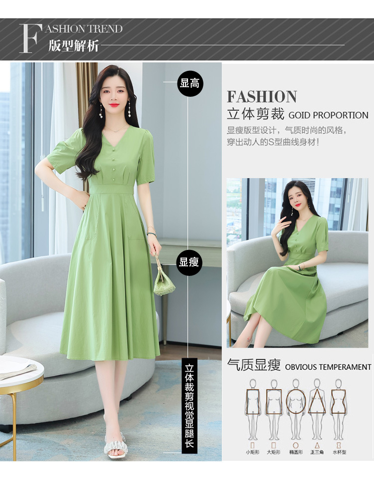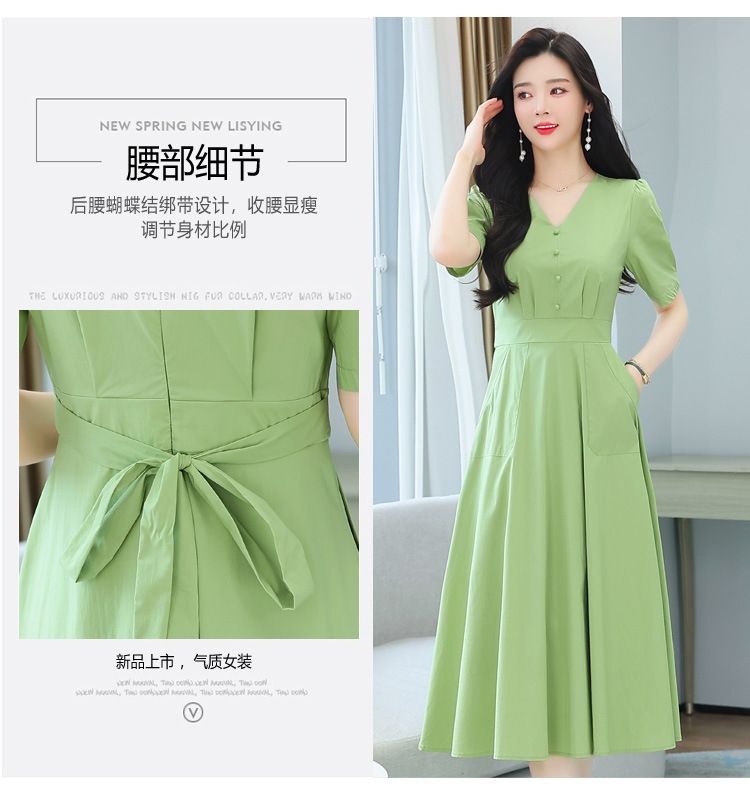 빈티지 프랑스 스타일 화이트 아보카도 그린 원피스 봄과 여름 달콤한 허리 V-목 긴 A 라인 대형 원피스스토어 가기
