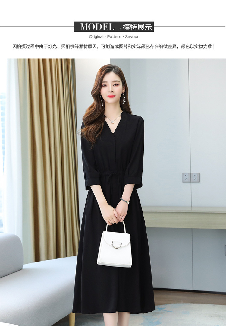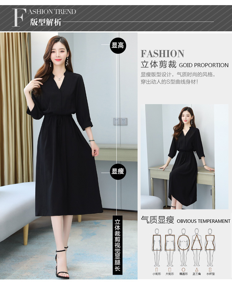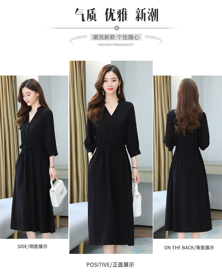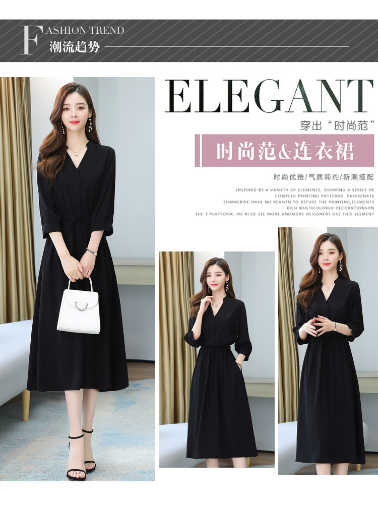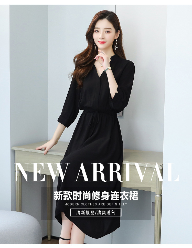 쉬폰 블랙 V-넥 원피스 여성 새로운 여름 허리 슬리밍 캐주얼 우아한 배꼽 커버 프랑스 스타일 원피스스토어 가기