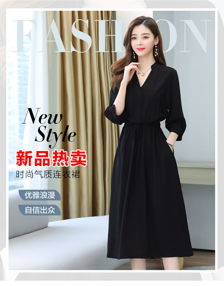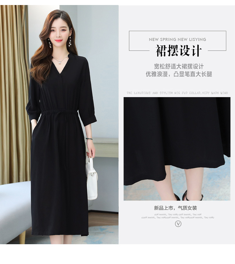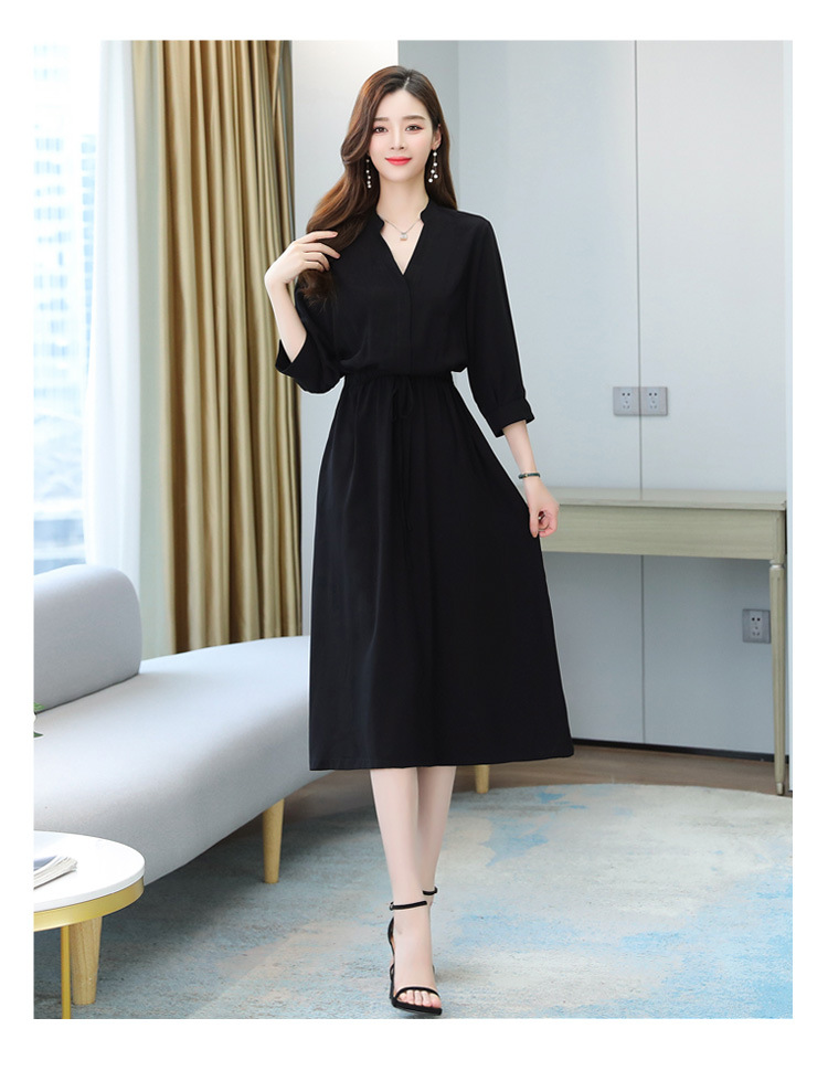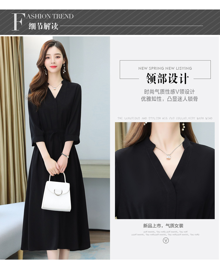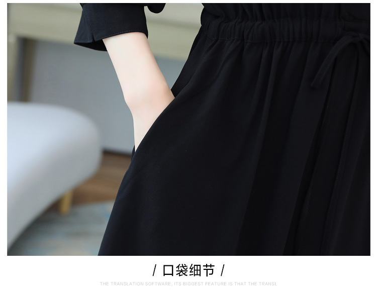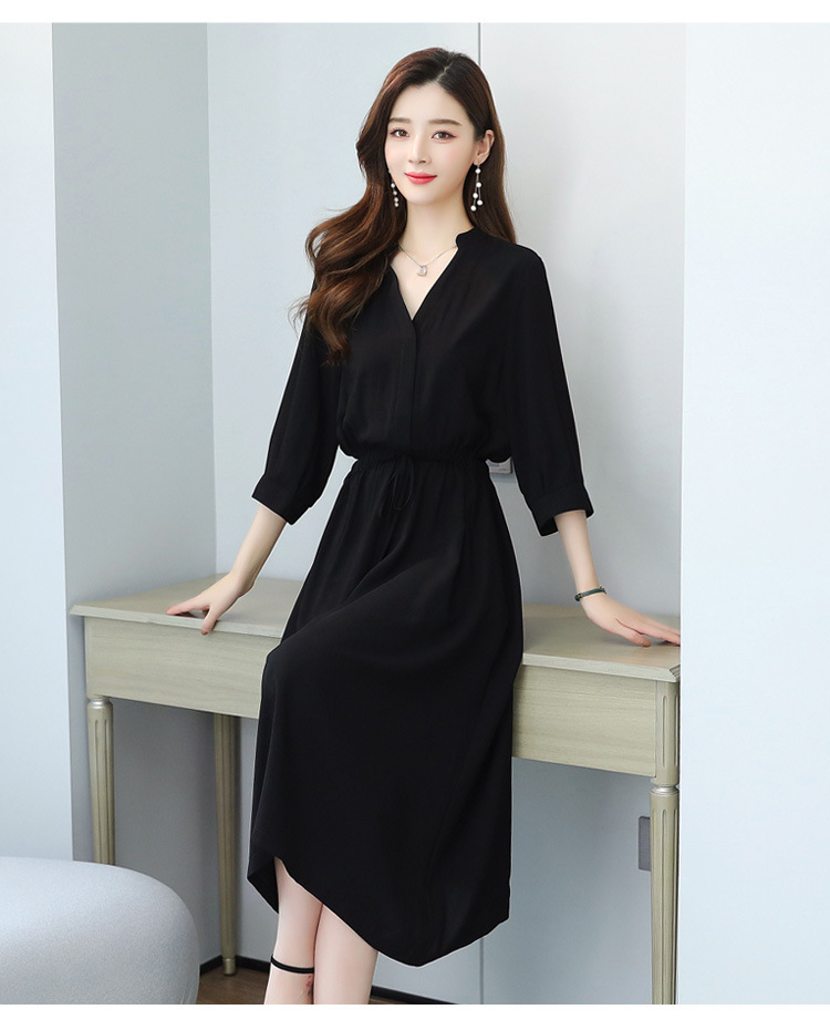 쉬폰 블랙 V-넥 원피스 여성 새로운 여름 허리 슬리밍 캐주얼 우아한 배꼽 커버 프랑스 스타일 원피스스토어 가기