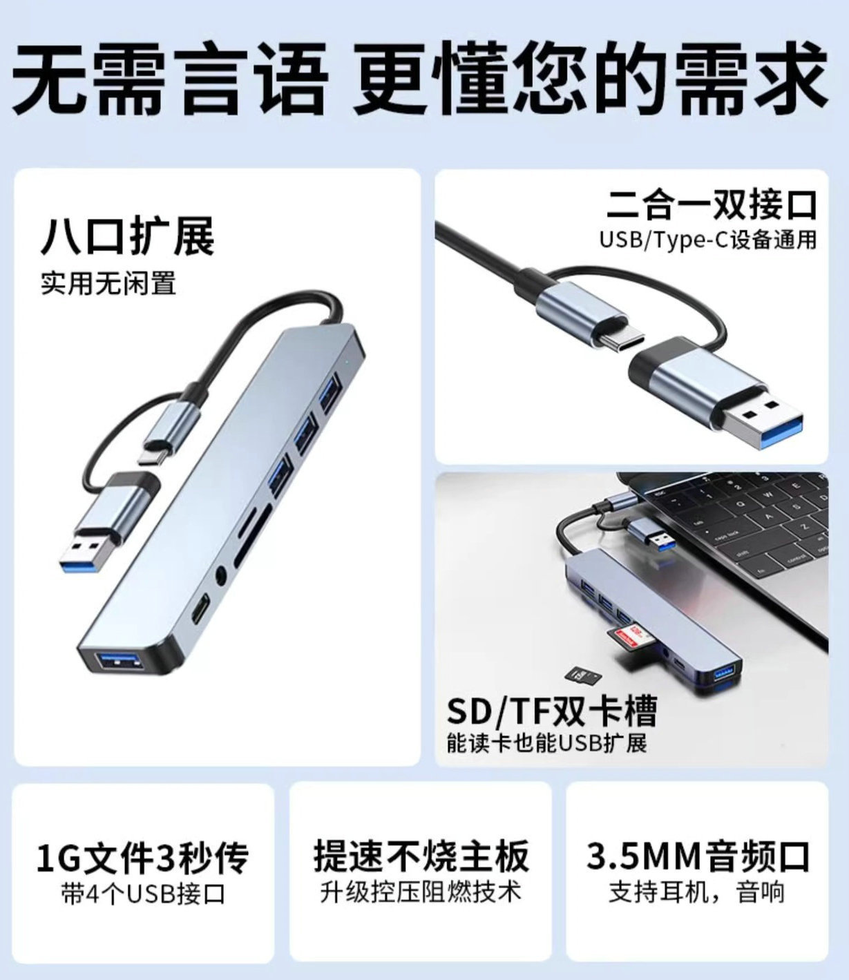 국경을 넘는 타입-C 8-in-1 멀티포트 확장 도크 다기능 다중 인터페이스 USB3.0 고속 전송 허브 확장 도크스토어 가기