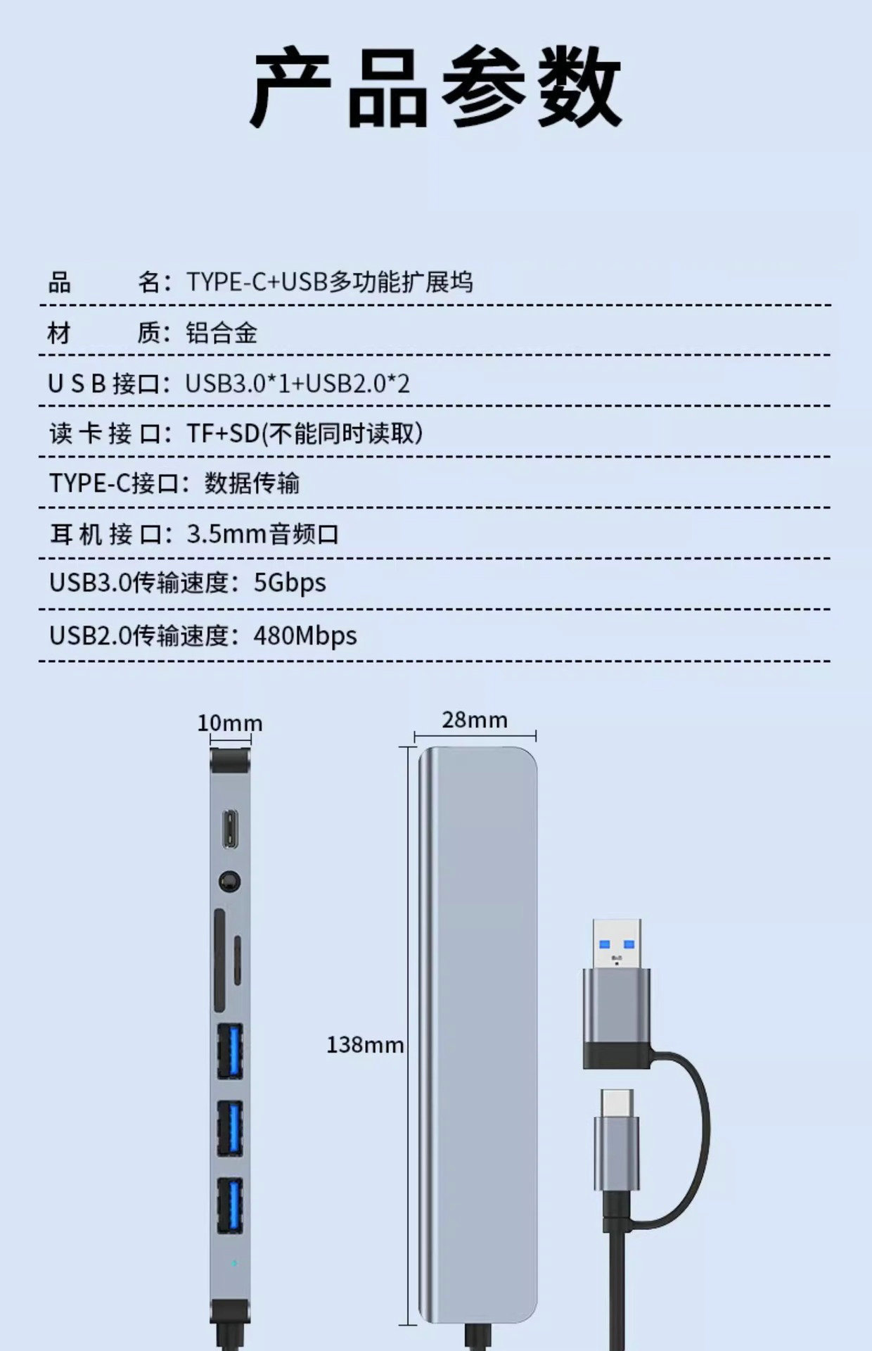 국경을 넘는 타입-C 8-in-1 멀티포트 확장 도크 다기능 다중 인터페이스 USB3.0 고속 전송 허브 확장 도크