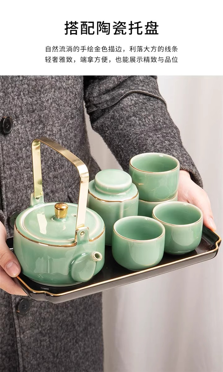 세라믹 간단한 꼬리 냄비 차 세트 티 컵 세트 신선한 한 냄비 4 컵 가정용 대형 주전자 트레이