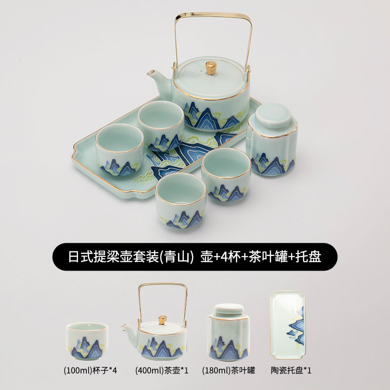 세라믹 간단한 꼬리 냄비 차 세트 티 컵 세트 신선한 한 냄비 4 컵 가정용 대형 주전자 트레이스토어 가기