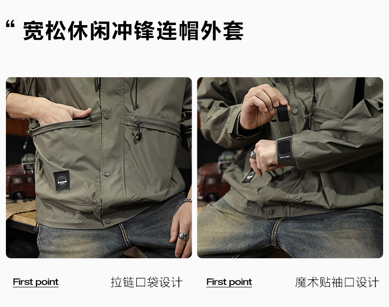 2025 봄과 가을 미국 야외 후드 자켓 남성용 루즈 플러스 사이즈 3 방지 미국 작업 자켓 트렌디