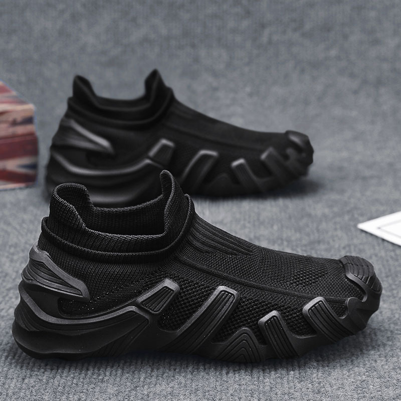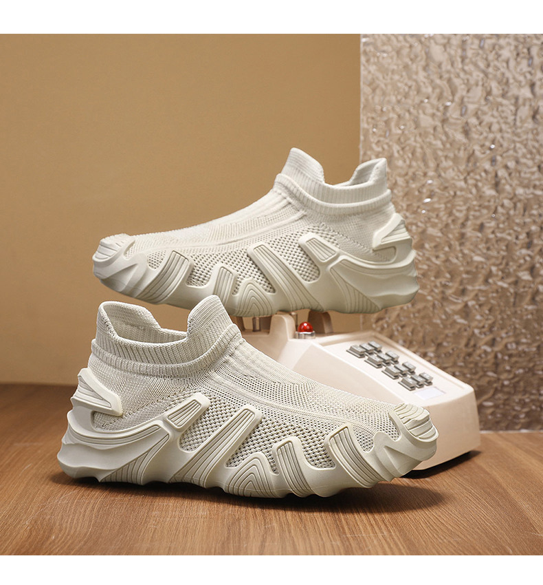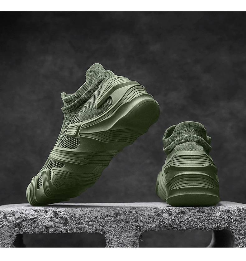 개인화 된 남성 신발 2025 봄 새로운 스타일 슬립 온 통기성 메쉬 하이 탑 양말 신발 두꺼운 밑창 캐주얼 스포츠 트렌디 신발