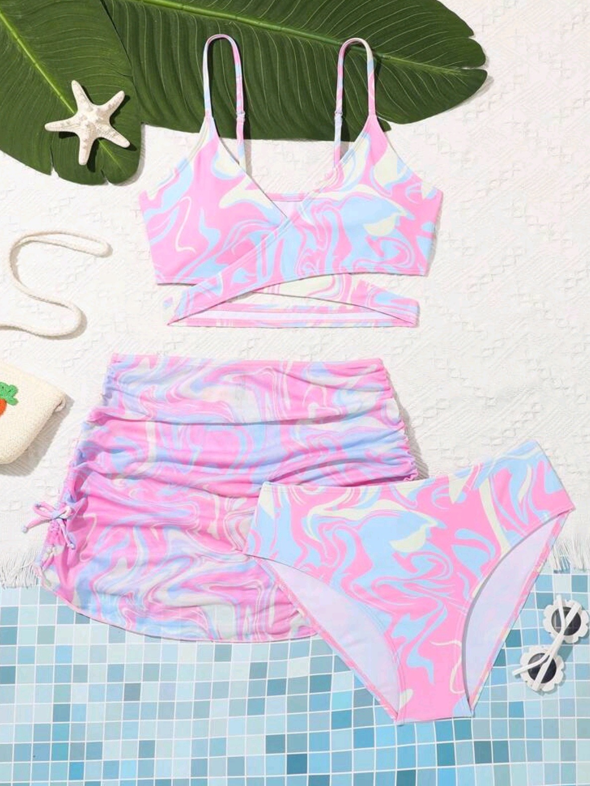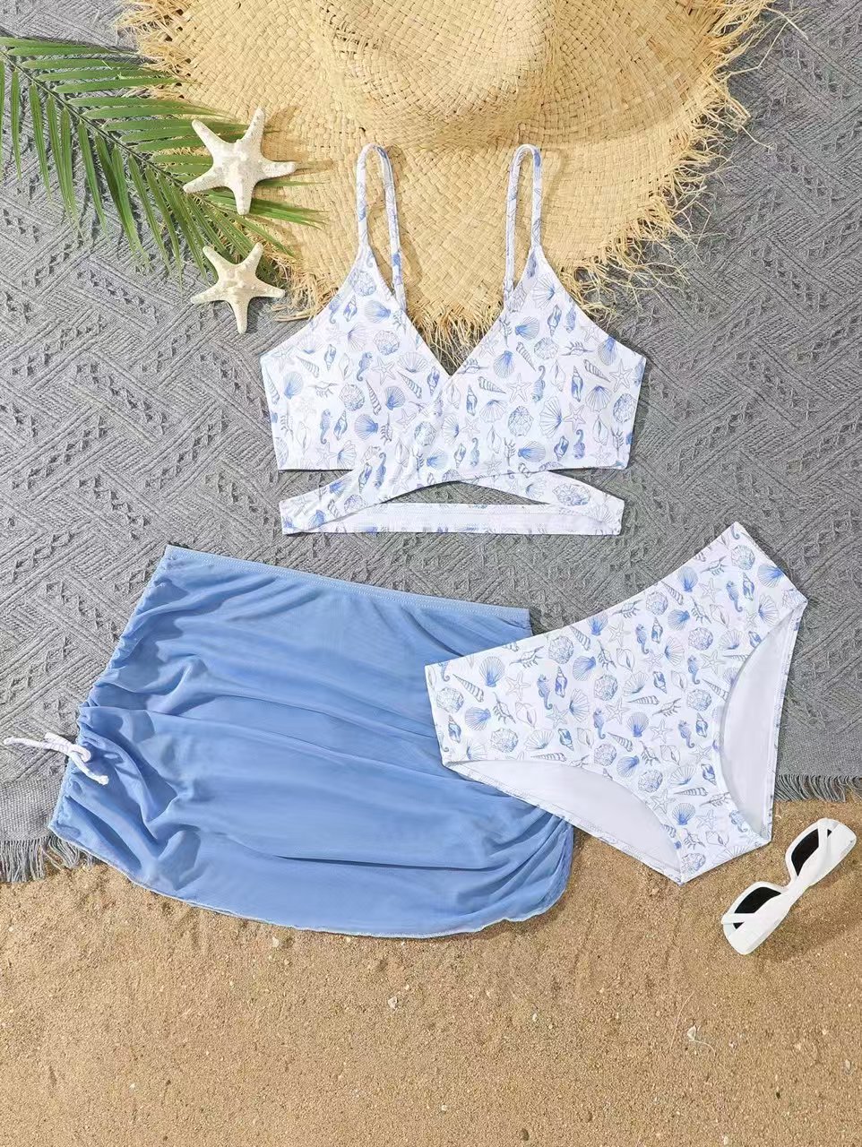 2025년 신상품 해외 무역 아마존 유럽 및 미국 섹시 프린트 분리형 중대형 여아 비키니 수영복 제조업체 도매스토어 가기