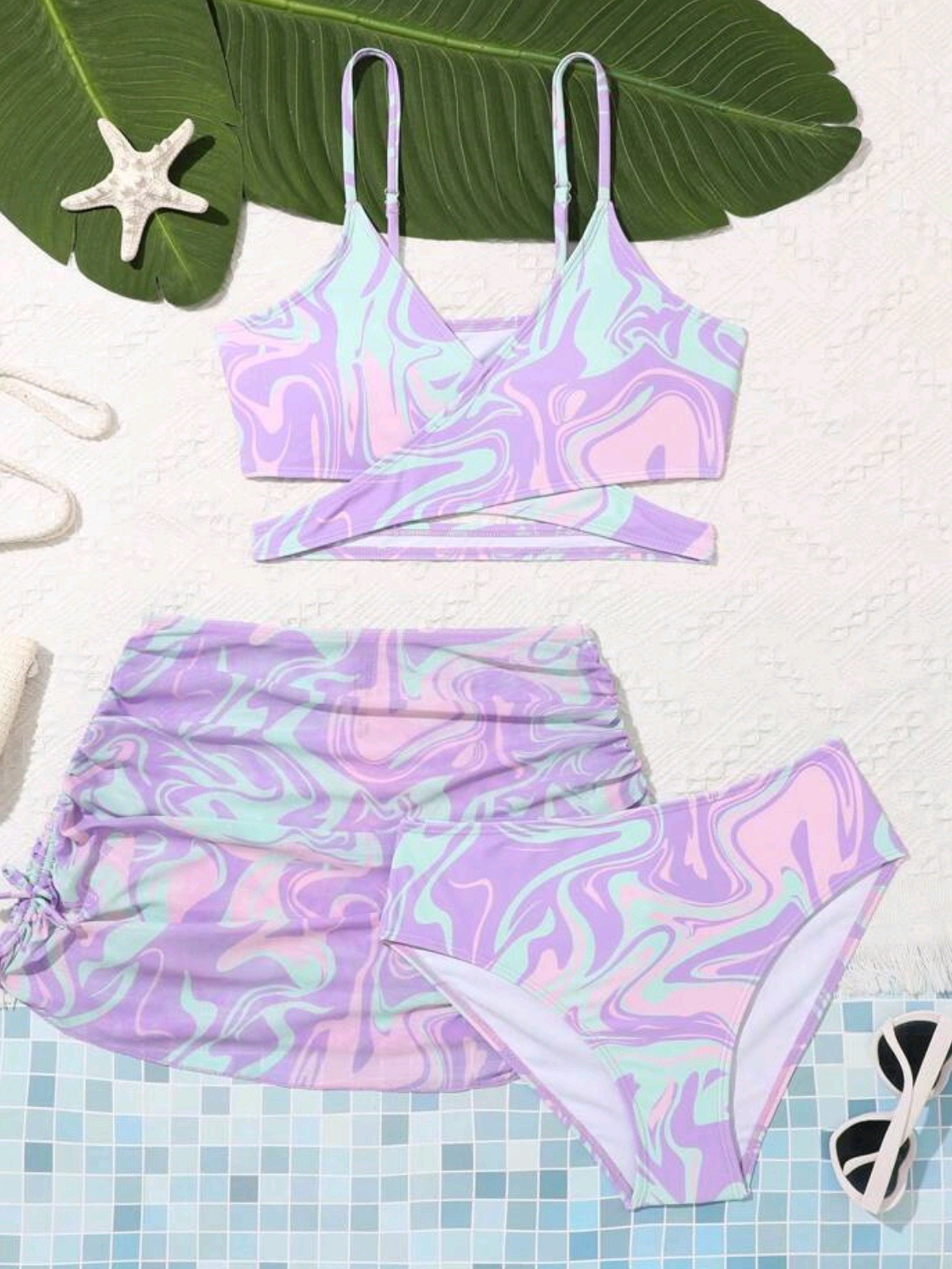 2025년 신상품 해외 무역 아마존 유럽 및 미국 섹시 프린트 분리형 중대형 여아 비키니 수영복 제조업체 도매