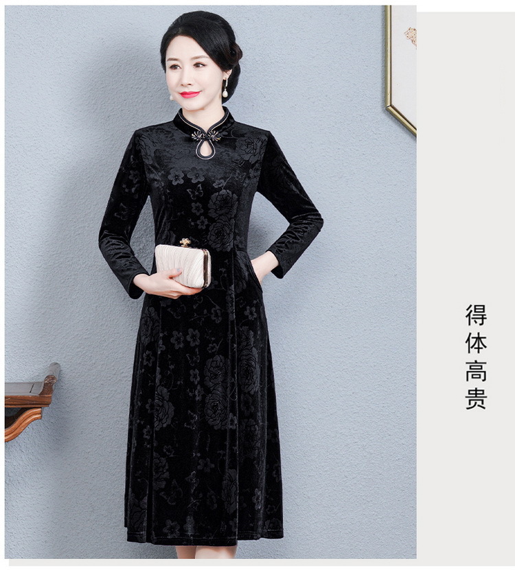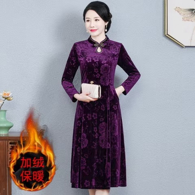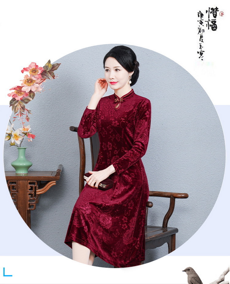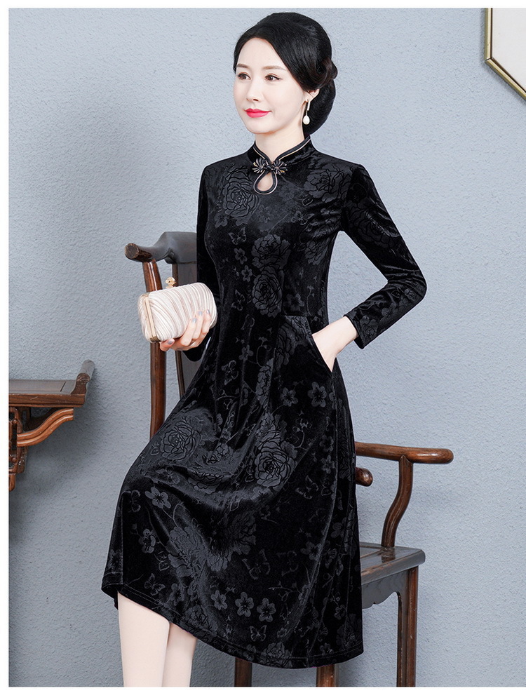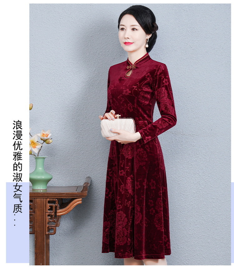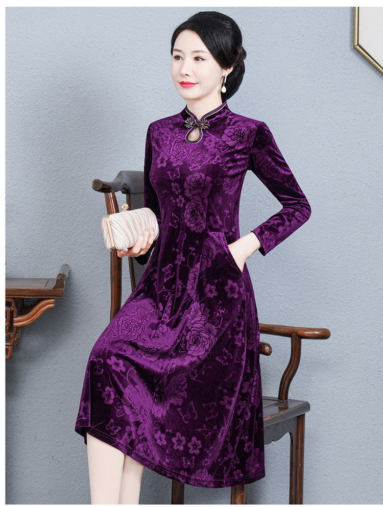 개량된 청삼 원피스 여자 2024 년 봄 · 가을 새 최고급 청삼 슬림핏 황금 벨벳 스커트스토어 가기