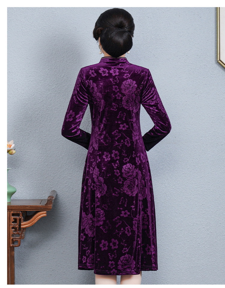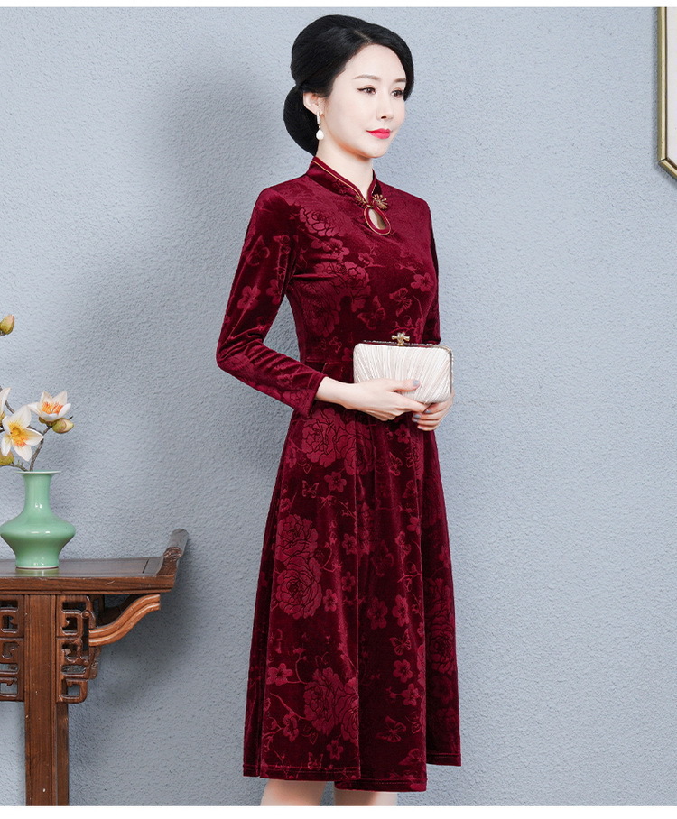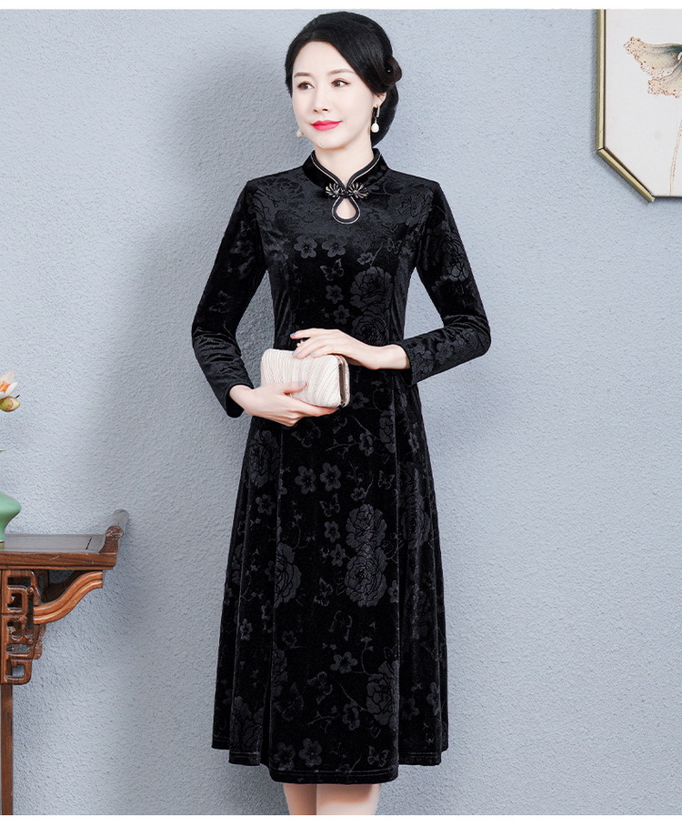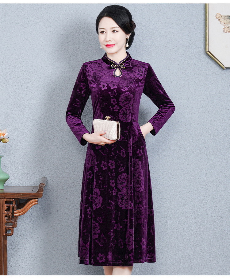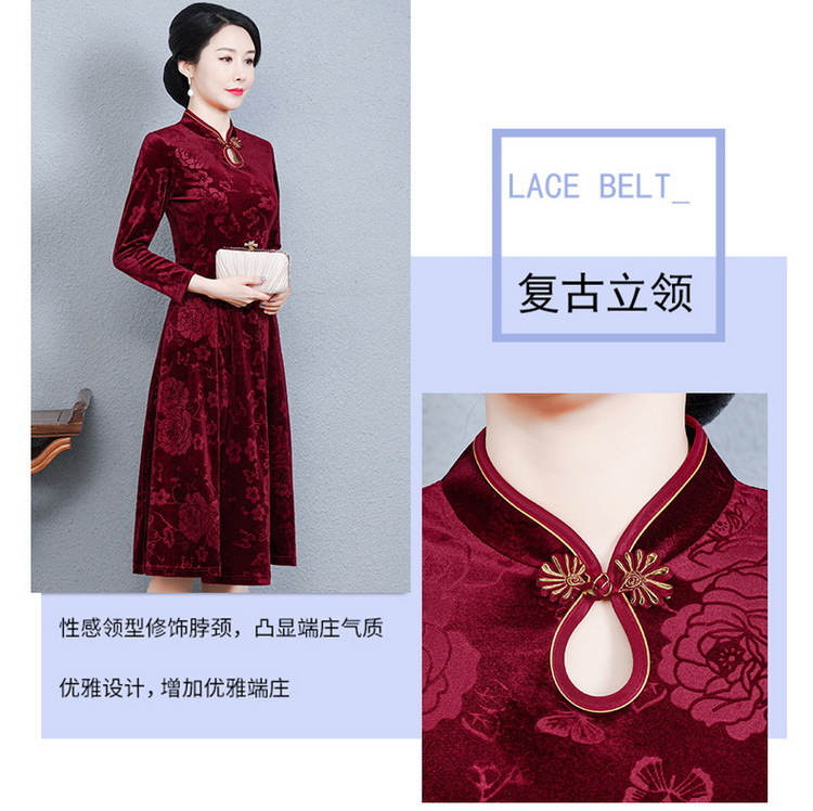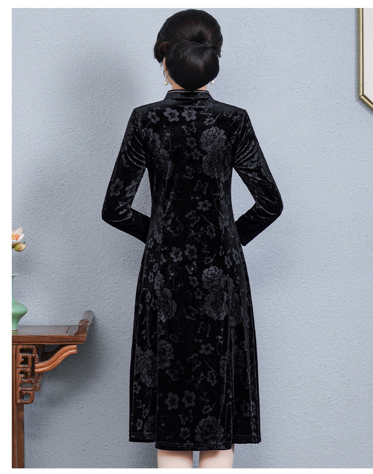 개량된 청삼 원피스 여자 2024 년 봄 · 가을 새 최고급 청삼 슬림핏 황금 벨벳 스커트스토어 가기