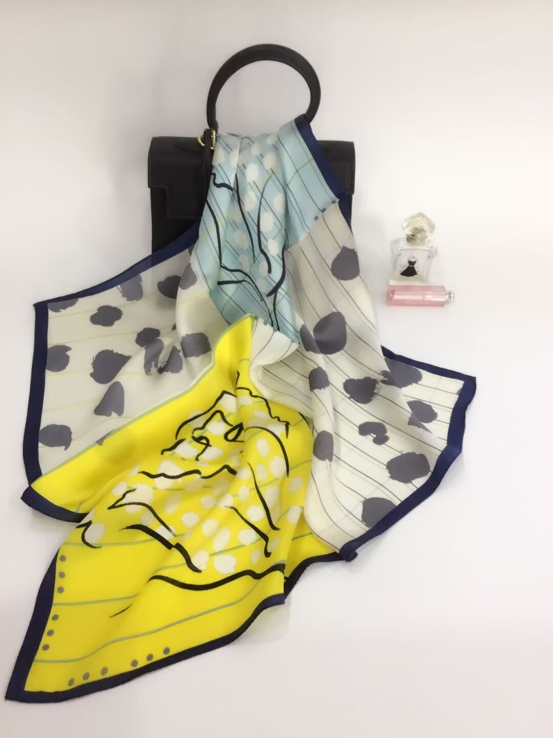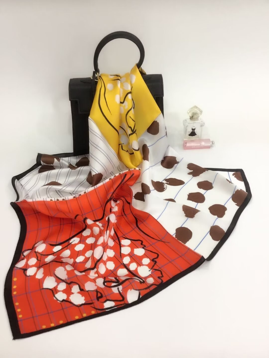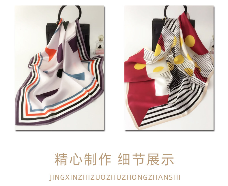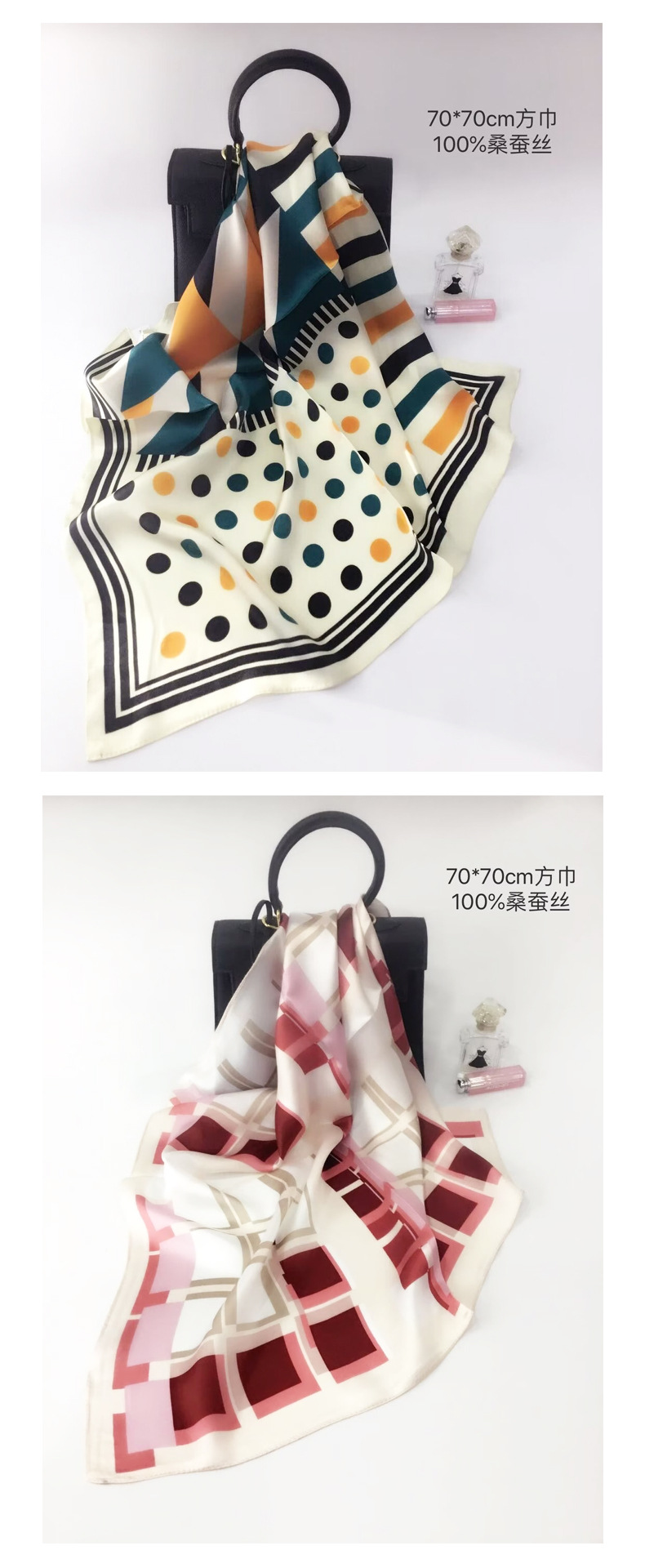2025년 신상품 실크 스카프, 기하학적 패턴의 작은 스카프, 패셔너블하고 심플한 전문적인 70 스카프, 다용도스토어 가기
