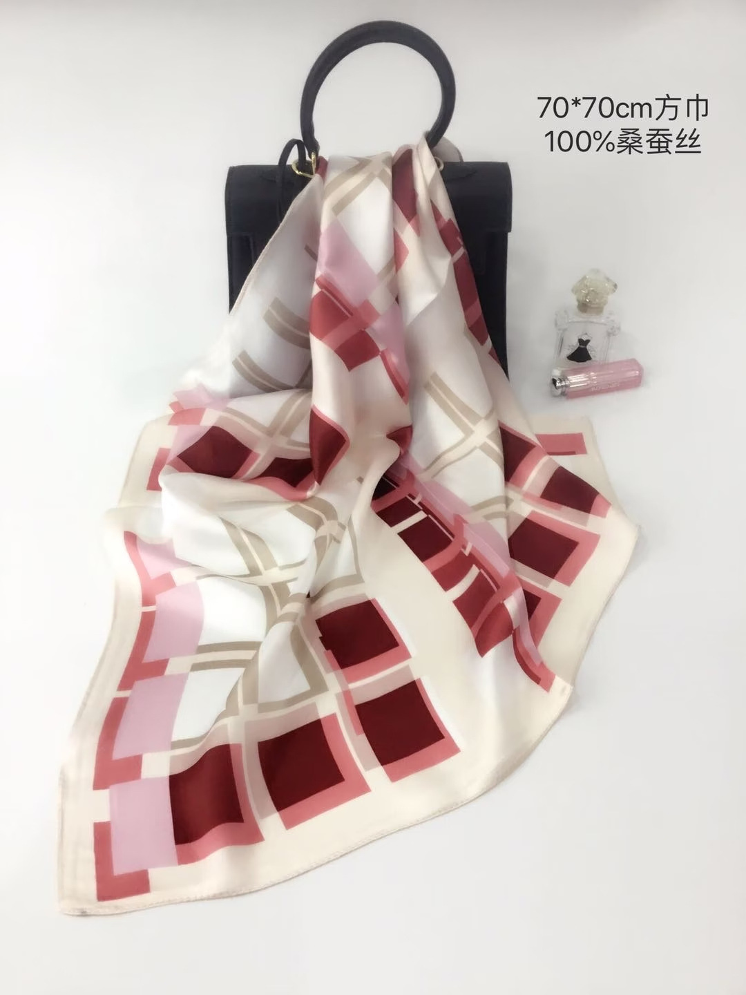 2025년 신상품 실크 스카프, 기하학적 패턴의 작은 스카프, 패셔너블하고 심플한 전문적인 70 스카프, 다용도