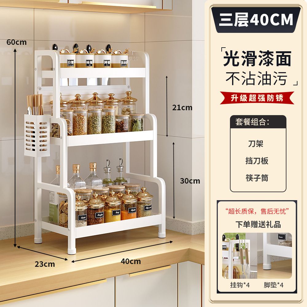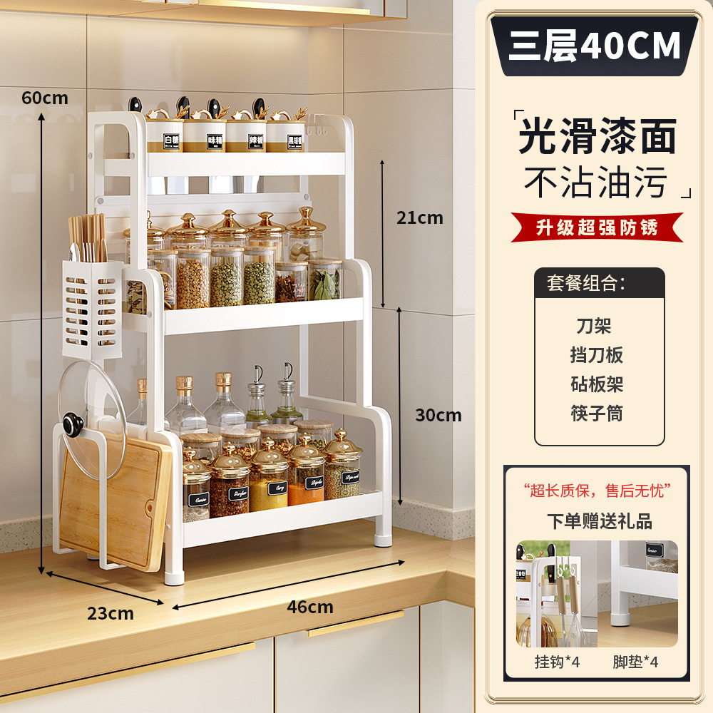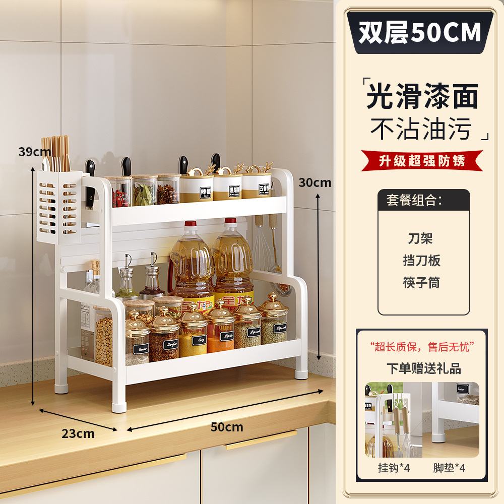 2025 새로운 스타일의 흰색 주방 조미료 보관 랙 다기능 양념 랙 조미료 랙 나이프 랙 카운터 탑 스토리지 랙스토어 가기