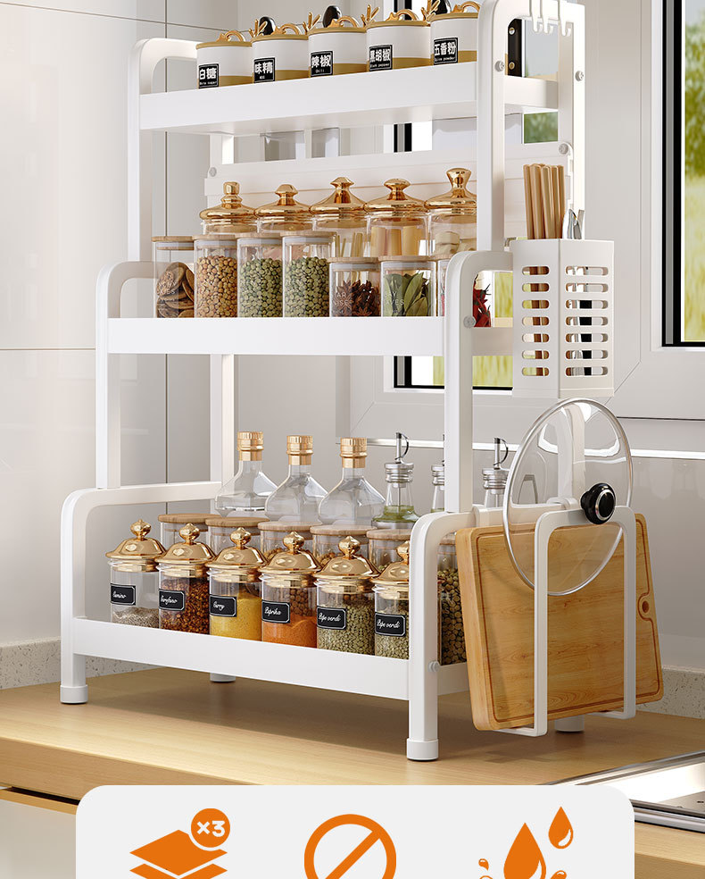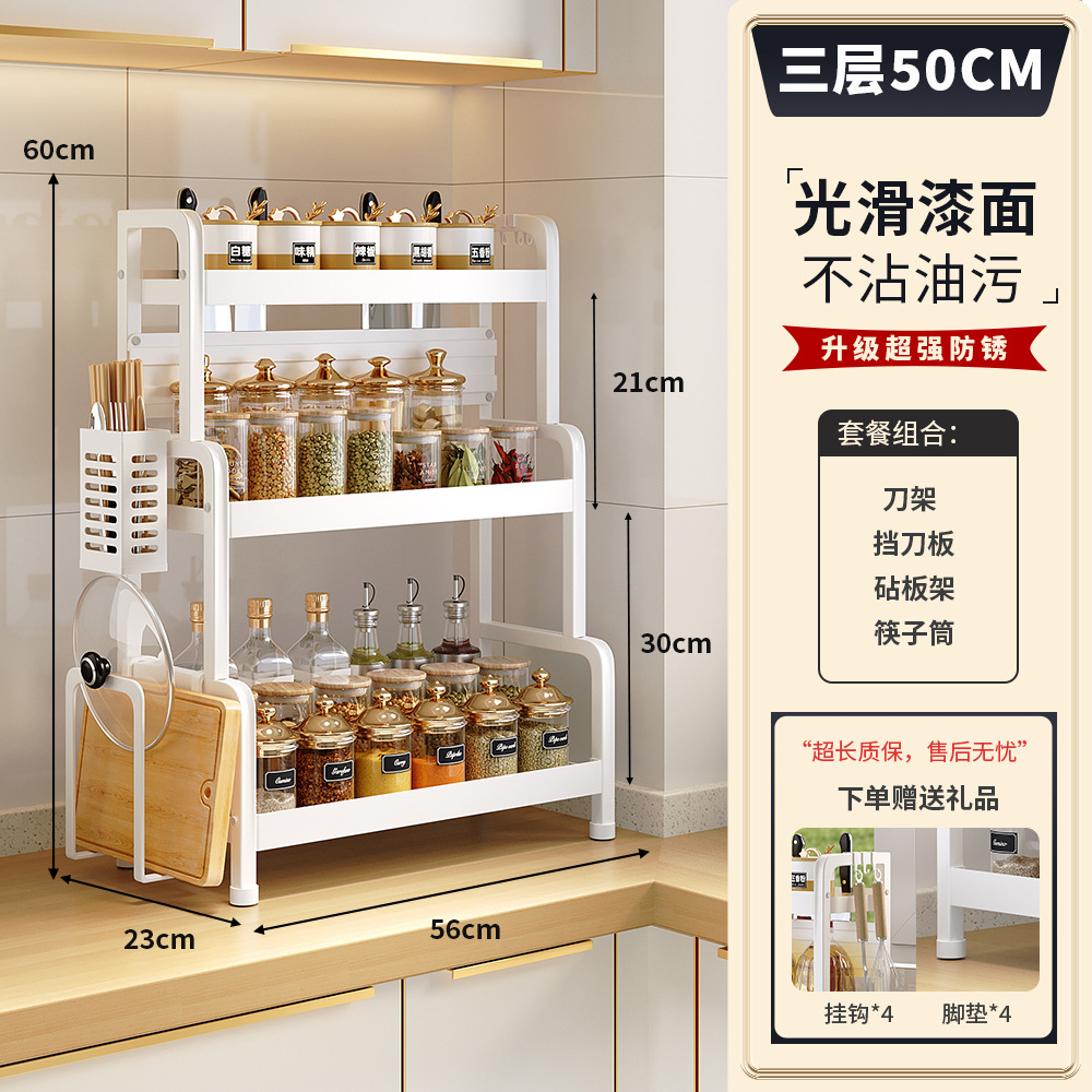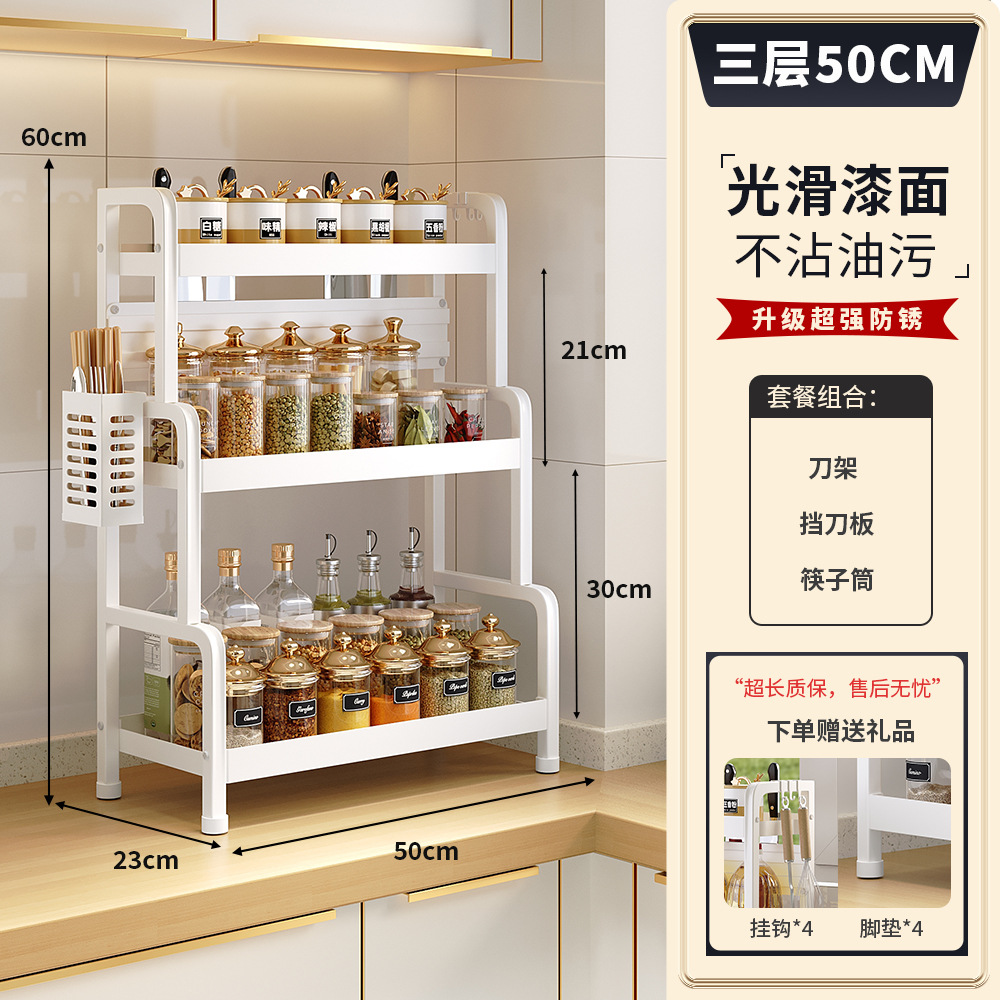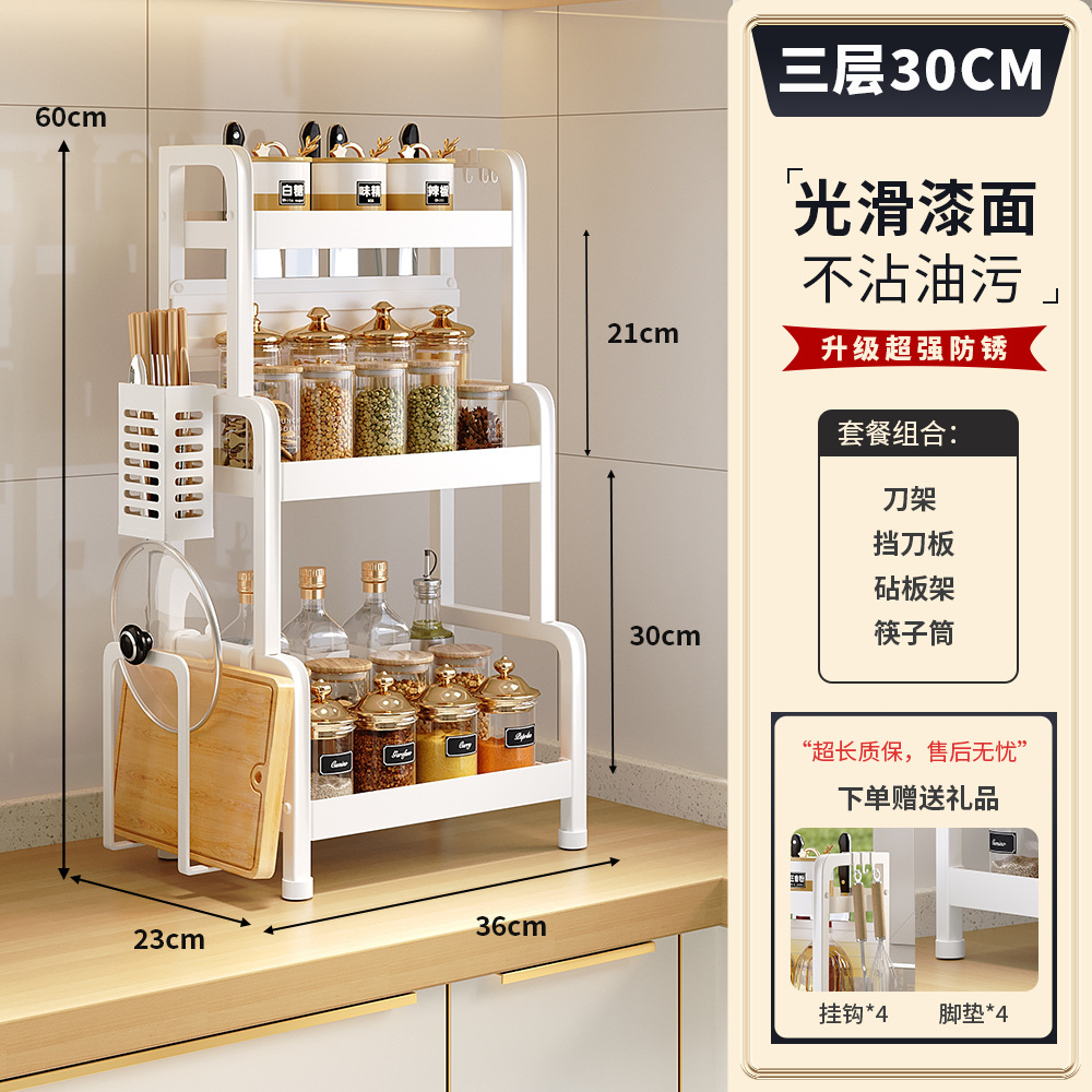 2025 새로운 스타일의 흰색 주방 조미료 보관 랙 다기능 양념 랙 조미료 랙 나이프 랙 카운터 탑 스토리지 랙스토어 가기