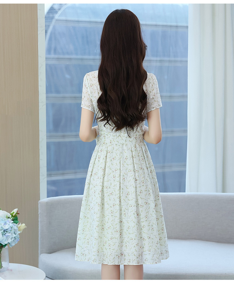 2025 반팔 원피스 여성 새 여름 어머니 꽃 작은 흰색 슬림 원피스