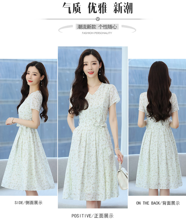 2025 반팔 원피스 여성 새 여름 어머니 꽃 작은 흰색 슬림 원피스스토어 가기
