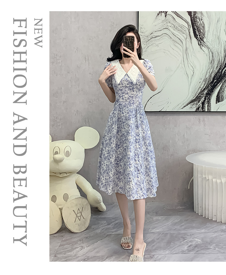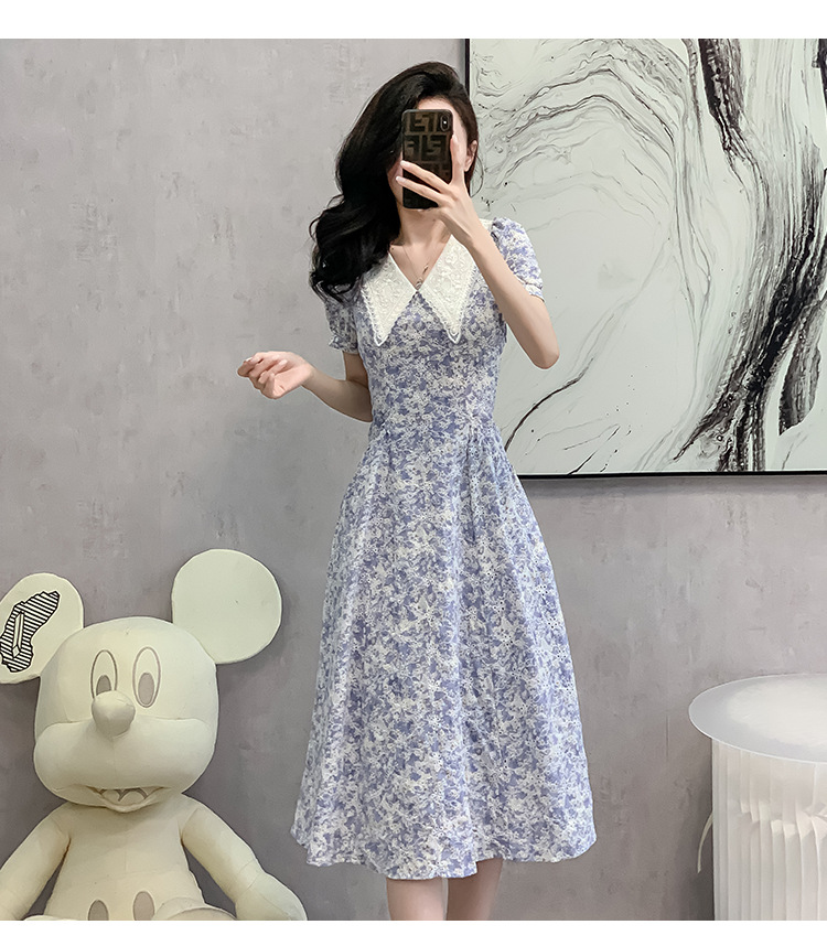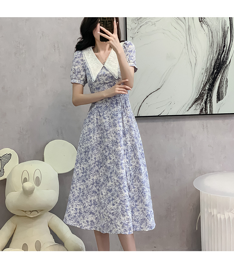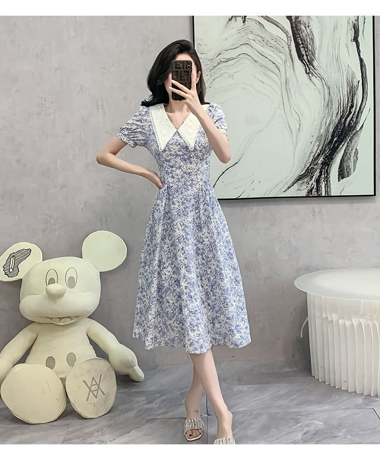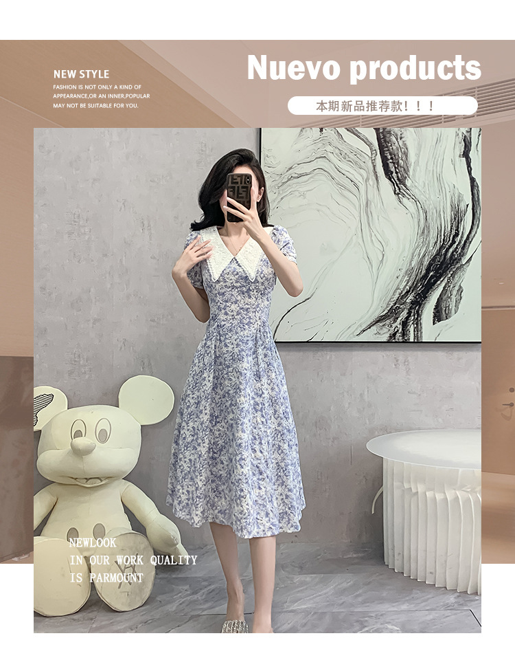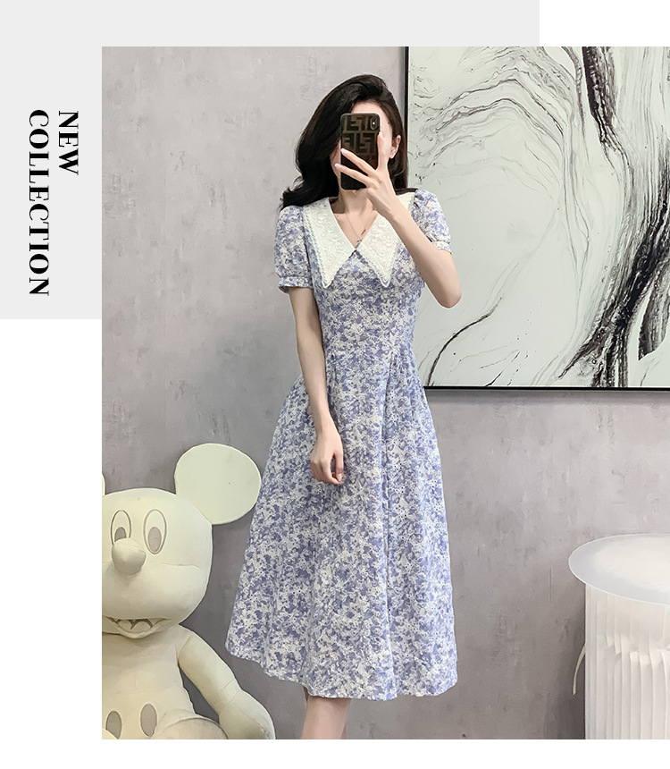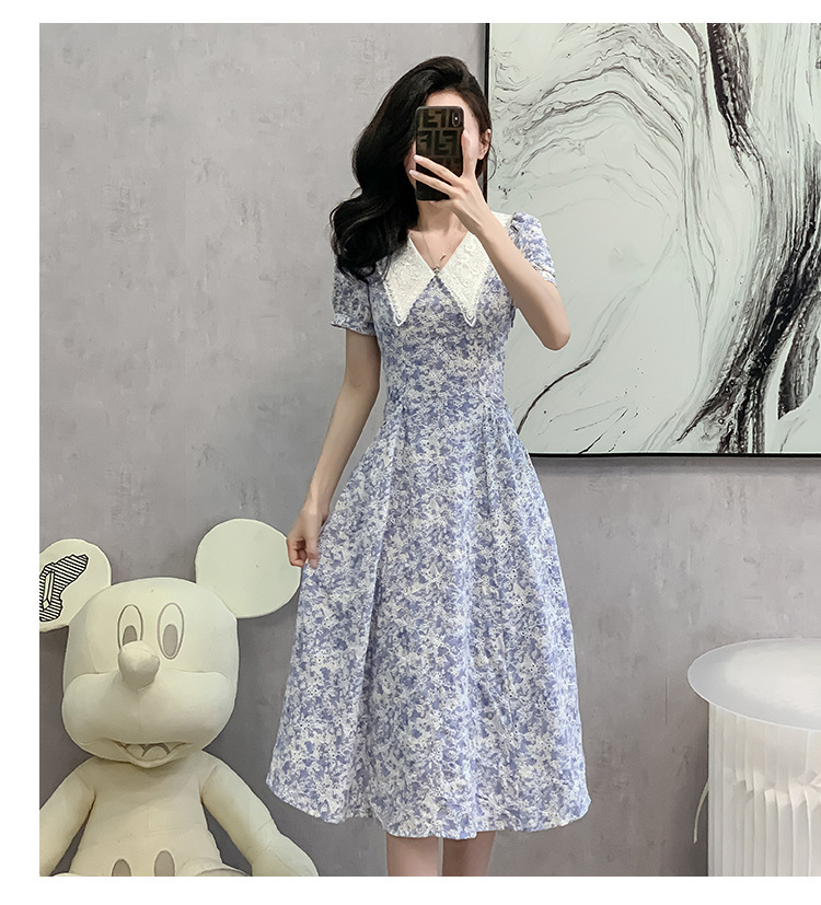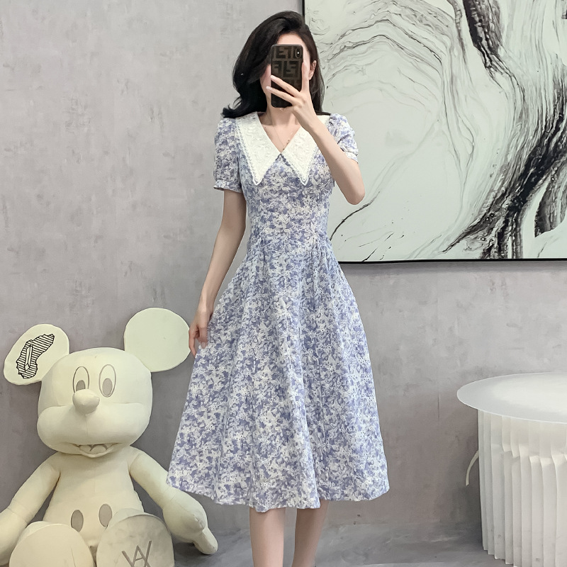차 브레이크 프랑스 인형 칼라 꽃 원피스 어린이 여름 새로운 틈새 디자인 긴 원피스스토어 가기