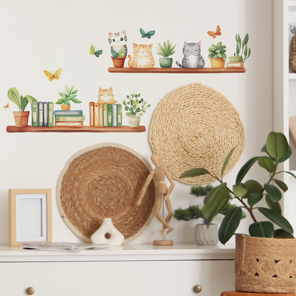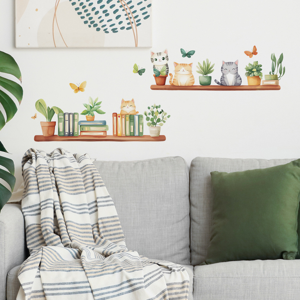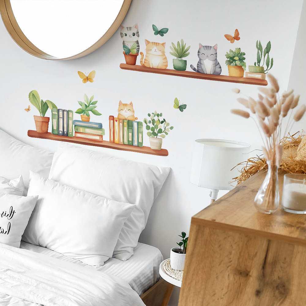 Fun-e258 대외 무역 그린 식물 고양이 침실 거실 집 벽 배경 장식 벽 스티커 도매