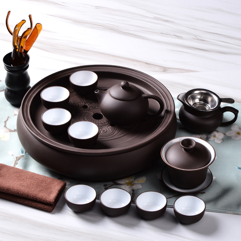 Zisha Kung Fu 차 세트 세트 티 컵 주전자 차 트레이 세라믹 차 세트 라운드 차 세척 물 저장 가정용 차 세트스토어 가기