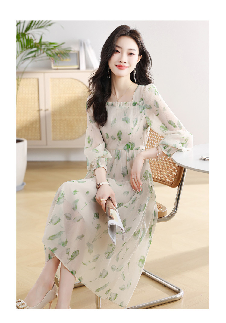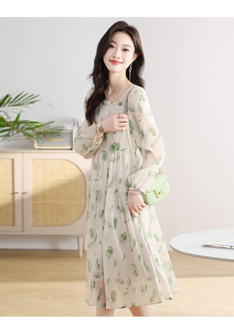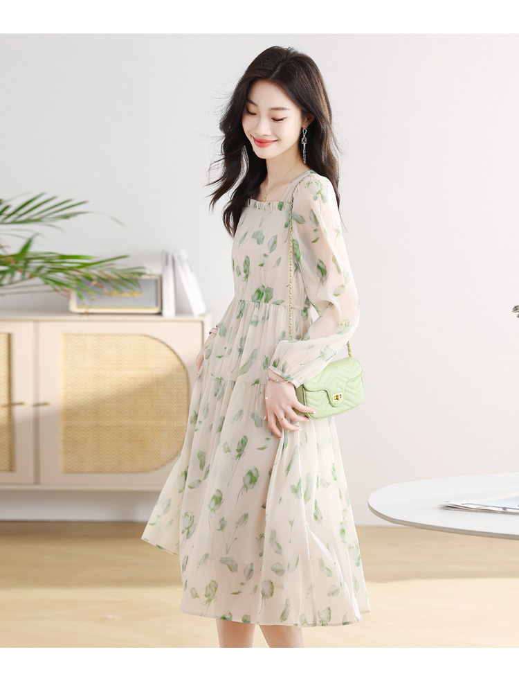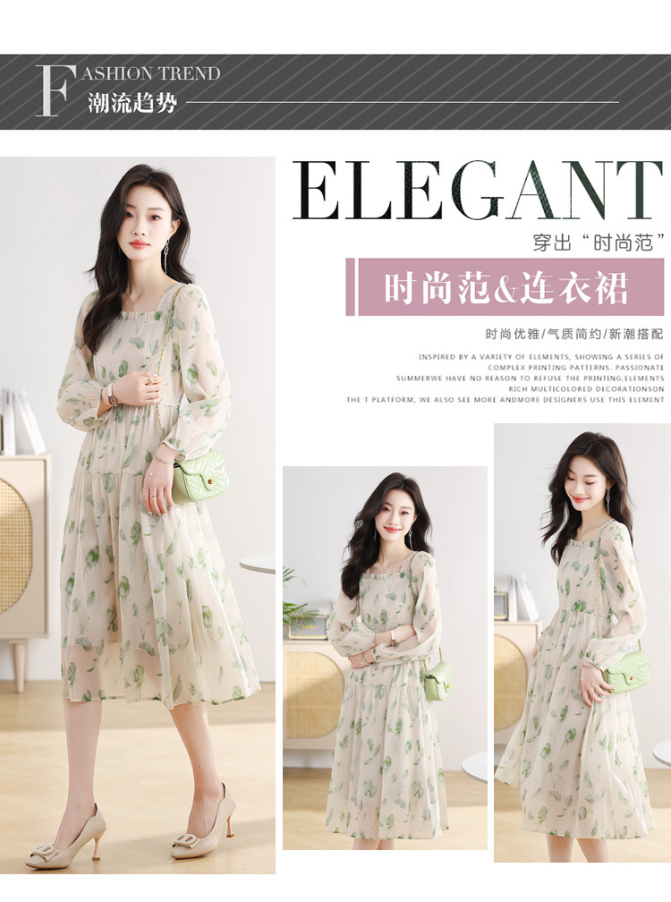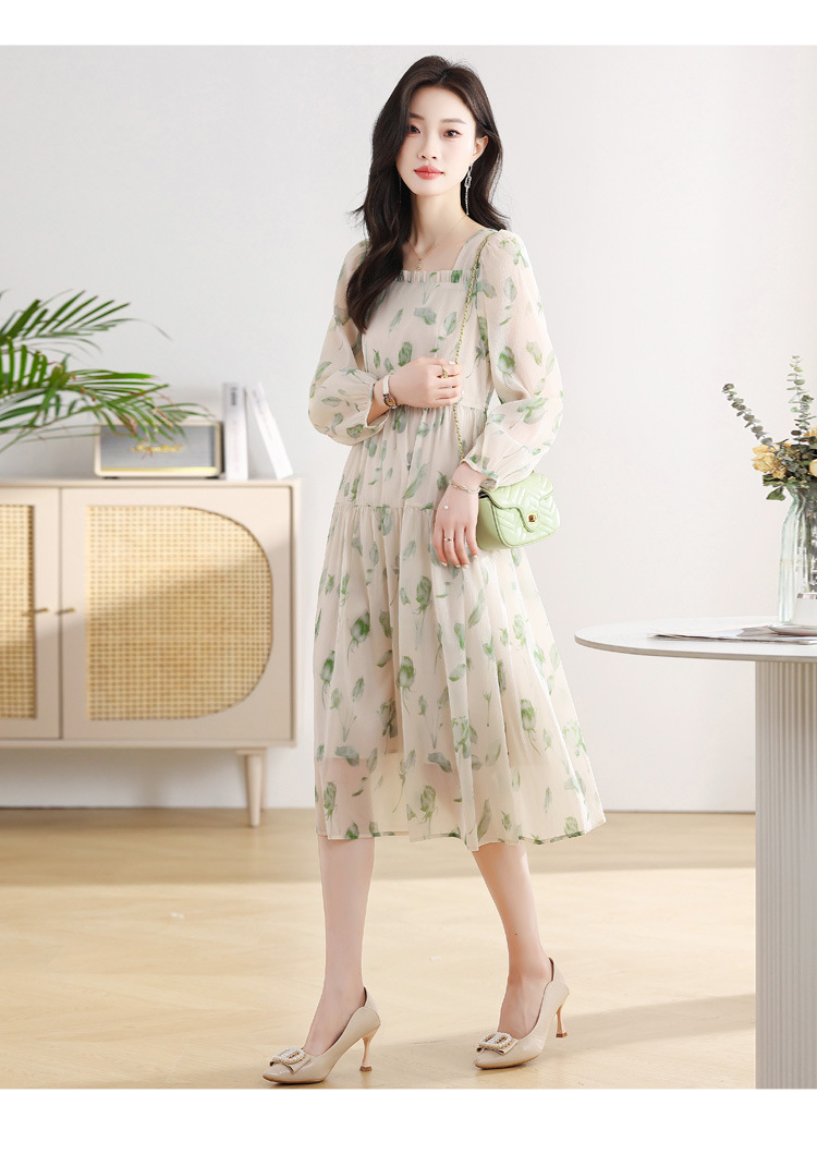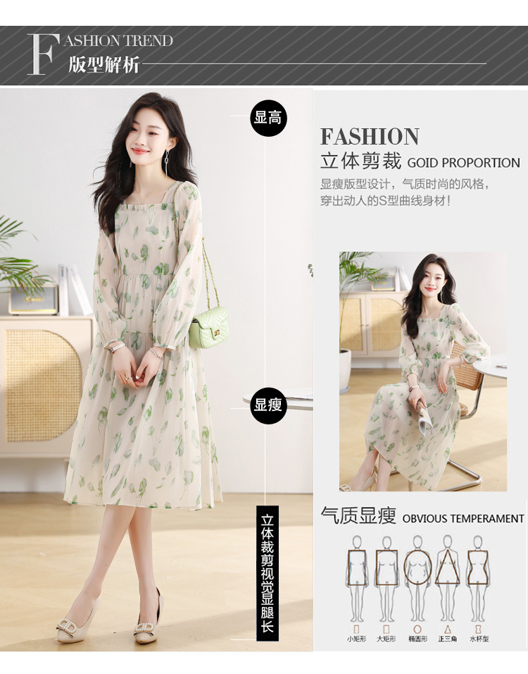 프랑스 스타일 꽃 원피스 봄과 가을 새로운 퍼프 소매 스커트 타이트 허리 슬리밍 니쉬 봄과 가을을위한 우아한 긴 치마스토어 가기