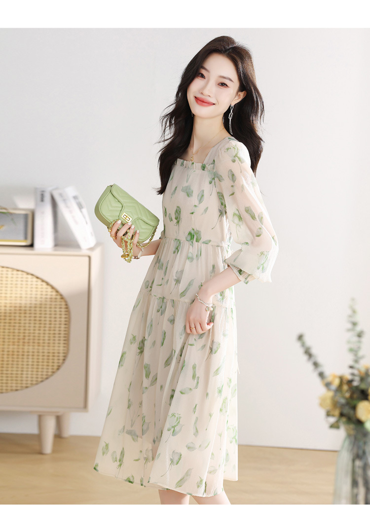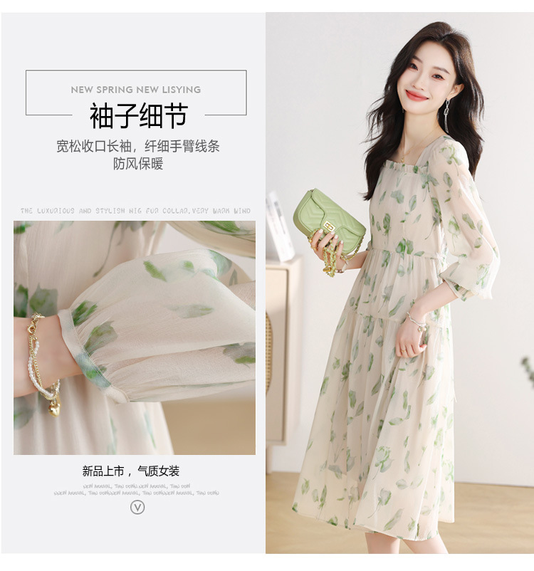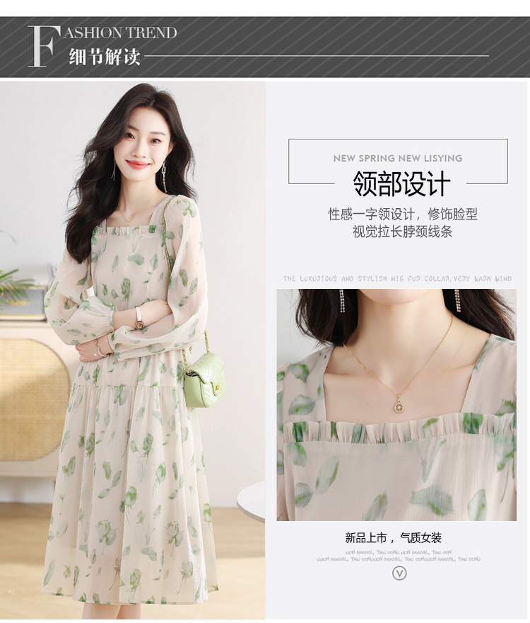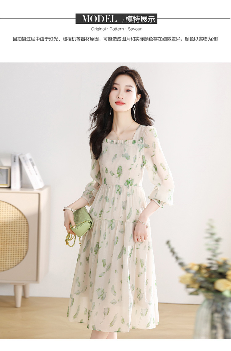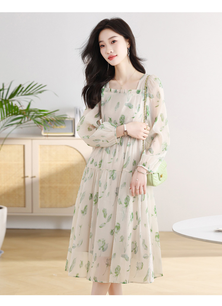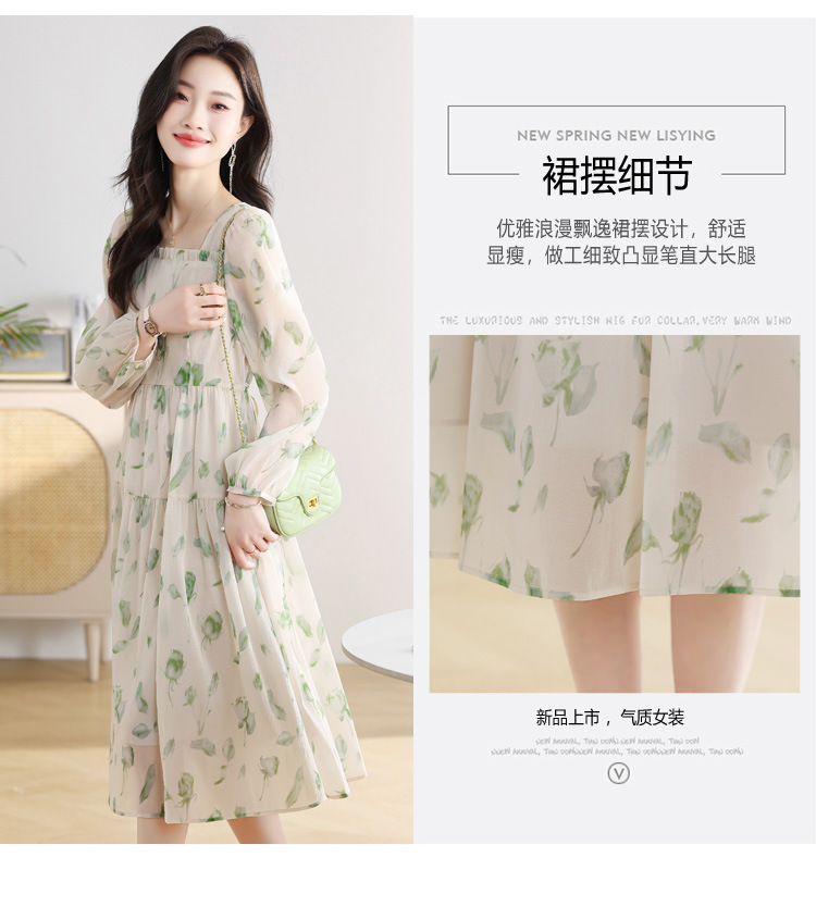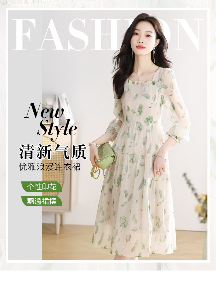 프랑스 스타일 꽃 원피스 봄과 가을 새로운 퍼프 소매 스커트 타이트 허리 슬리밍 니쉬 봄과 가을을위한 우아한 긴 치마스토어 가기