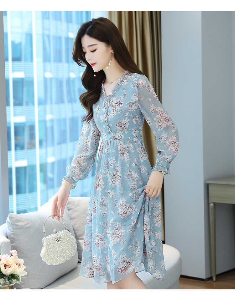 인터넷 인기 스타일 우아한 꽃 그룹 어린이 2025 봄과 가을 새로운 스타일 우아한 V 넥 타이트 허리 올 매치 인기 루스토어 가기