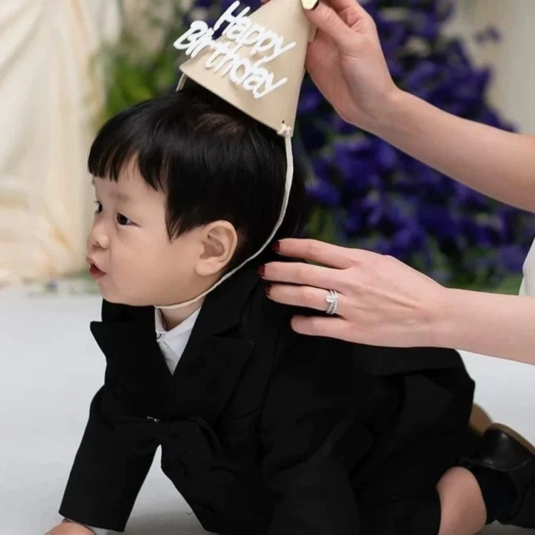 소년 아기 1 년 된 저녁 식사 원피스 영국 스타일 꽃 소년 결혼식 어린 소년 생일 어린이 세트 세트 보이 블랙
