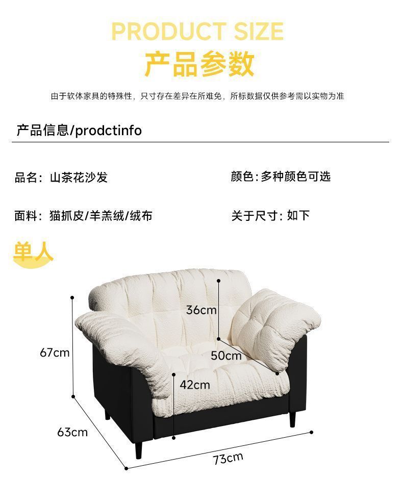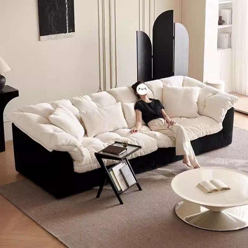 동백 원단 소파 거실 가정용 게으른 소파 새로운 스타일 이탈리아 크림 스타일 스트레이트 행 더블 소파 단순