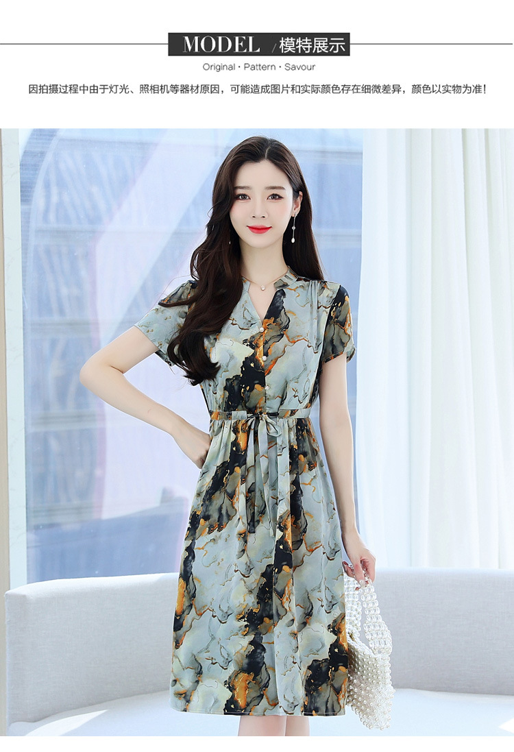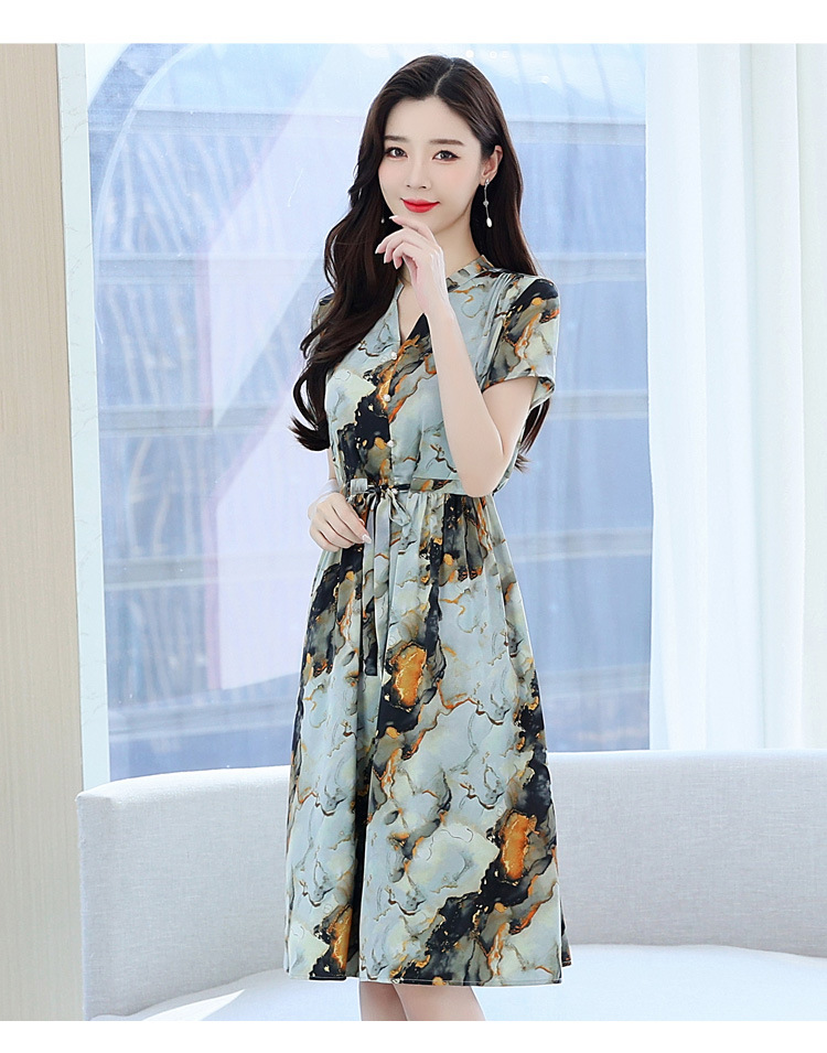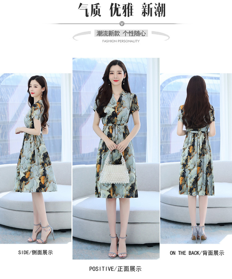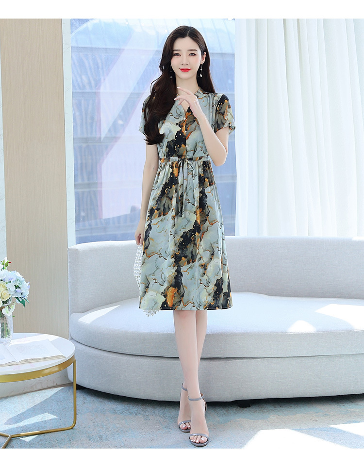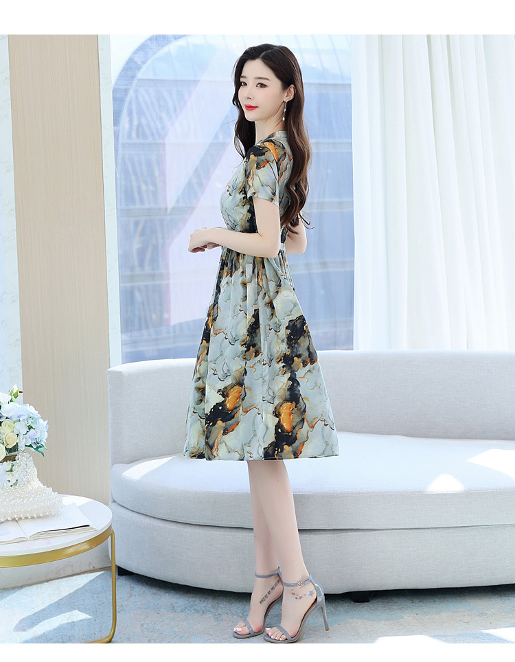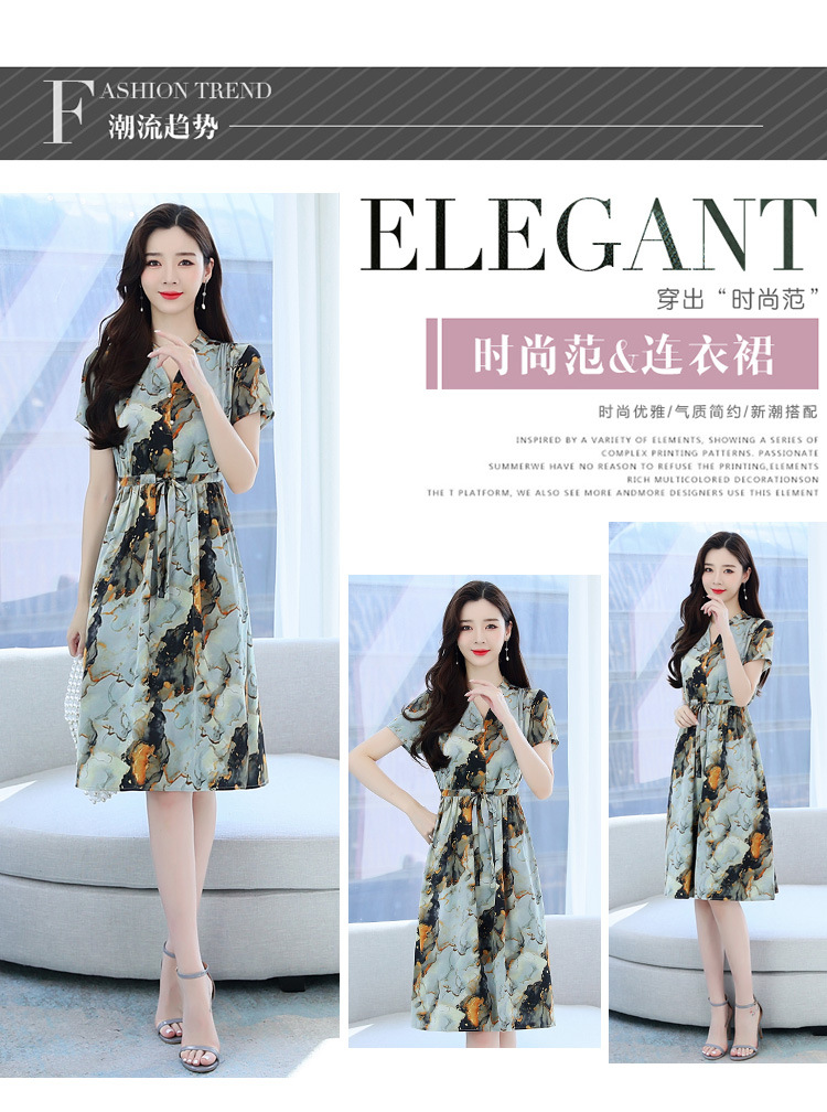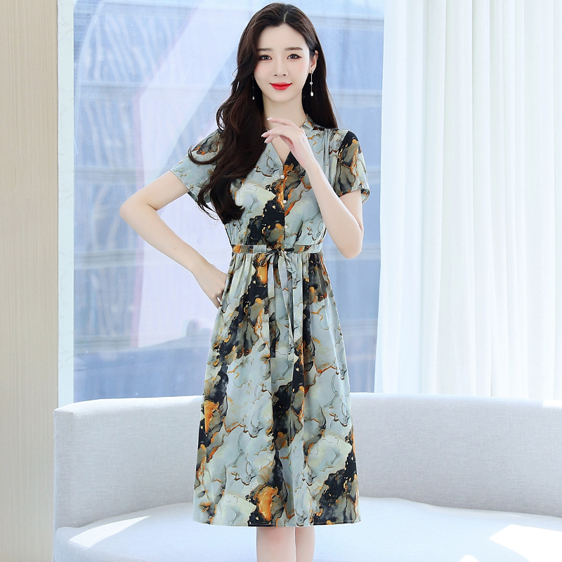 여름 외국 스타일 원피스 기질 40 세 50 중년 여성 반팔 넓은 아내 긴 치마