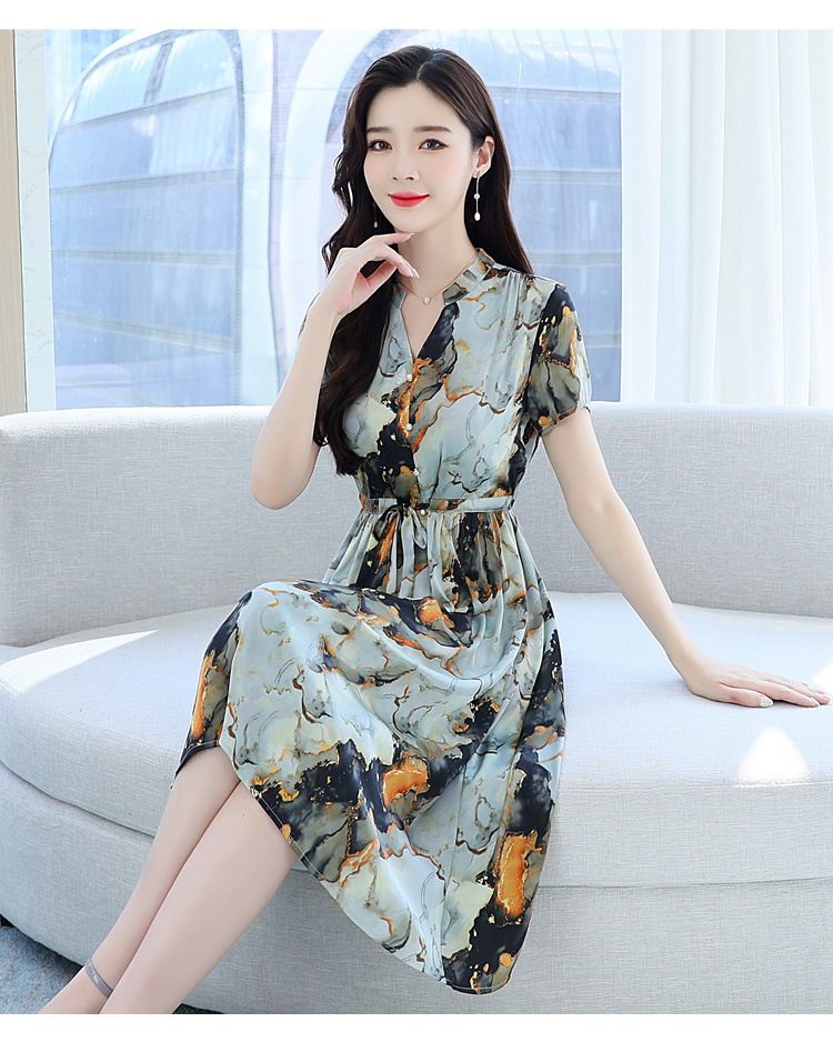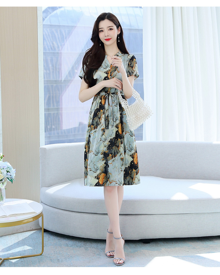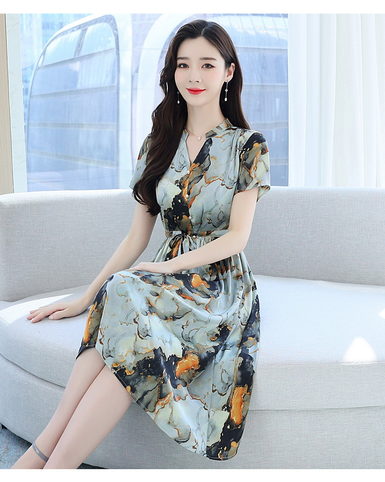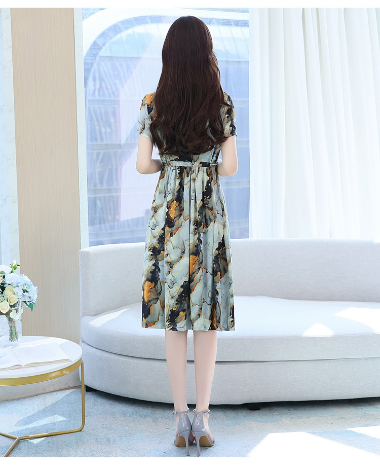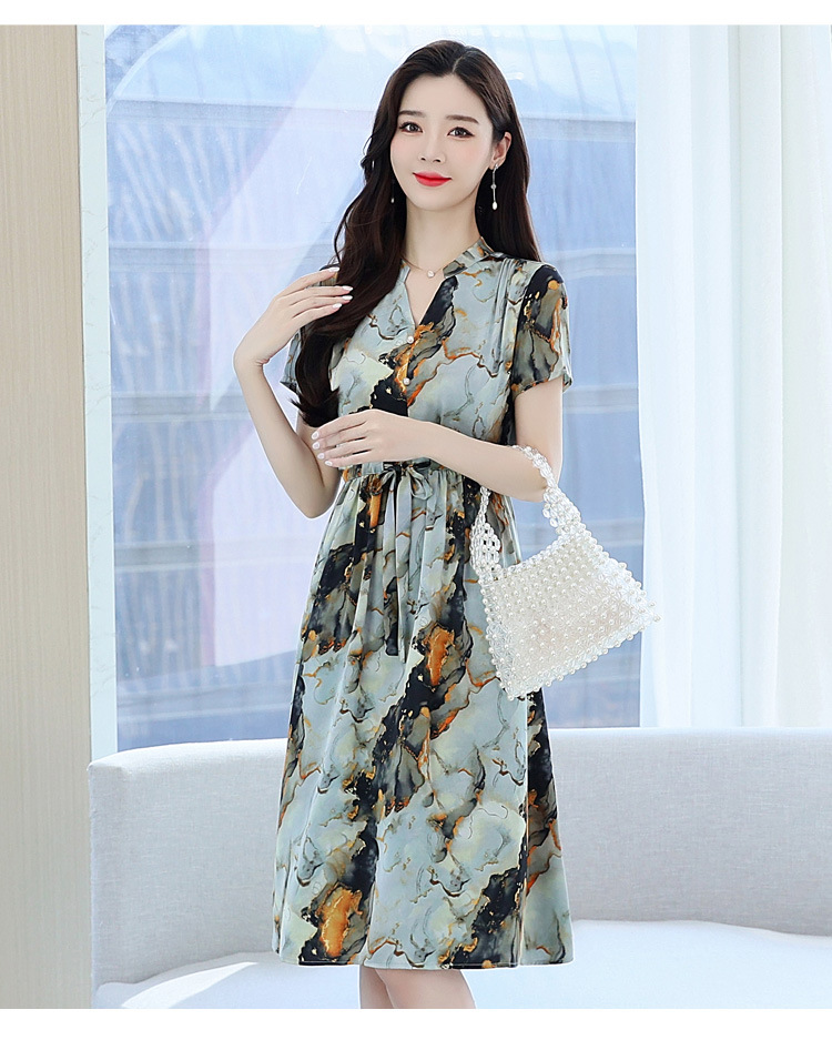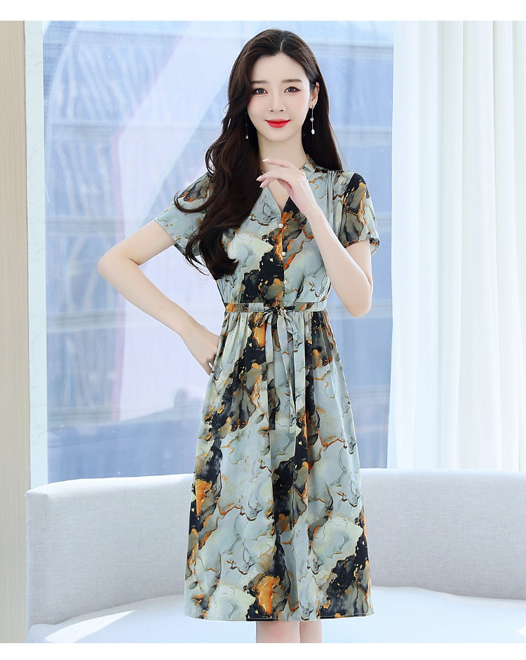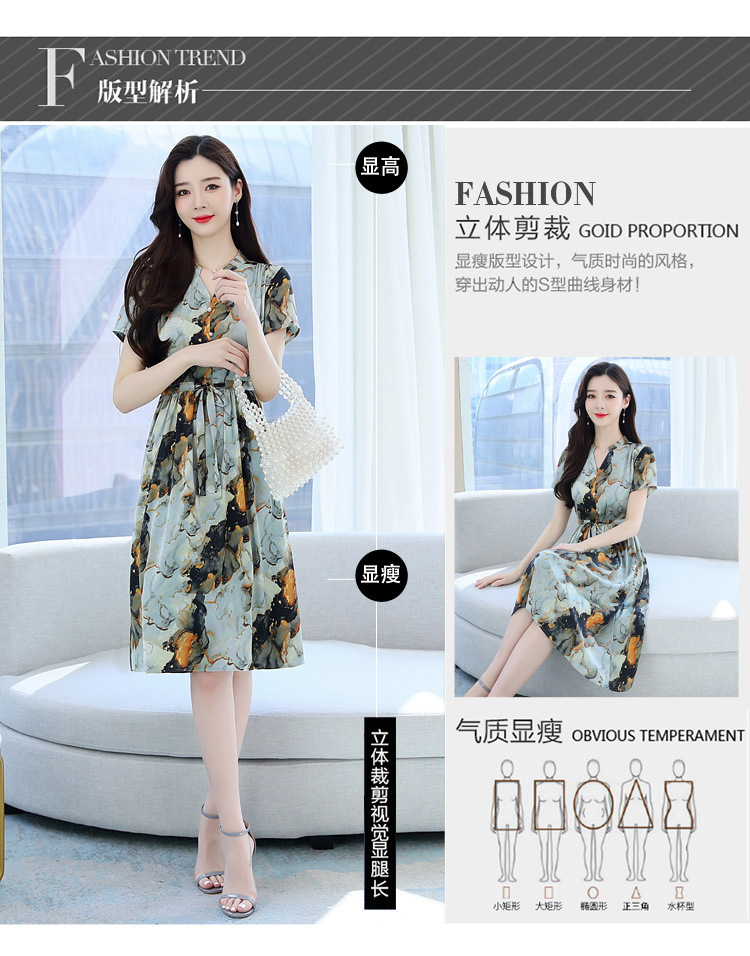 여름 외국 스타일 원피스 기질 40 세 50 중년 여성 반팔 넓은 아내 긴 치마