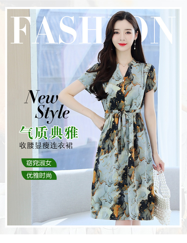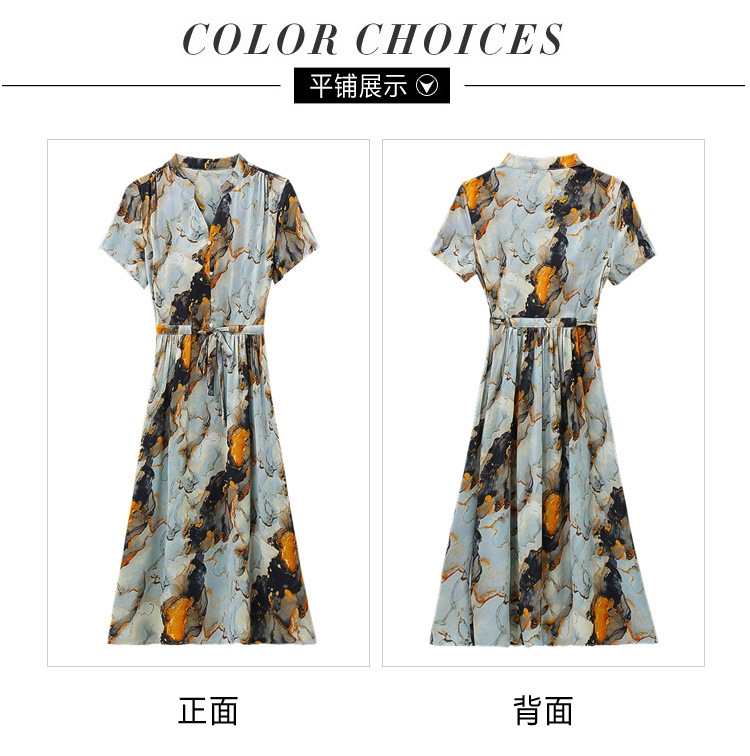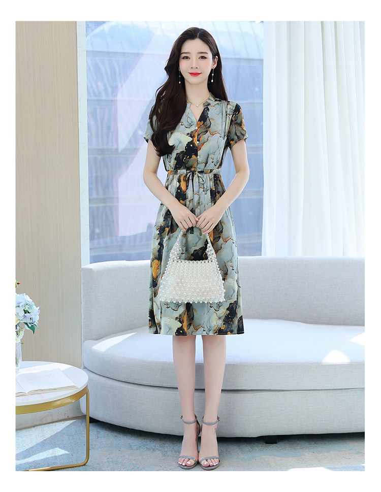 여름 외국 스타일 원피스 기질 40 세 50 중년 여성 반팔 넓은 아내 긴 치마스토어 가기