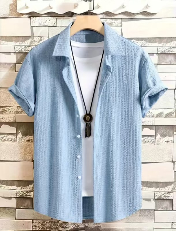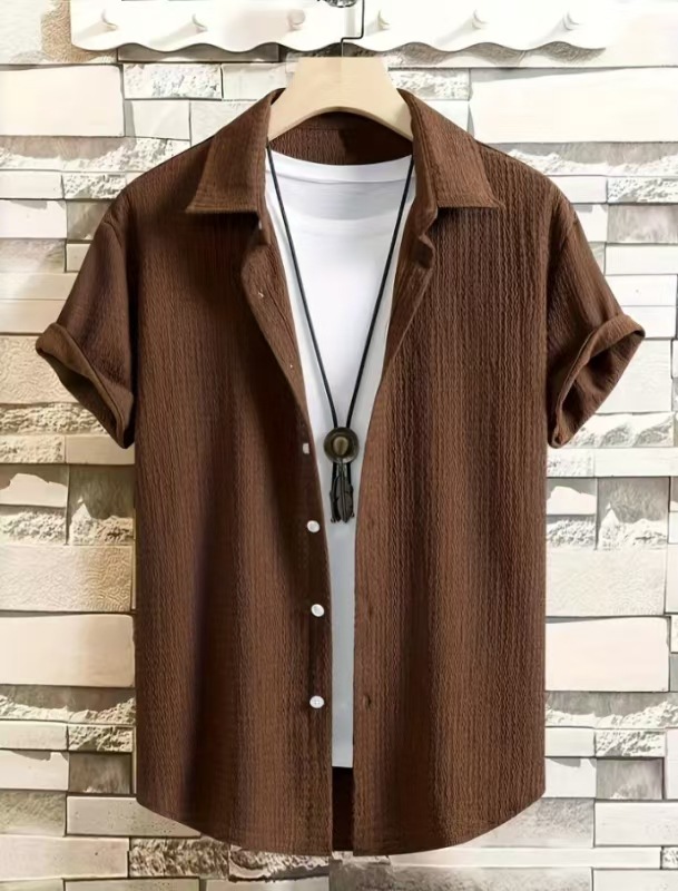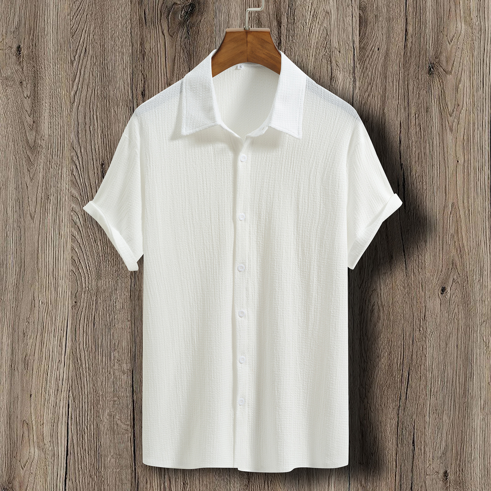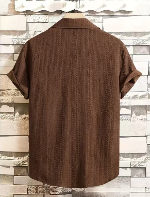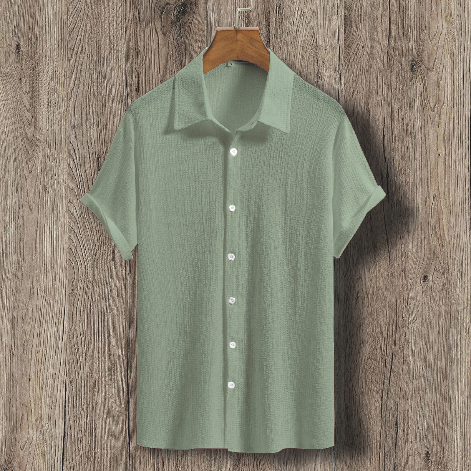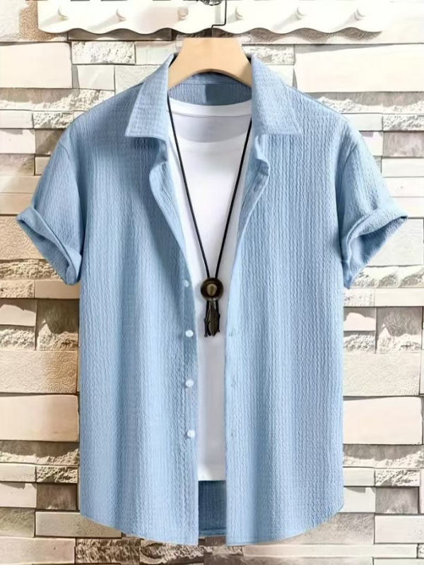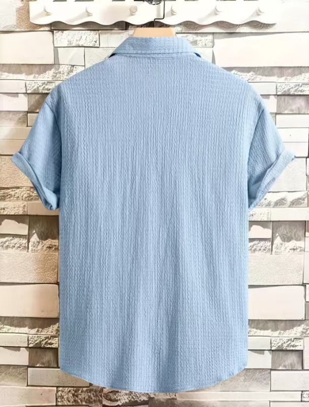 유럽과 미국의 국경 남성 새로운 반팔 셔츠 단색 패션 편안한 휴일 캐주얼 주름진 남성 반팔 셔츠스토어 가기