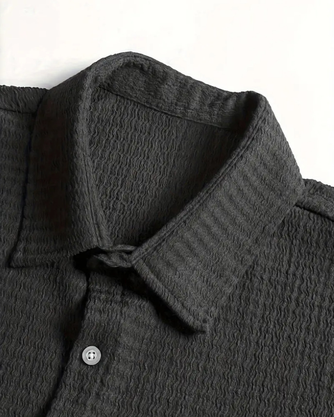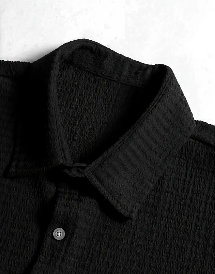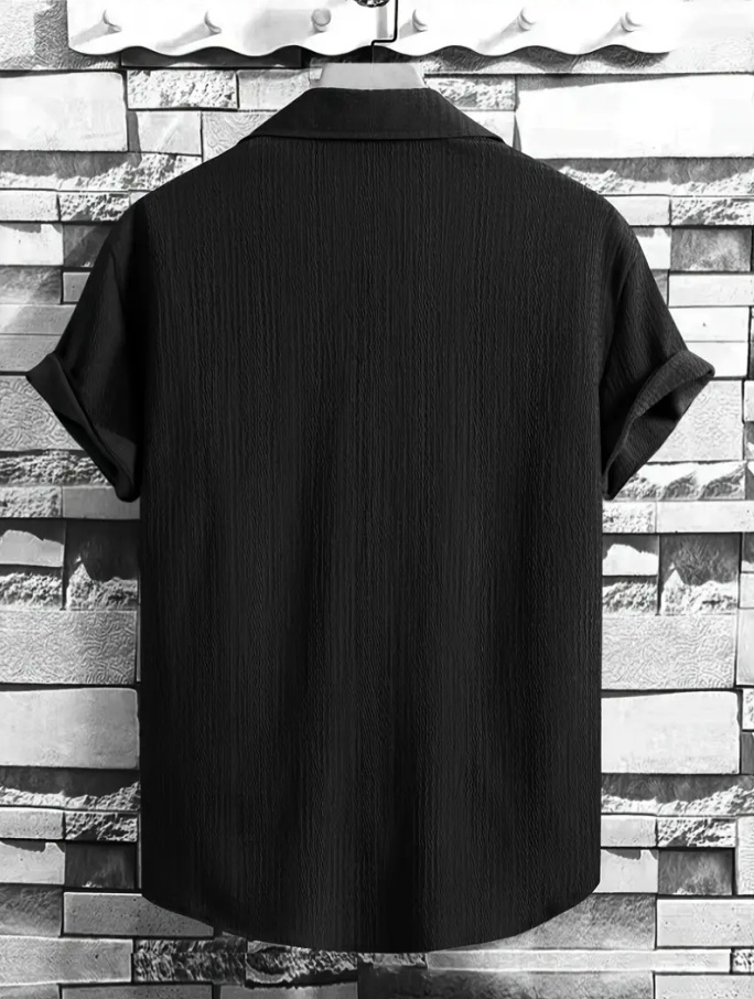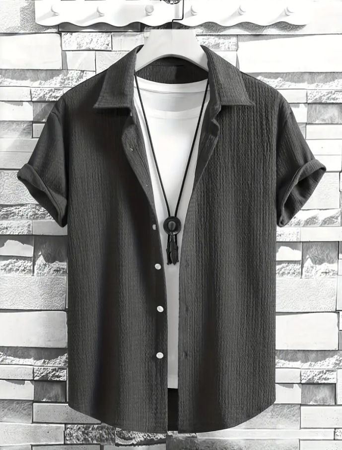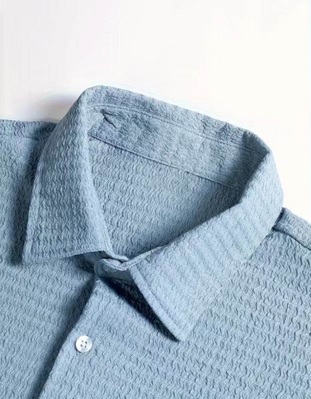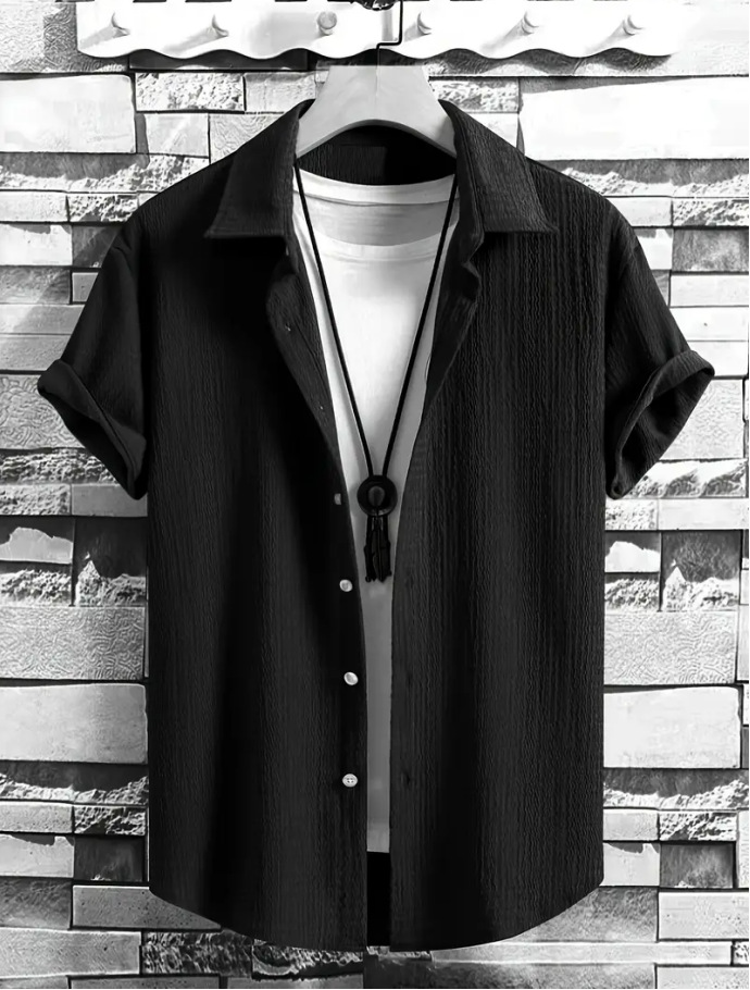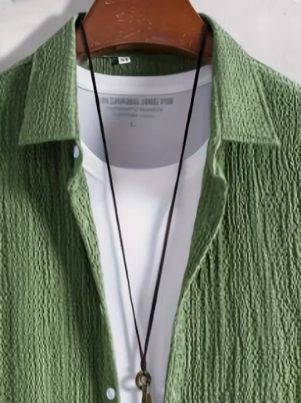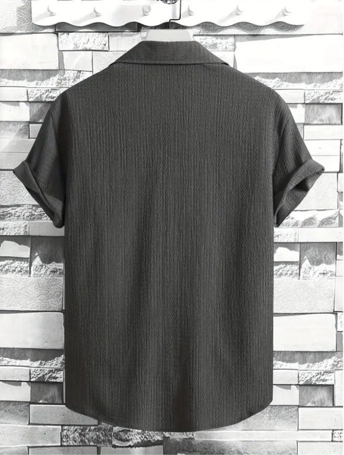 유럽과 미국의 국경 남성 새로운 반팔 셔츠 단색 패션 편안한 휴일 캐주얼 주름진 남성 반팔 셔츠스토어 가기