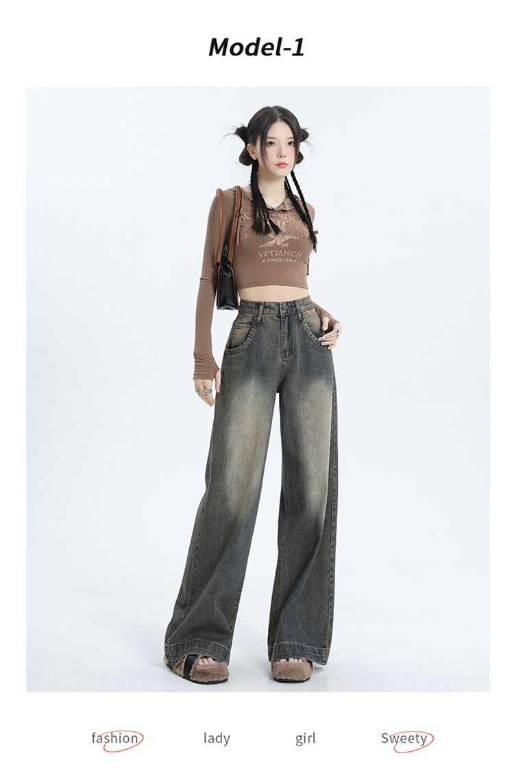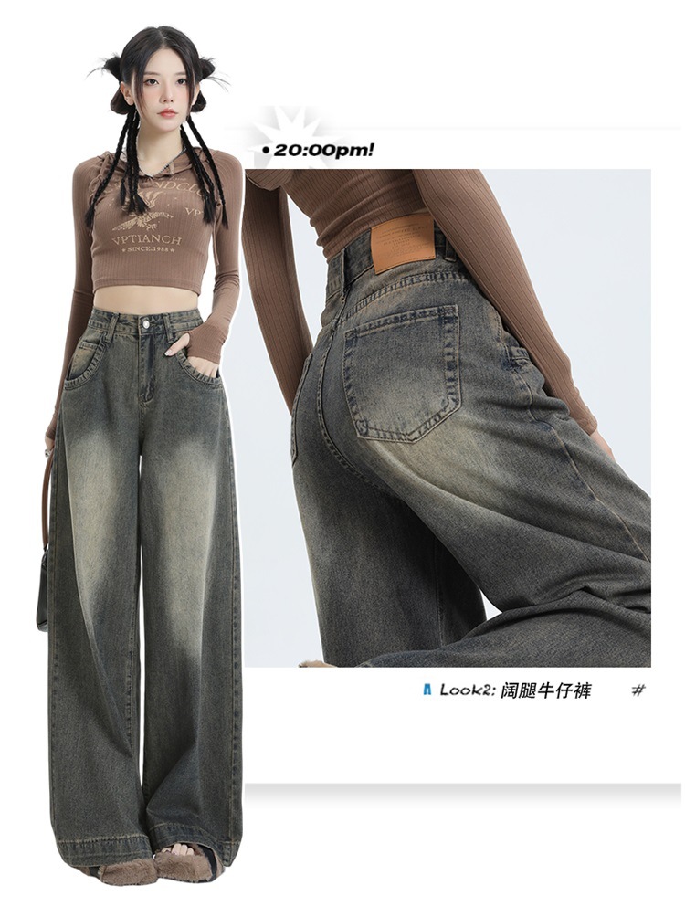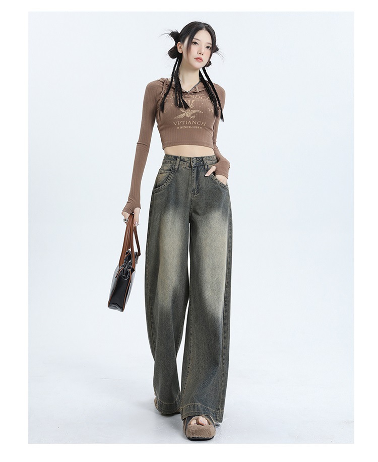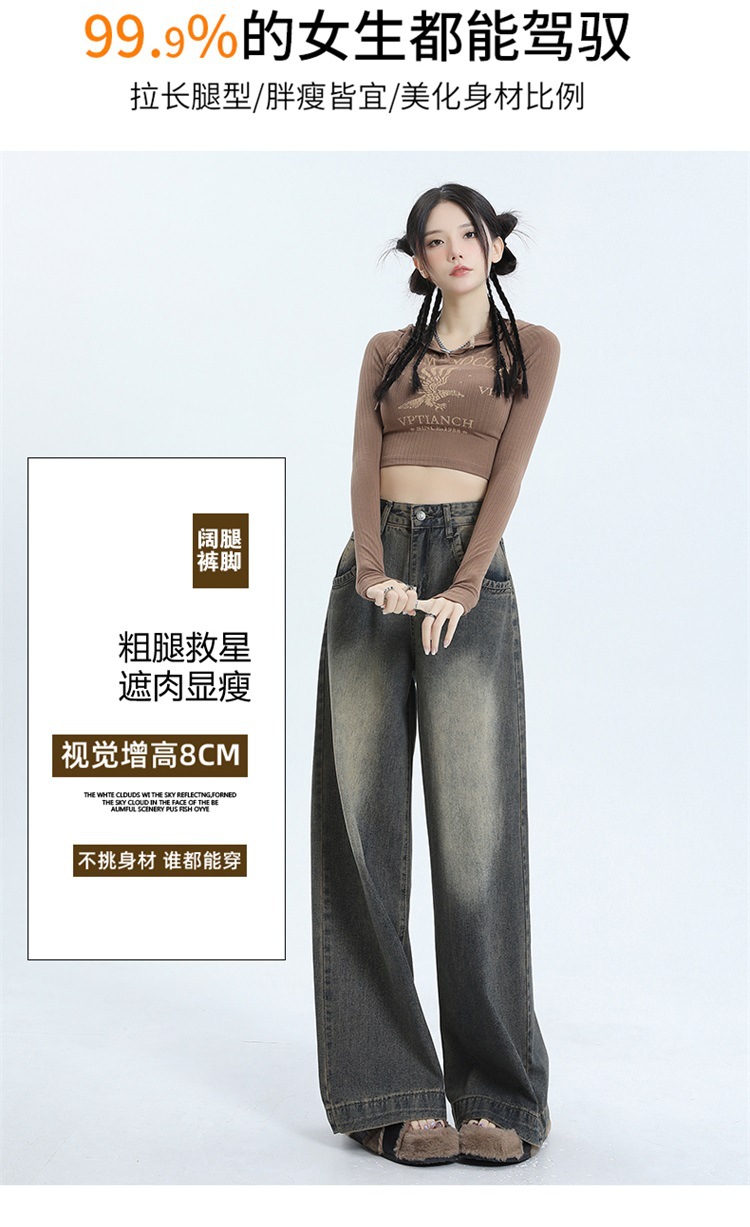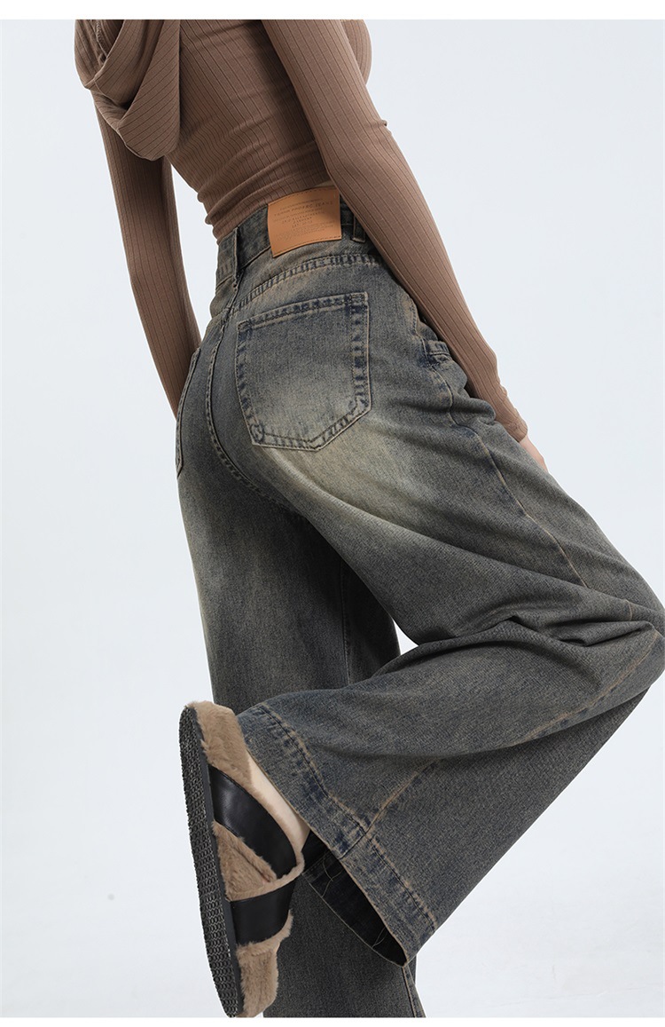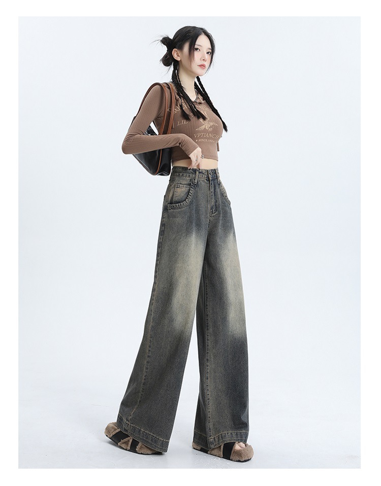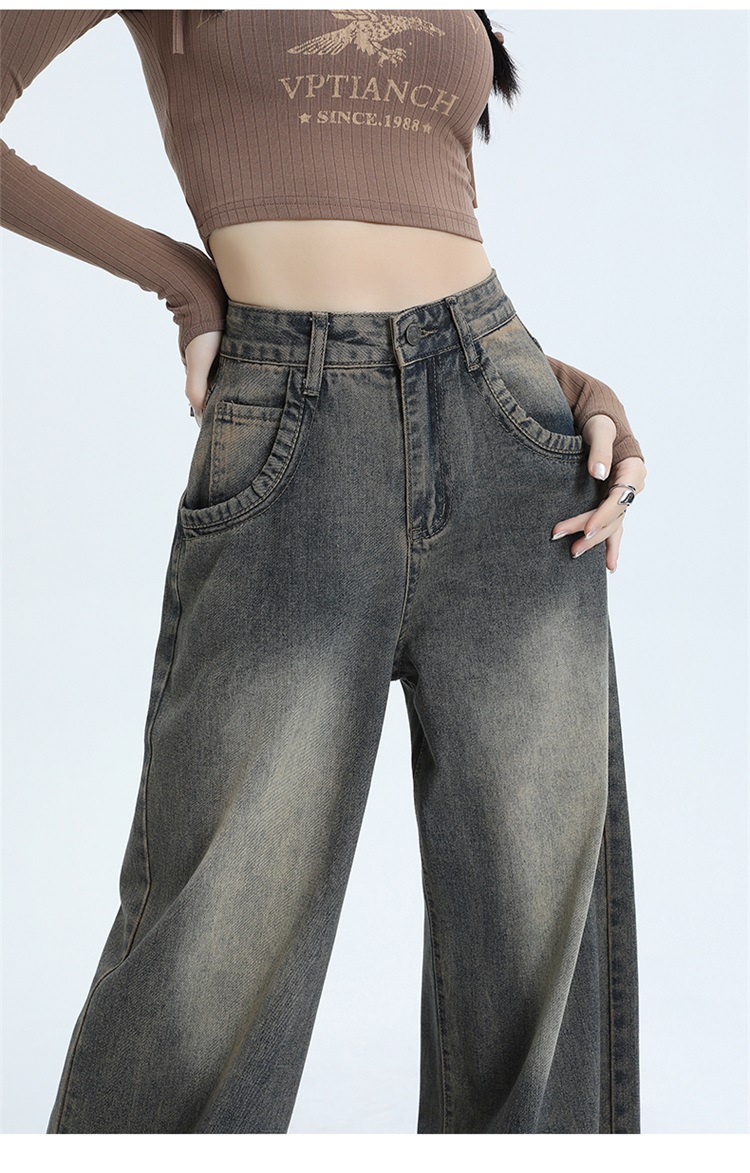 빈티지 옷을 입은 넓은 다리 청바지 여성의 봄과 가을 새로운 스트레이트 루즈 슬림 핏 봄 여성용 바지스토어 가기