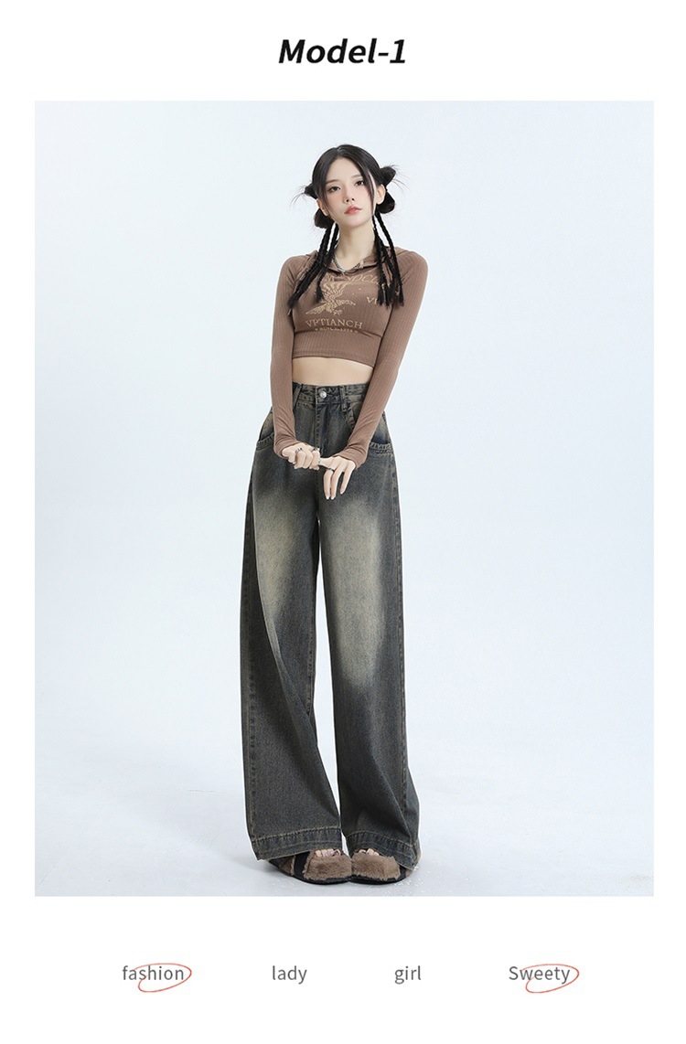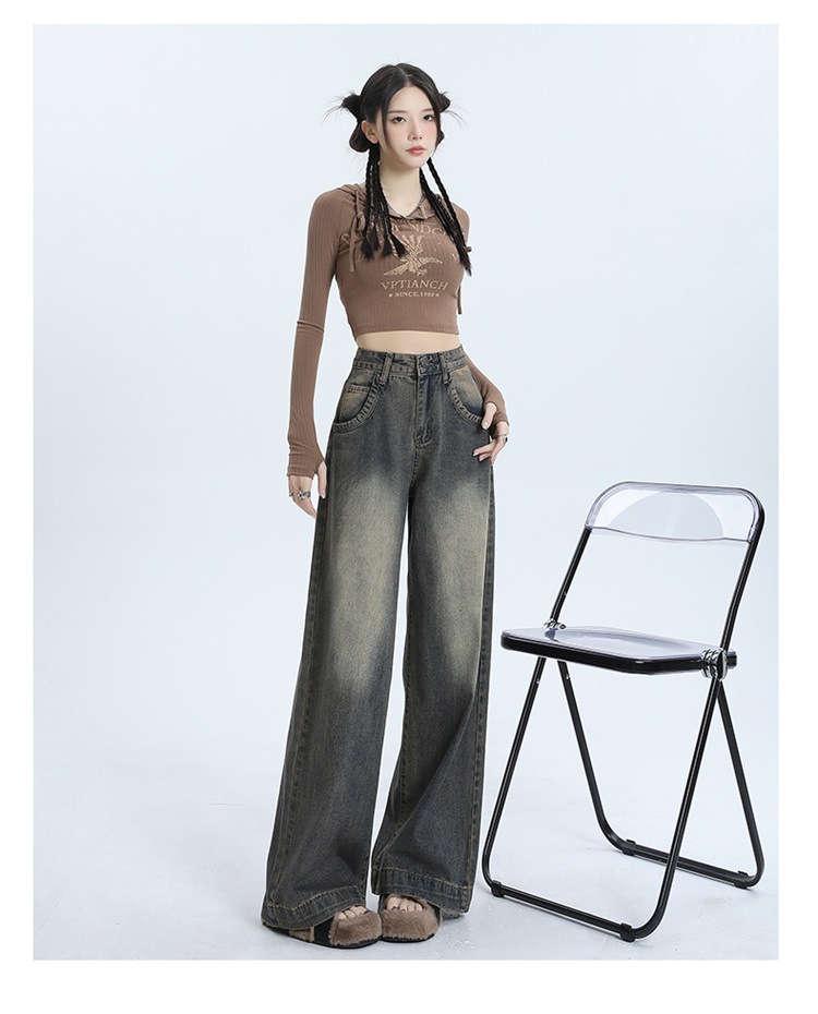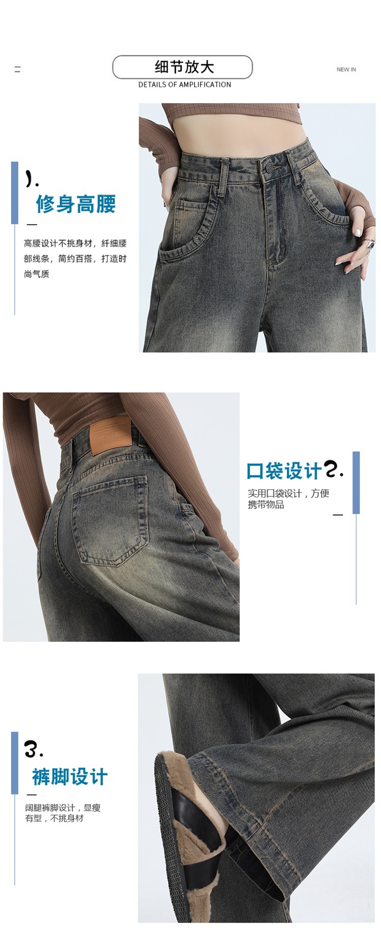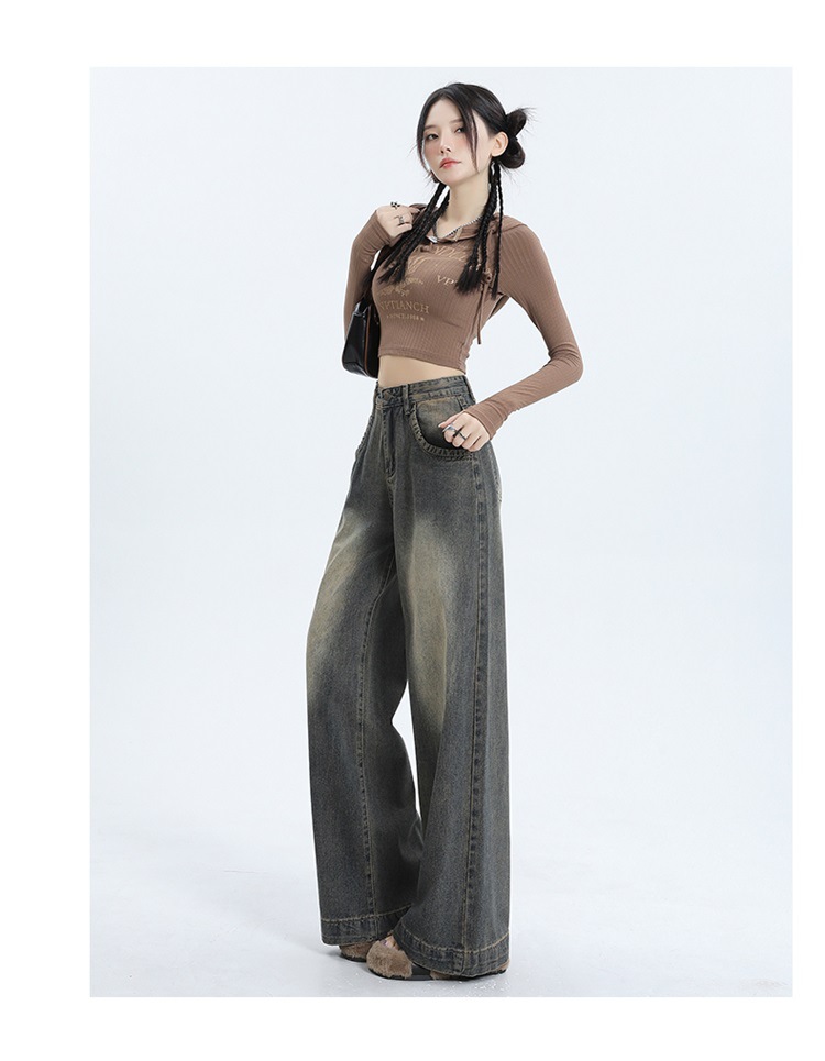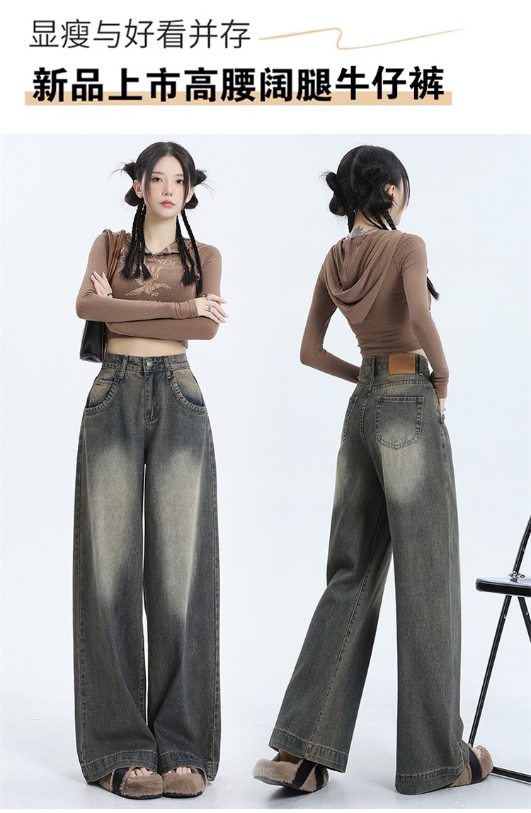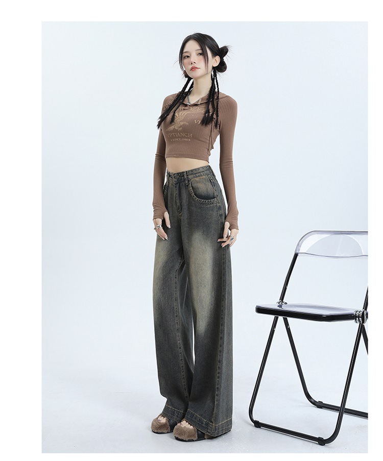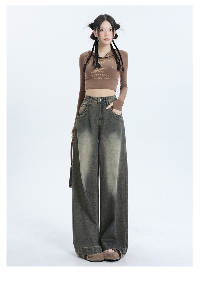 빈티지 옷을 입은 넓은 다리 청바지 여성의 봄과 가을 새로운 스트레이트 루즈 슬림 핏 봄 여성용 바지스토어 가기