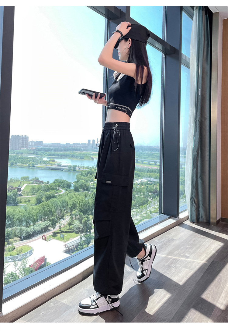 2025년 여름 여성을 위한 카키색 아메리칸 작업복 새로운 스타일의 작은 하이웨이스트 슬리밍 하이킹 스포츠 와이드 팬츠스토어 가기