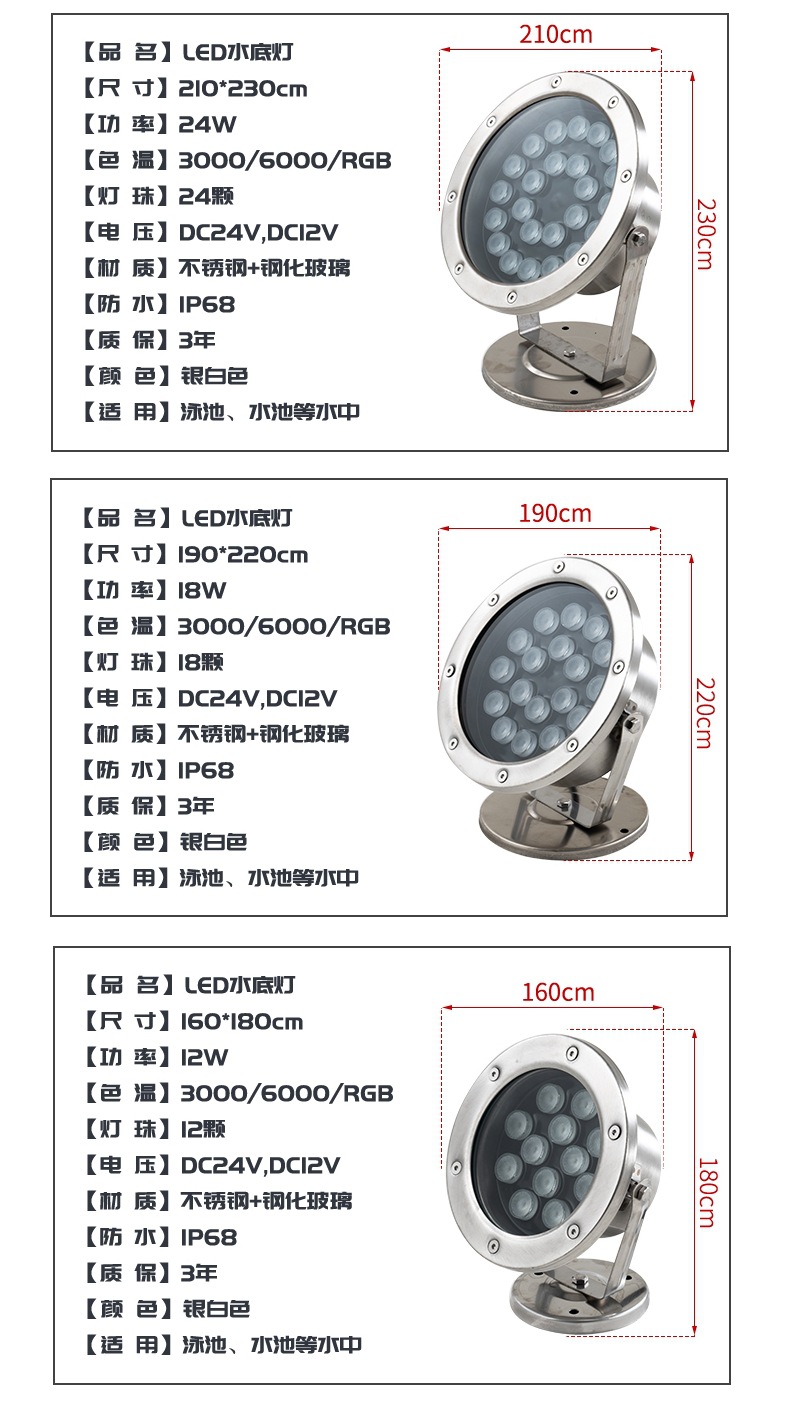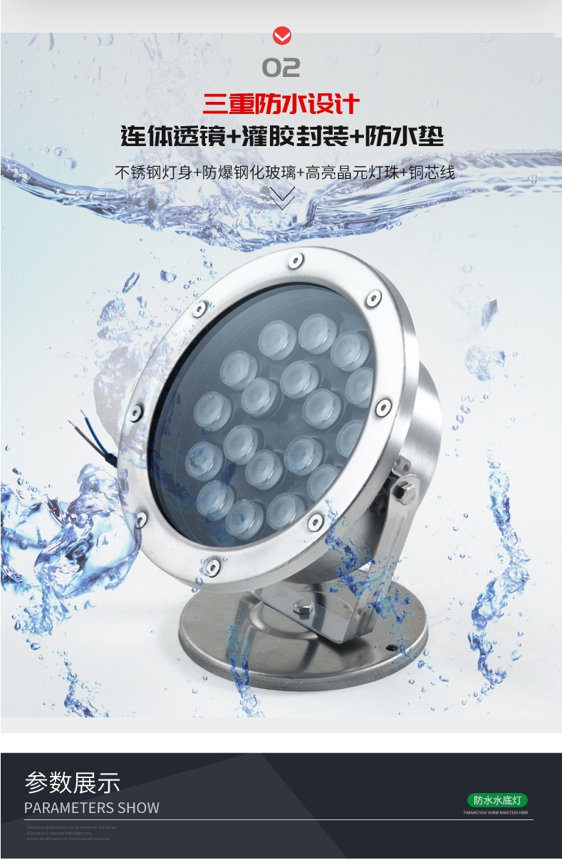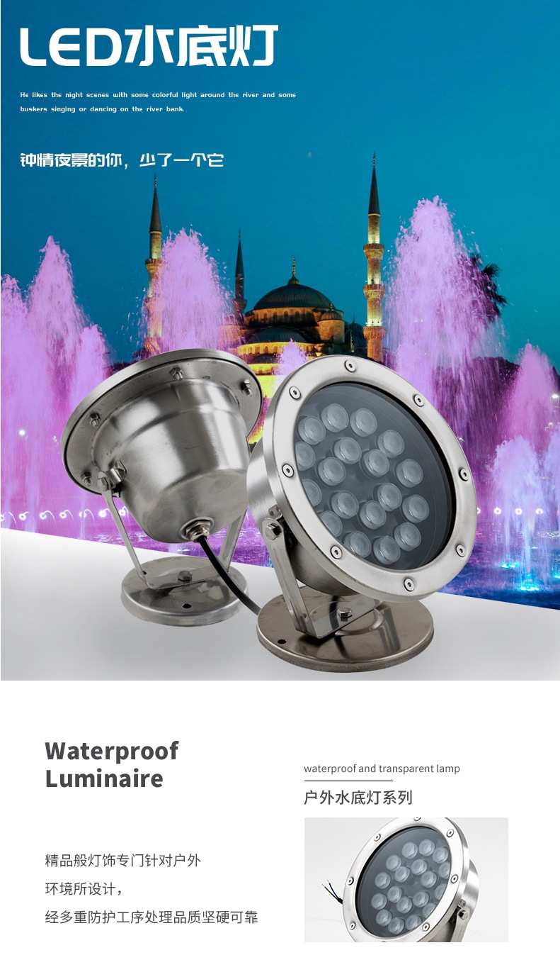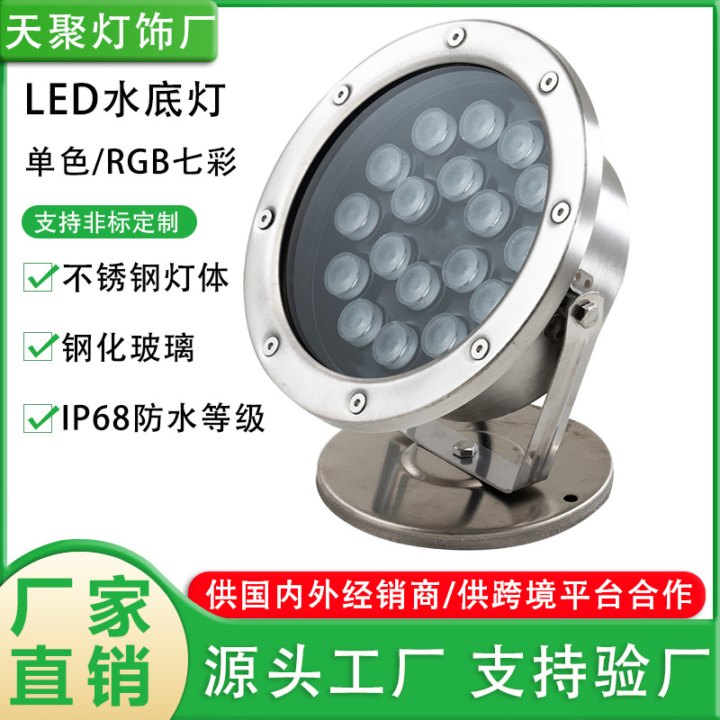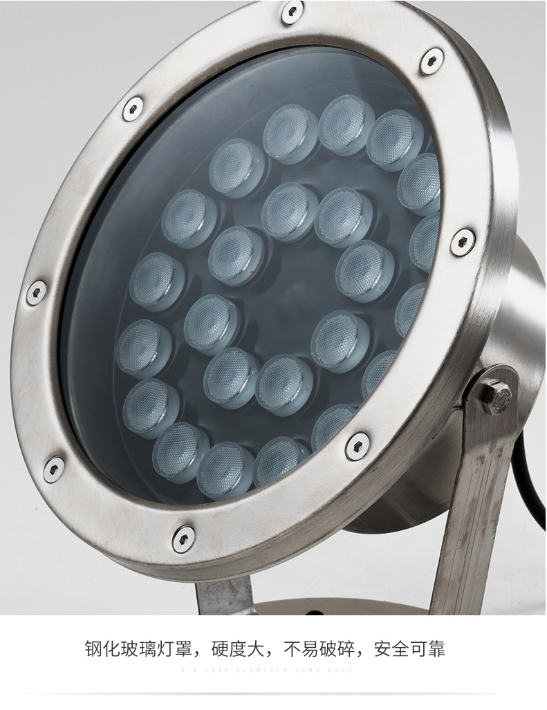 LED 수중 램프 방수 물고기 연못 램프 다채로운 수중 램프 스테인레스 스틸 수영장 램프 3-36w 다이빙 램프 12v24v스토어 가기