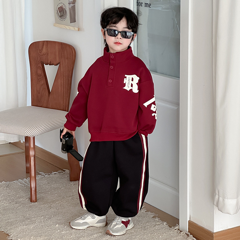 소년 운동복 정장 봄, 가을 2025 새로운 어린이 스포츠 투피스 세트 소년 봄 옷 유행 스타일스토어 가기