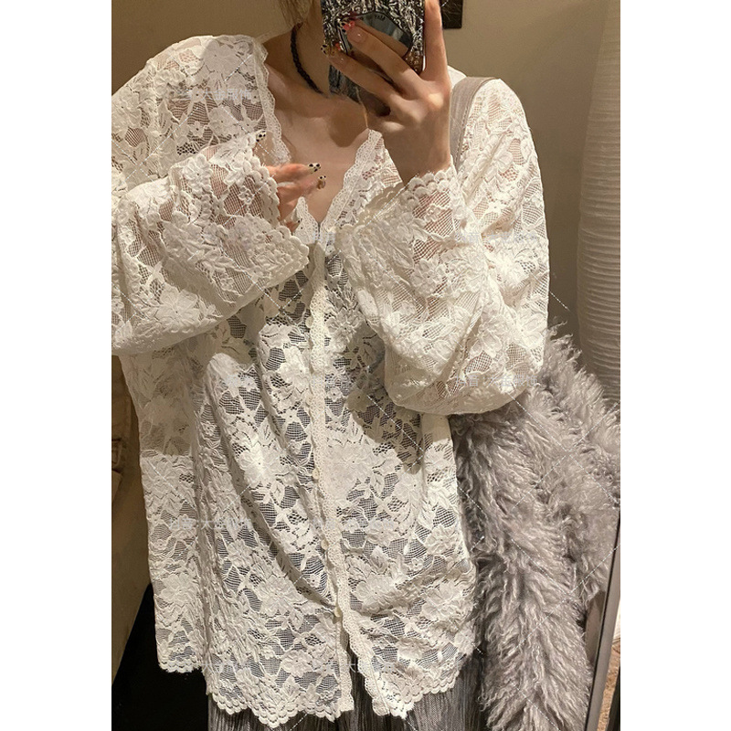 프랑스 스타일 할로우 아웃 레이스베이스 셔츠 여성용 가을 하이 엔드 슬리밍 스택 긴팔 셔츠 달콤하고 매운 탑스토어 가기